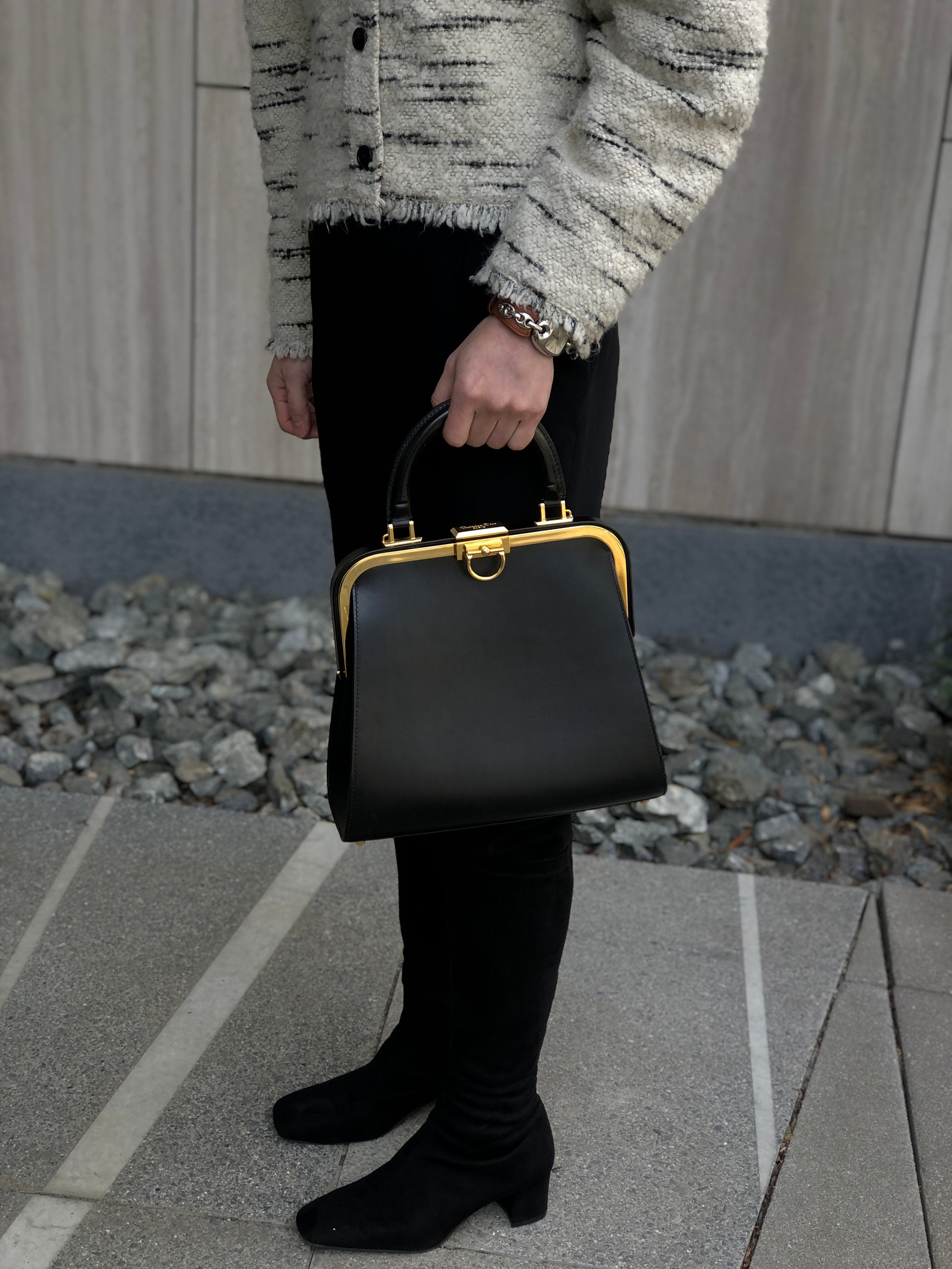 Christian Dior Metal Clasp Handbag Black Vintage istwjt