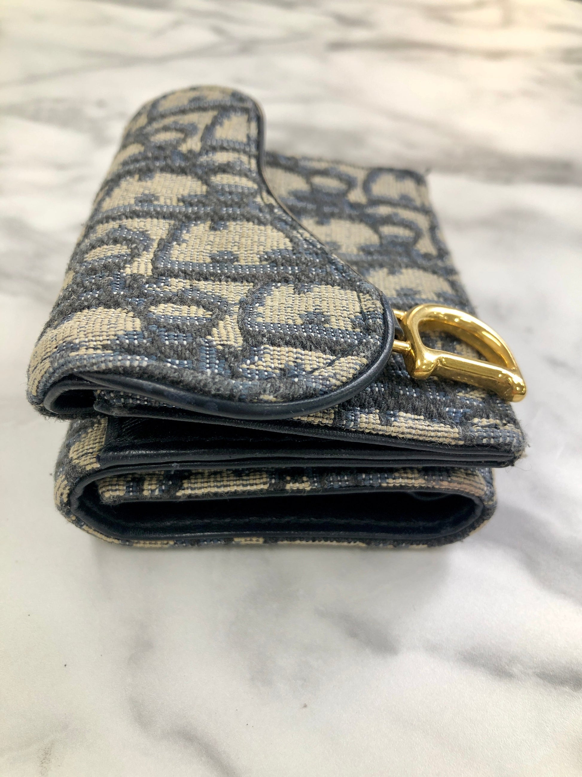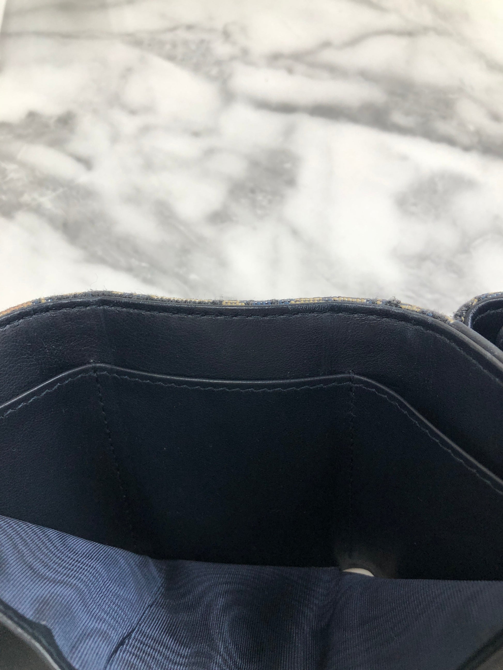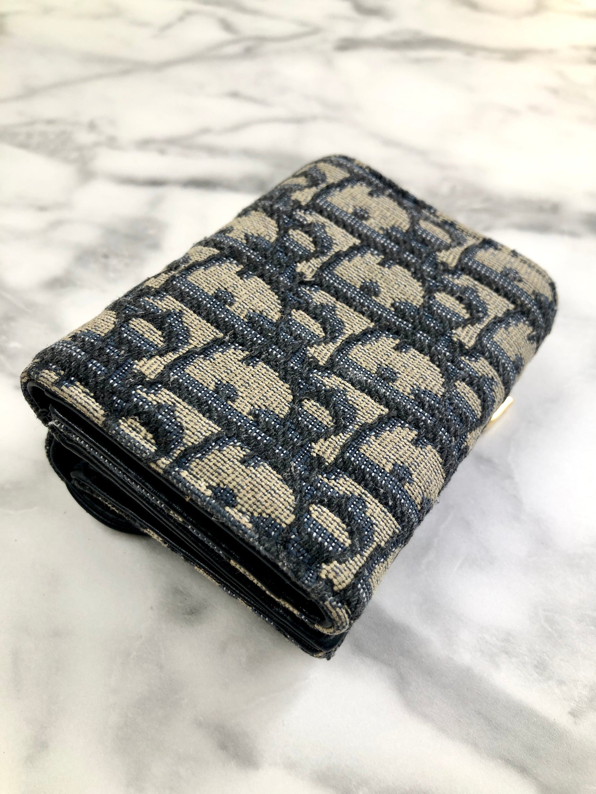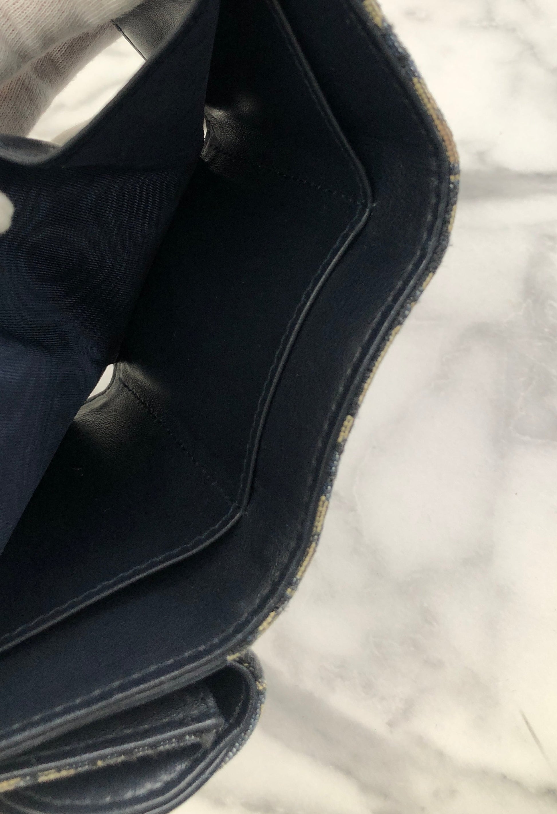 Christian Dior Oblique Jacquard Leather Trifold Wallet Navy Vintage ybv7tj
