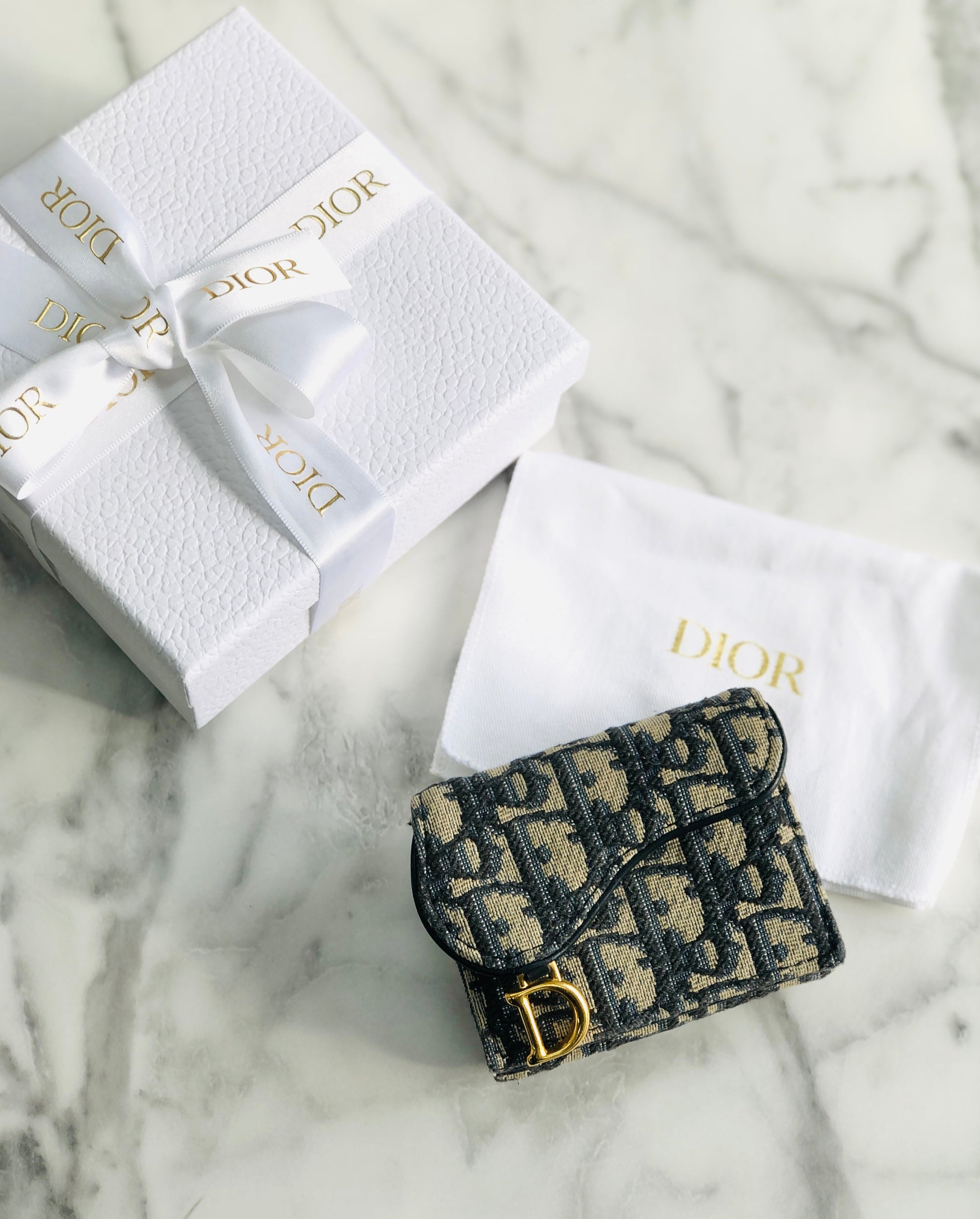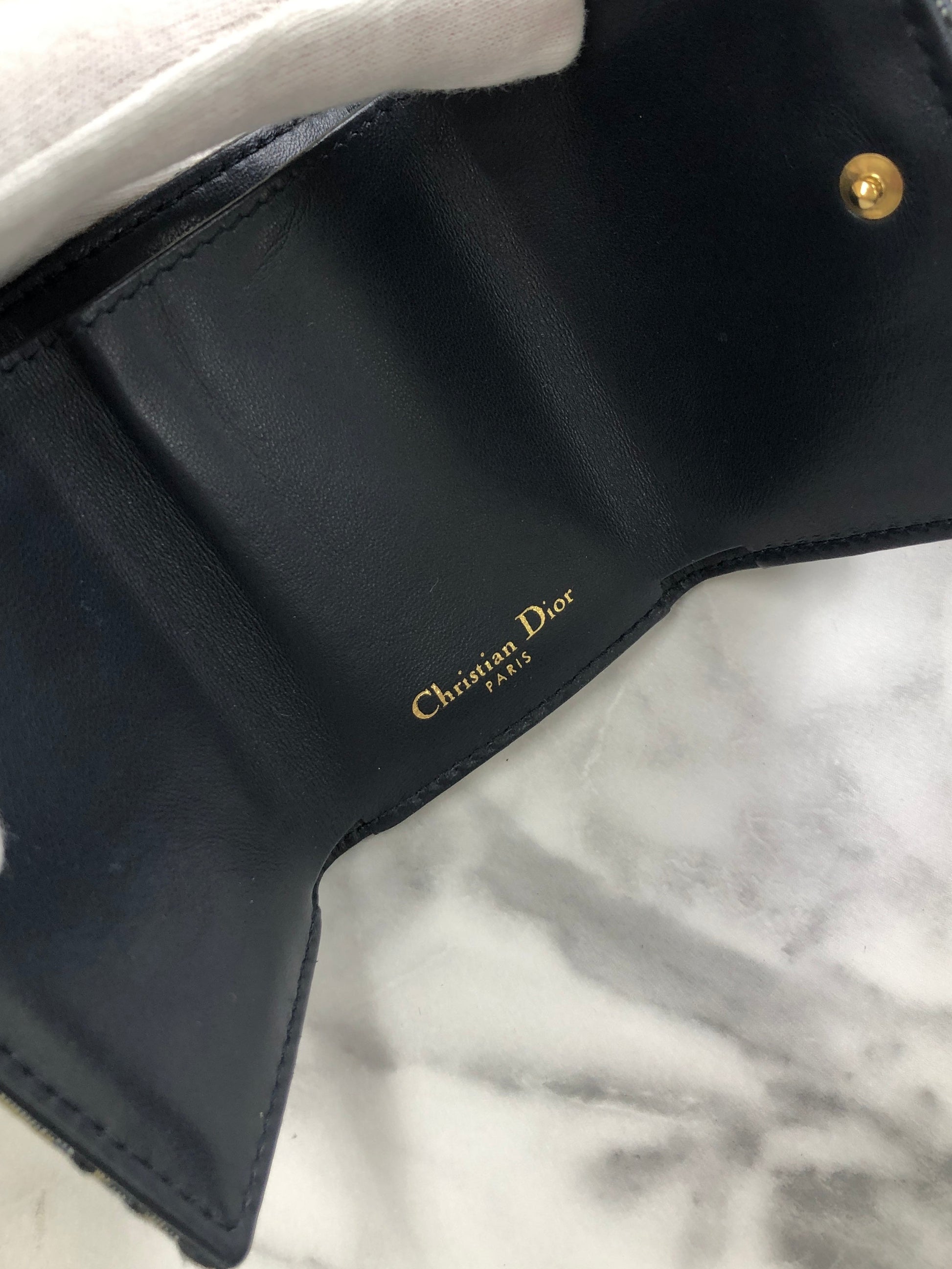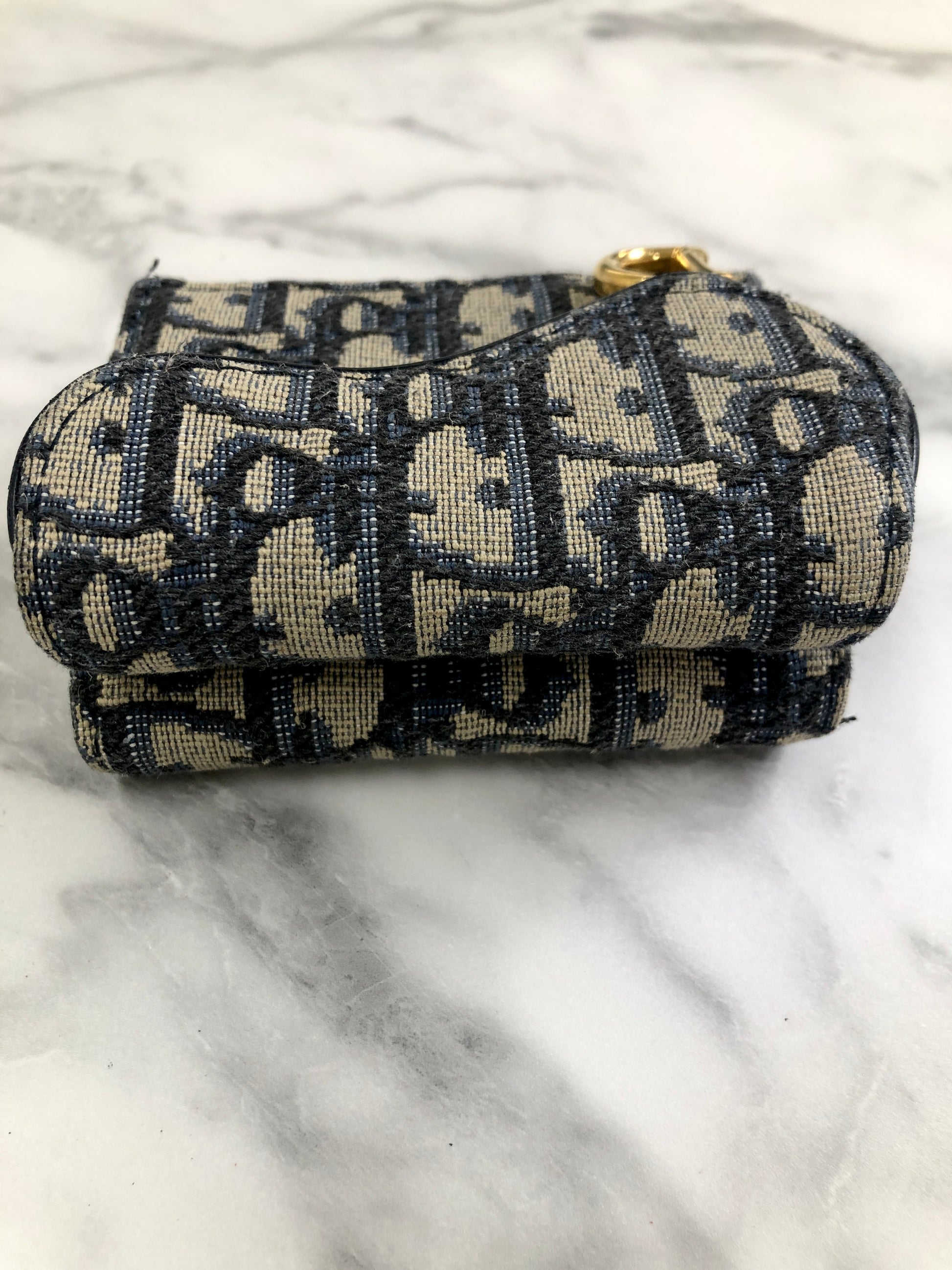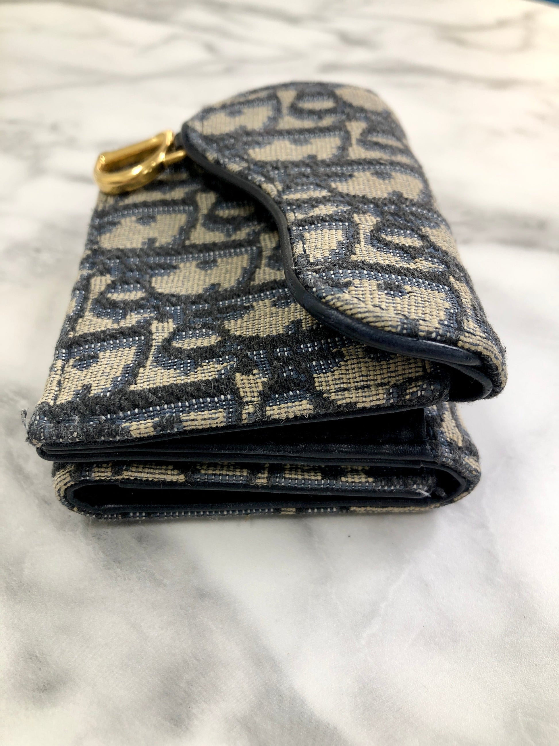 Christian Dior Oblique Jacquard Leather Trifold Wallet Navy Vintage ybv7tj