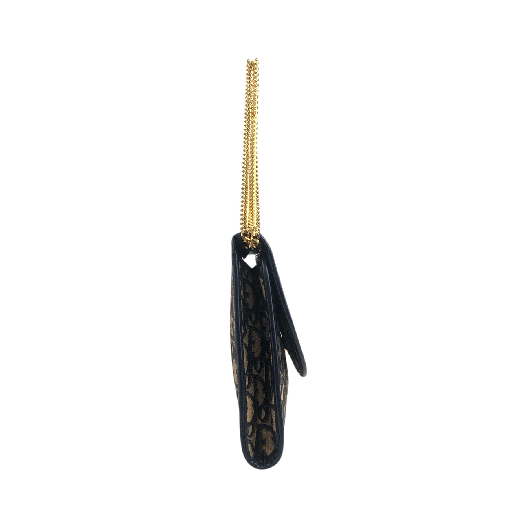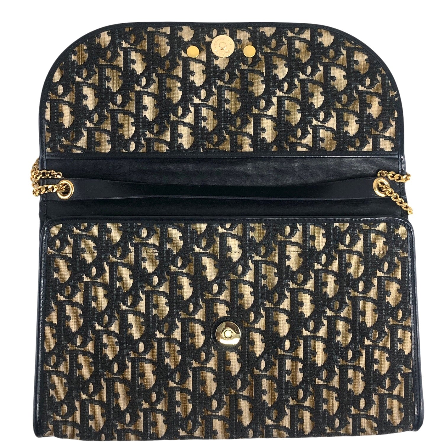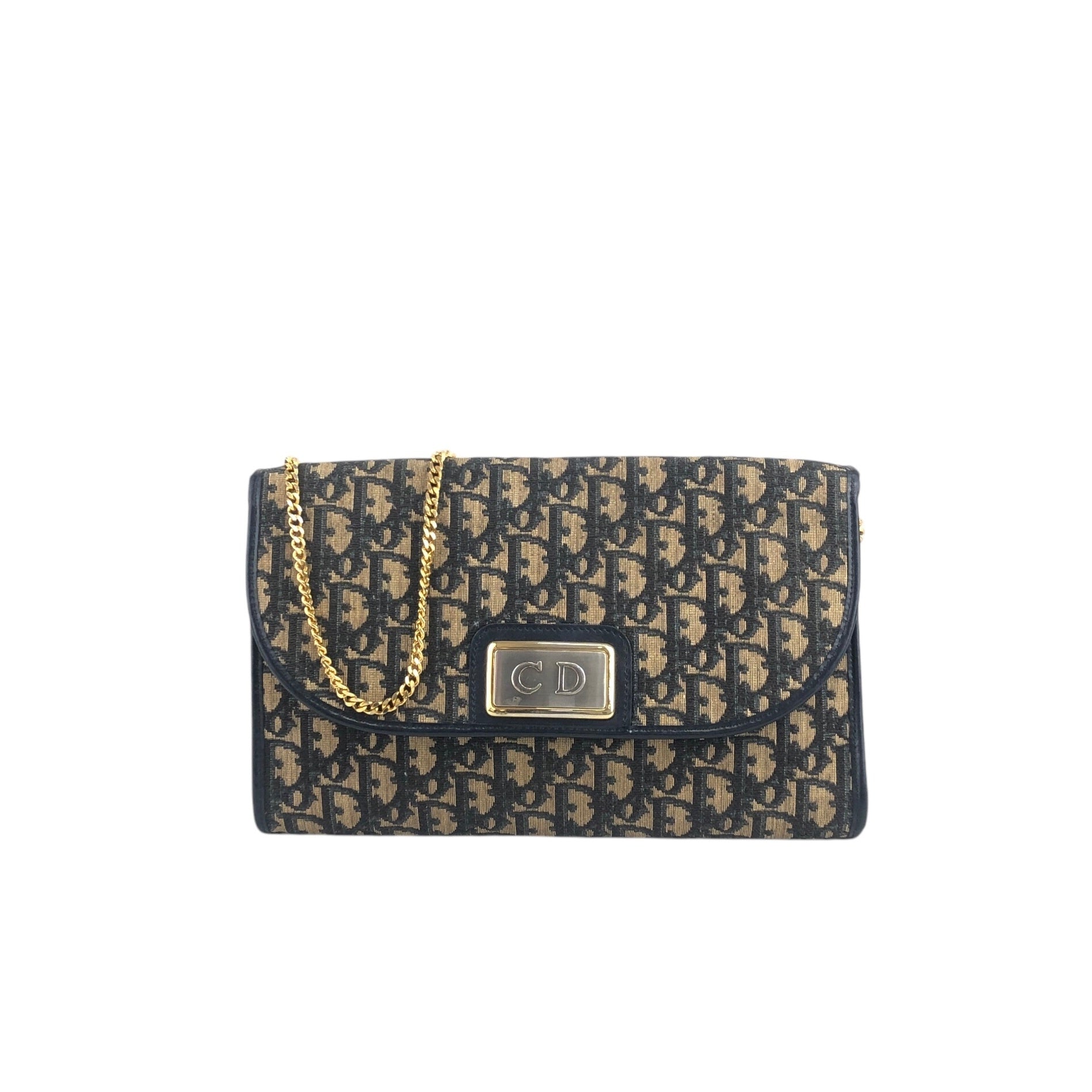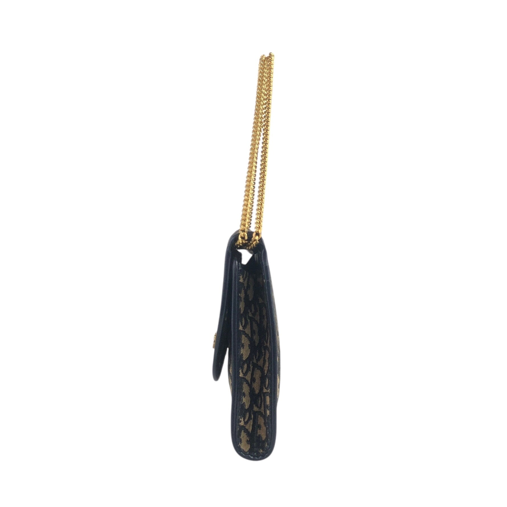 Christian Dior Trotter CD Logo Chain Shoulder bag Navy Vintage bmy3ab