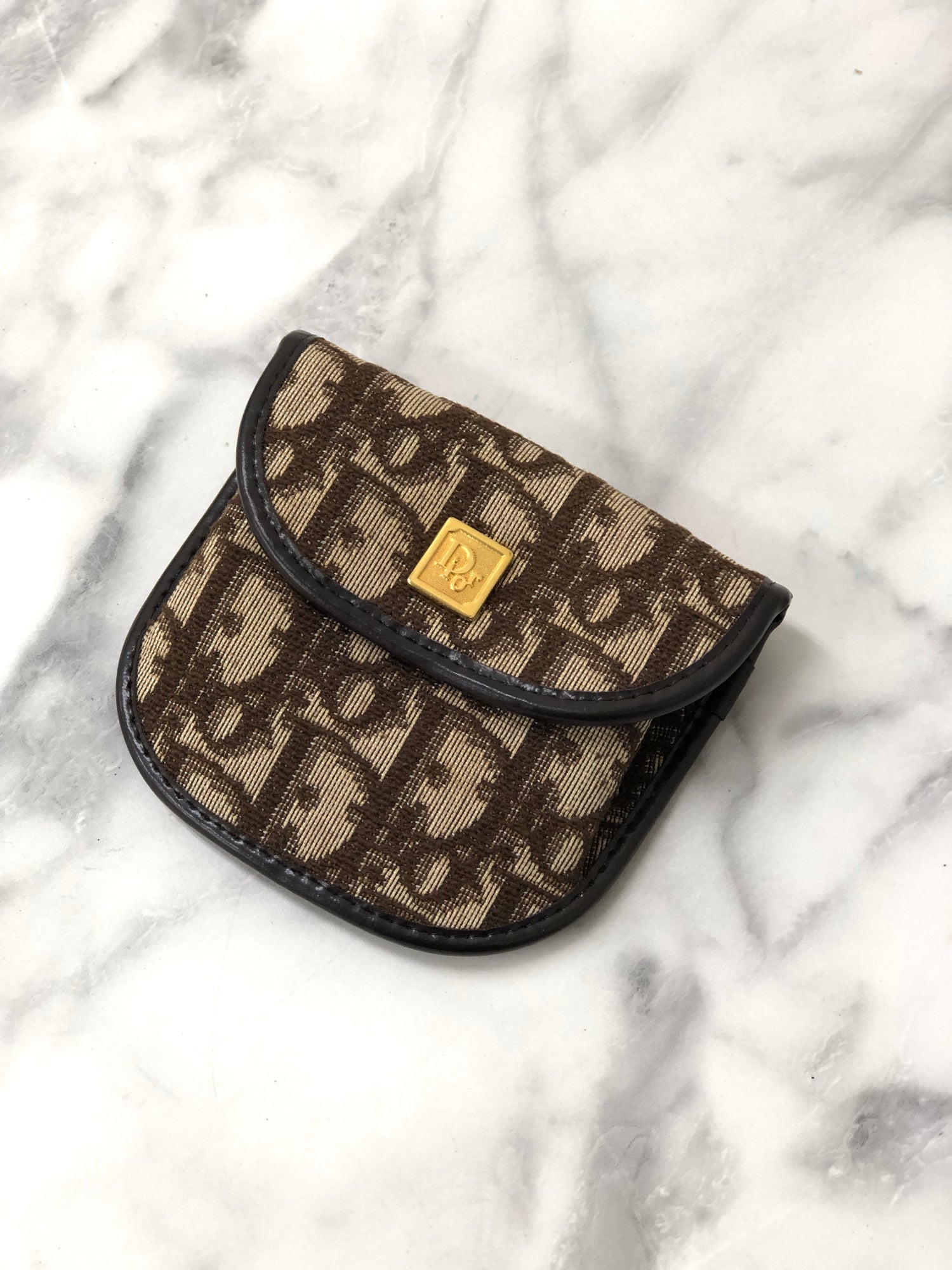 Christian Dior Trotter CD Logo Jacquard Leather Coin Purse Brown Vintage e3hgif