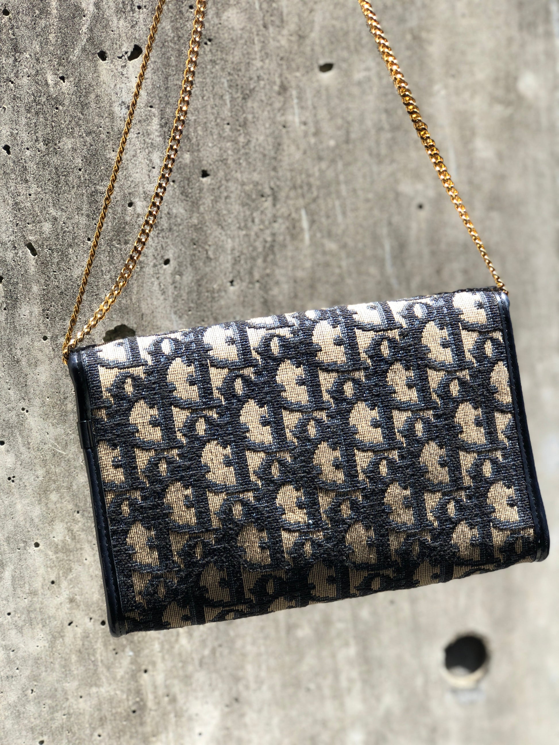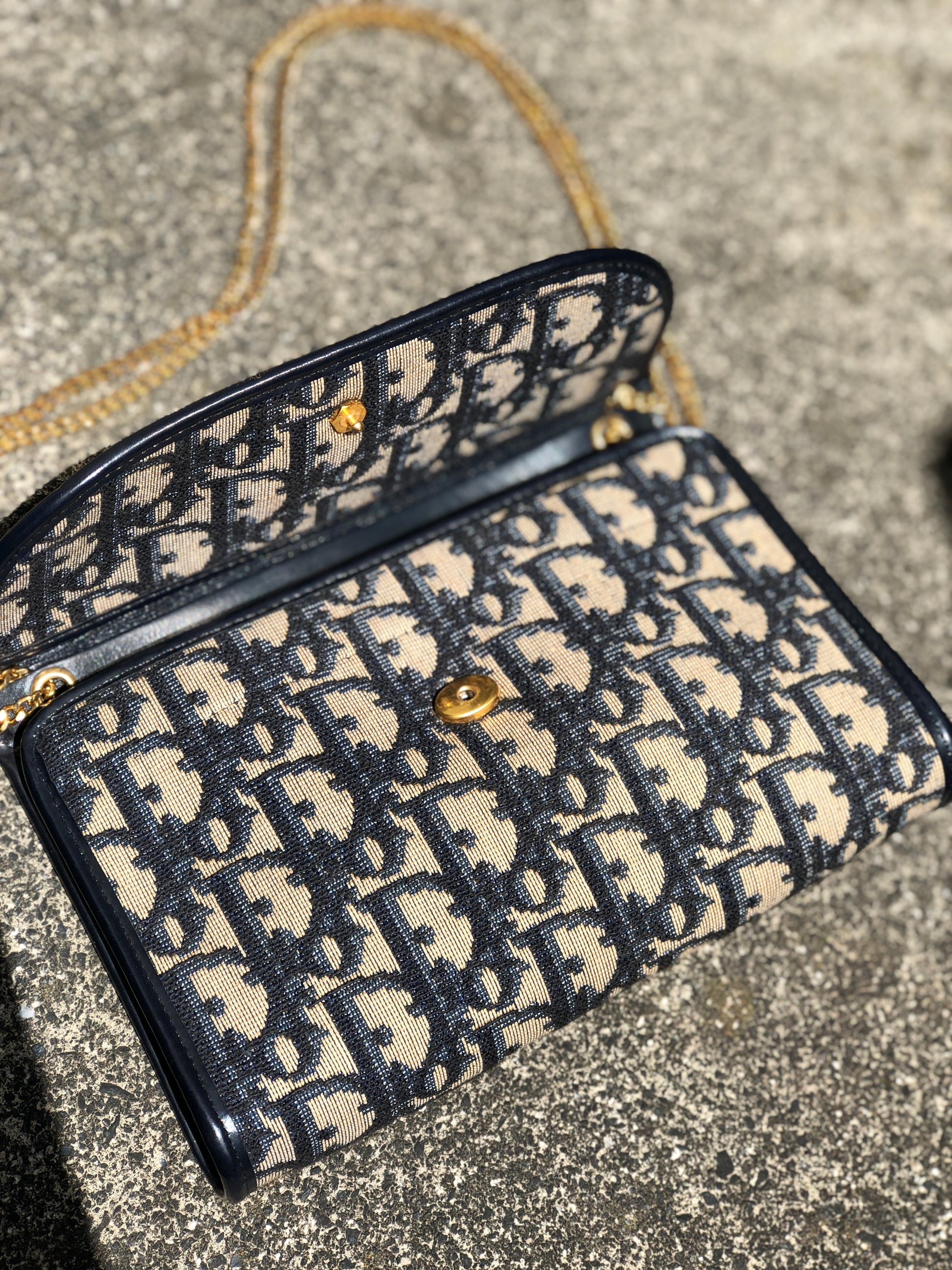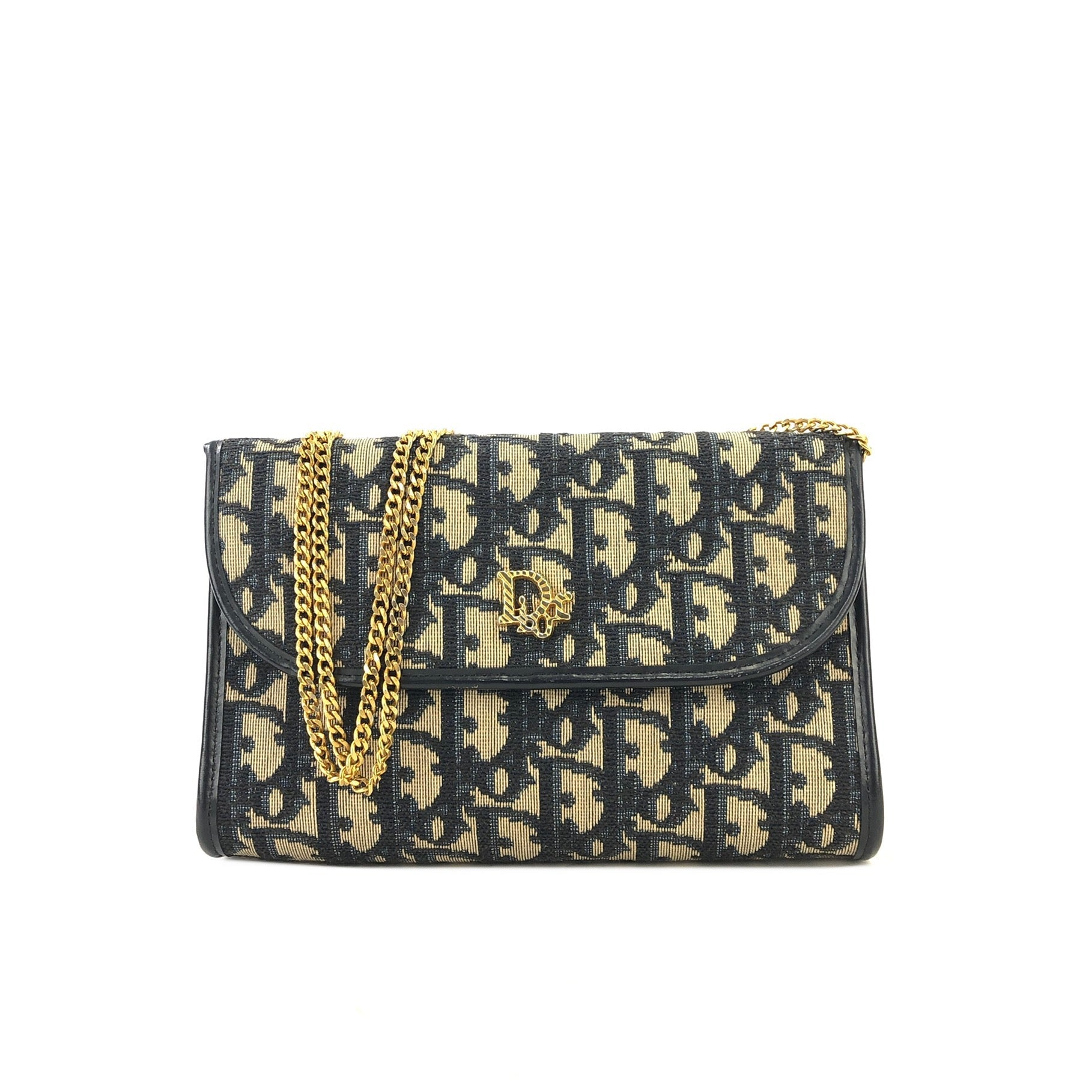Christian Dior Trotter Jacquard Chain Mini Shoulder bag Navy Vintage Old 4w7zyh