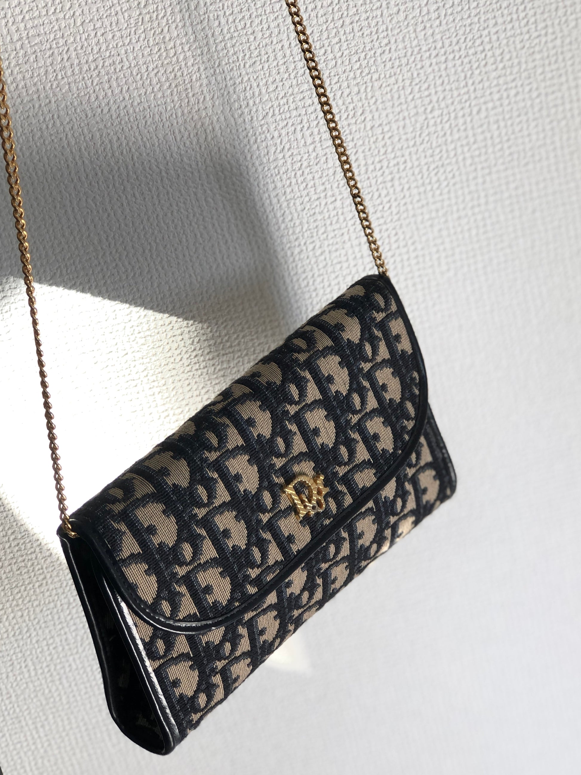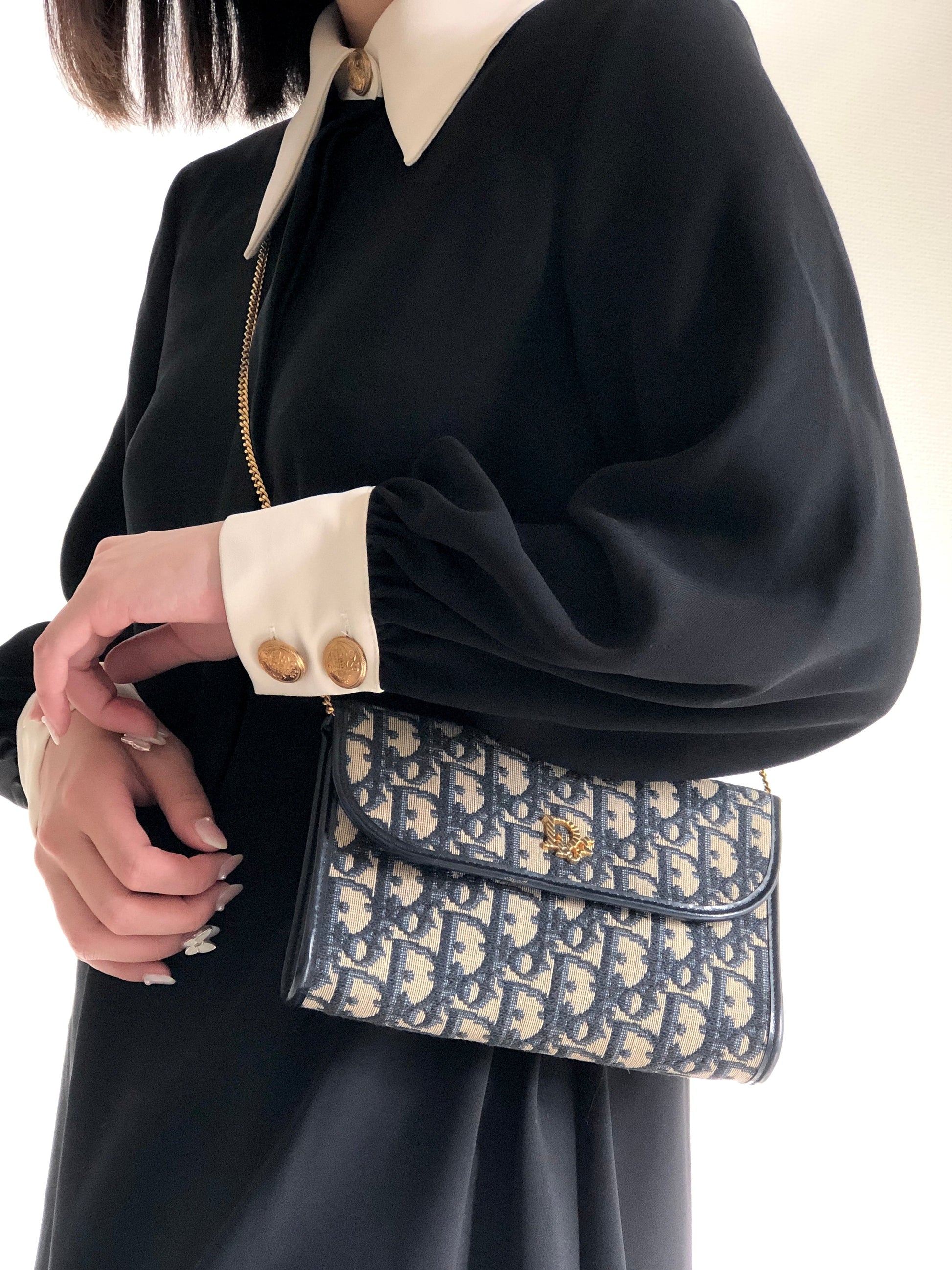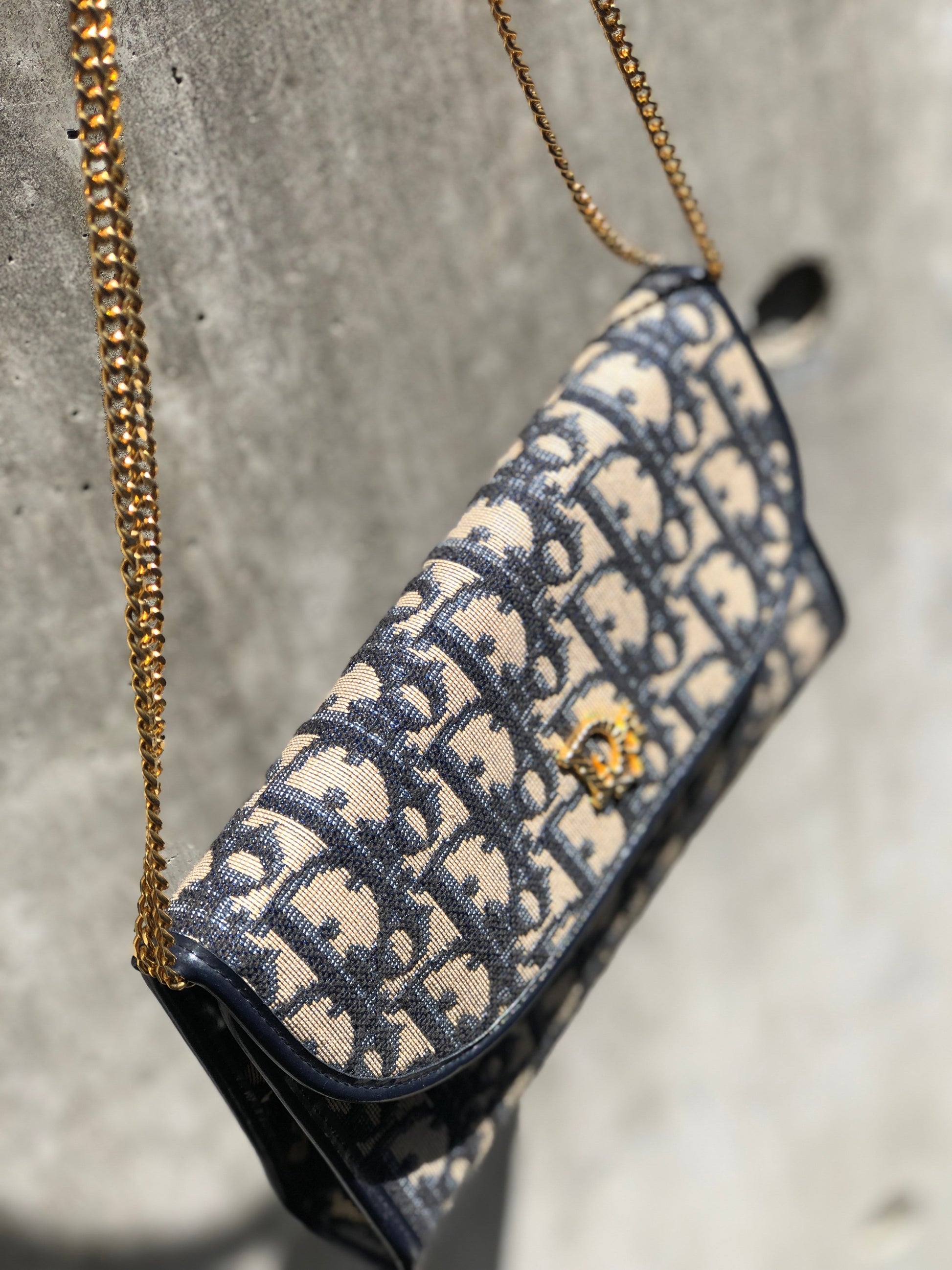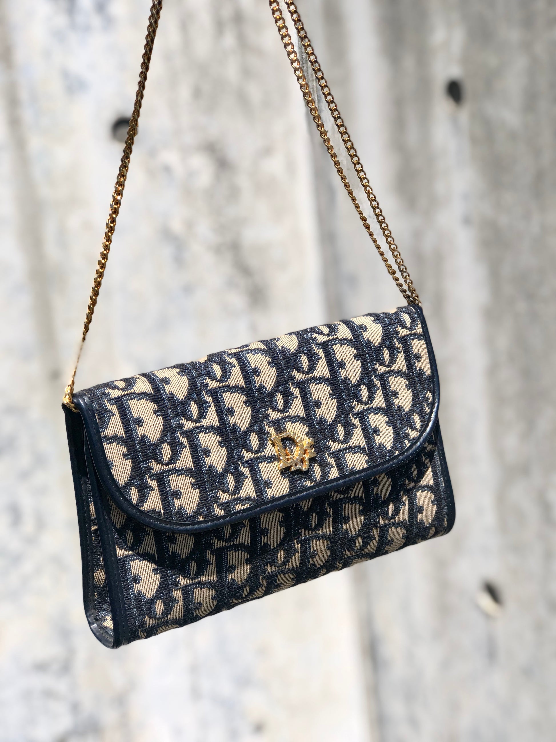 Christian Dior Trotter Jacquard Chain Mini Shoulder bag Navy Vintage Old 4w7zyh