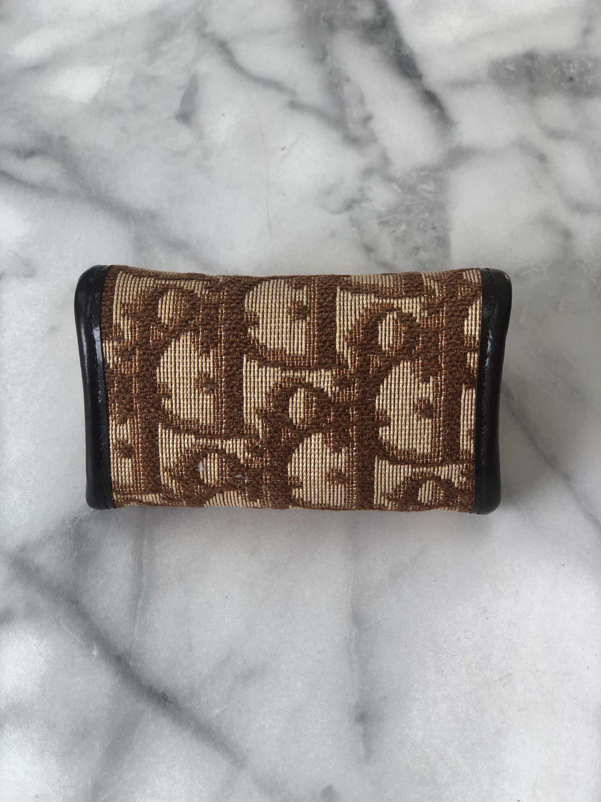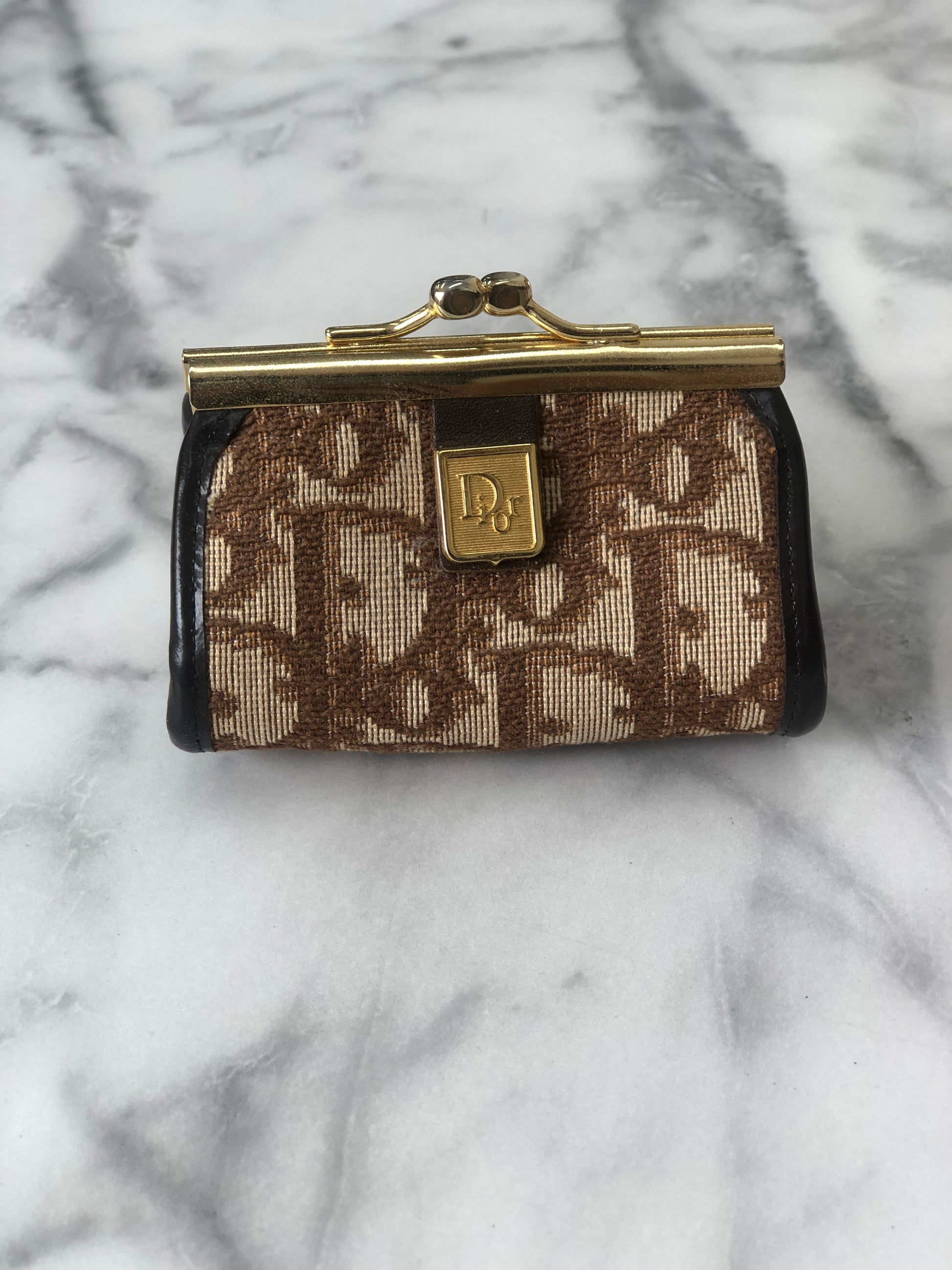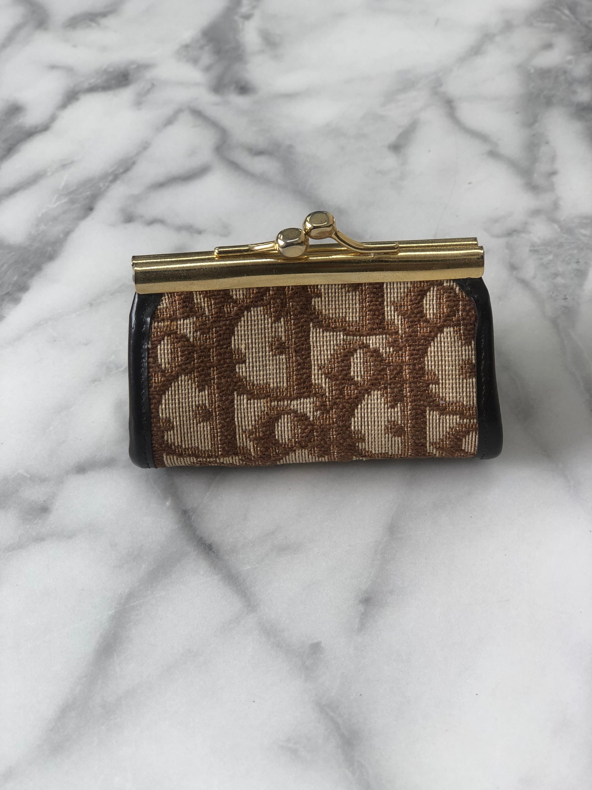 Christian Dior Trotter Jacquard Leather Metal Clasp Coin Purse Brown Vintage mcrrev