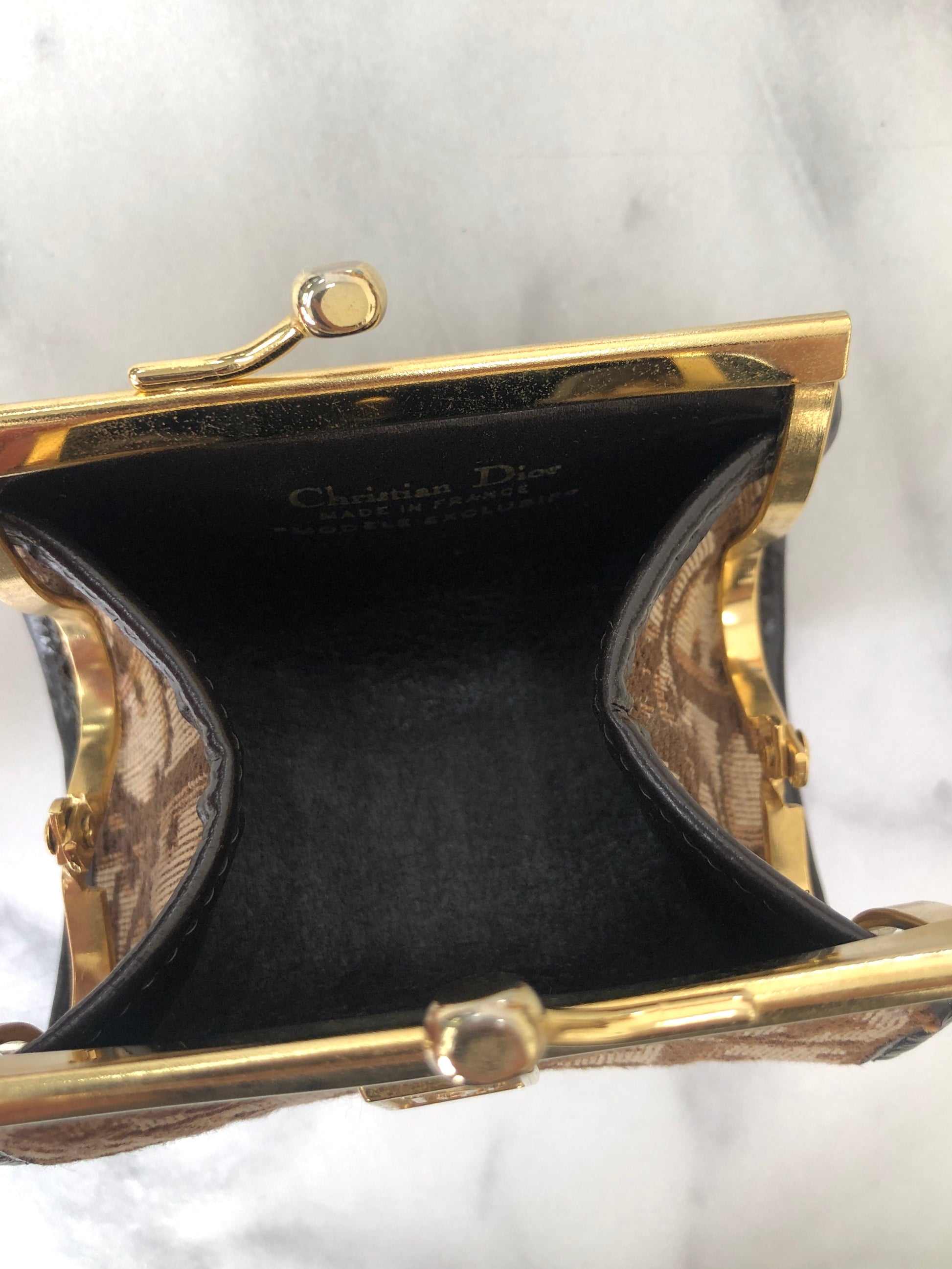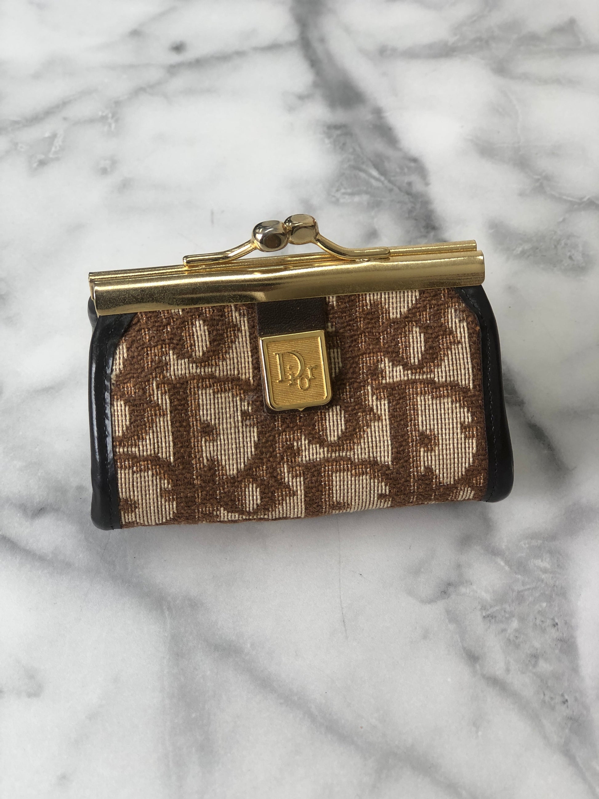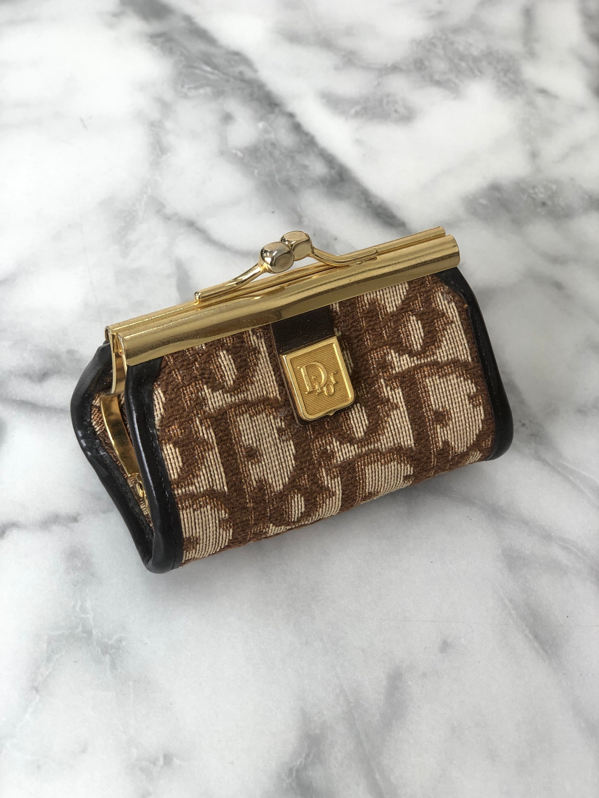 Christian Dior Trotter Jacquard Leather Metal Clasp Coin Purse Brown Vintage mcrrev