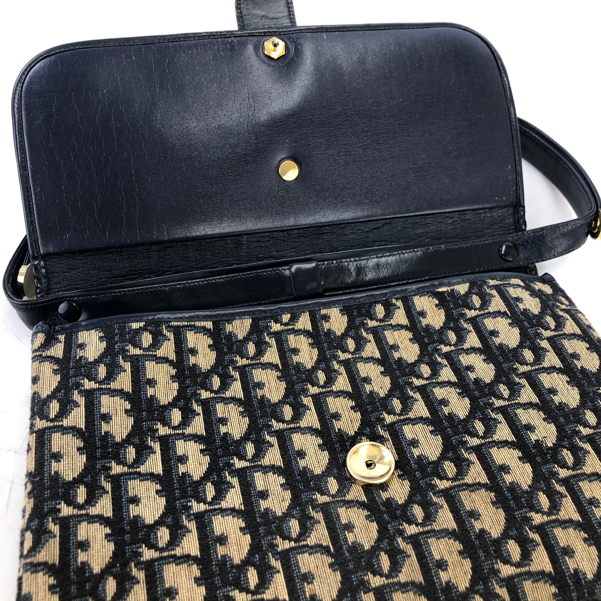 Christian Dior Trotter Leather×Jacquard Navy av4dz6
