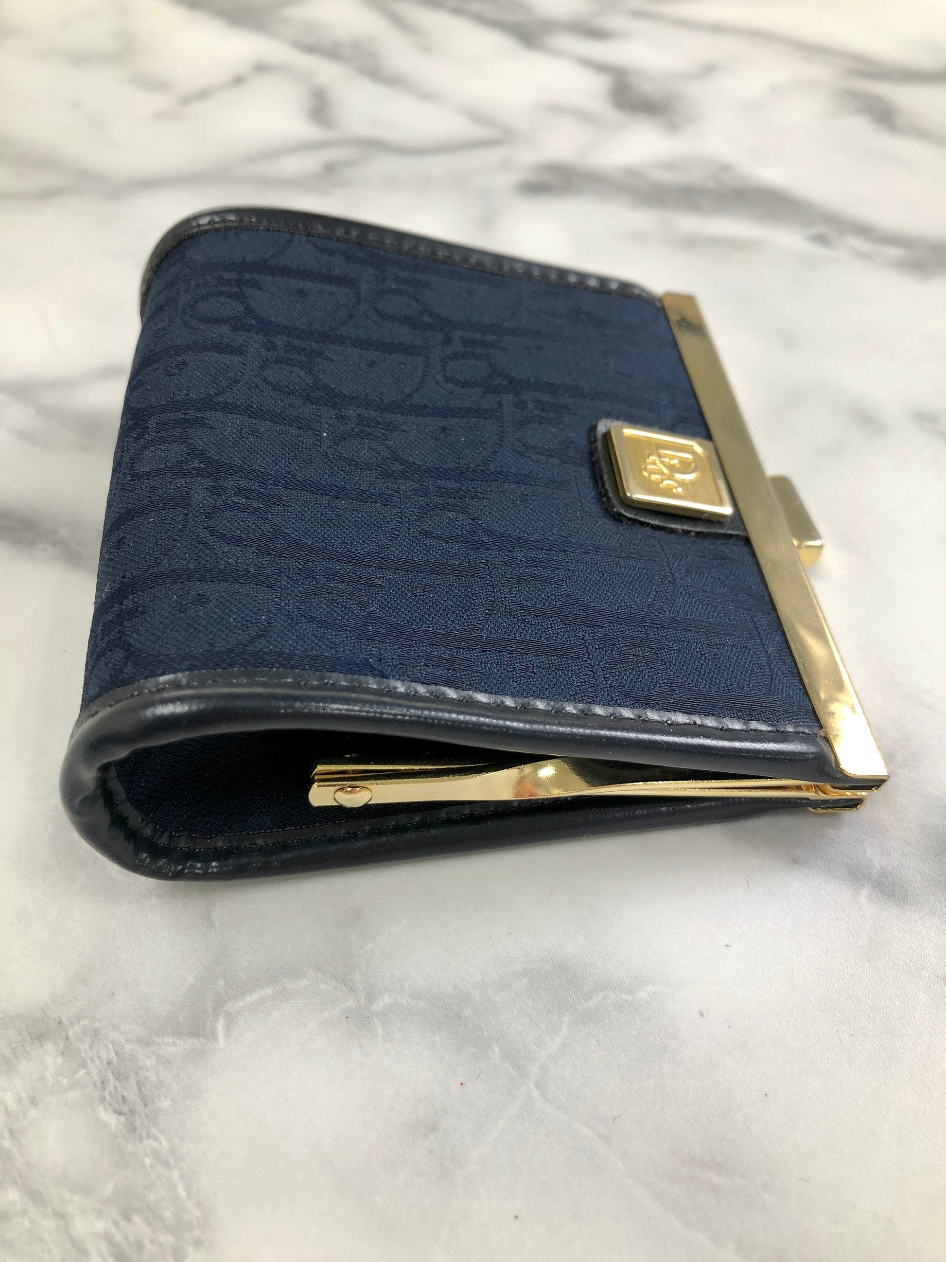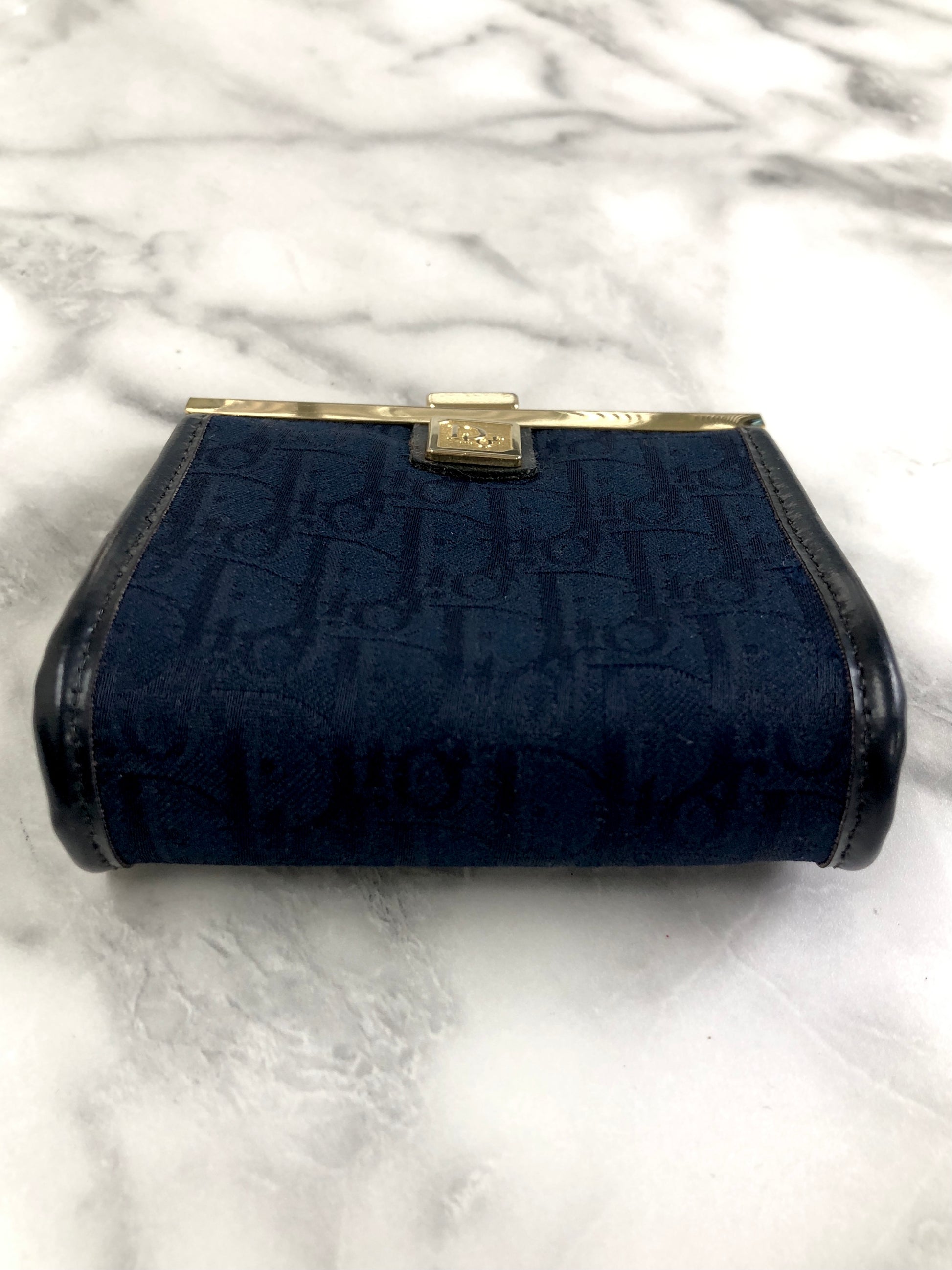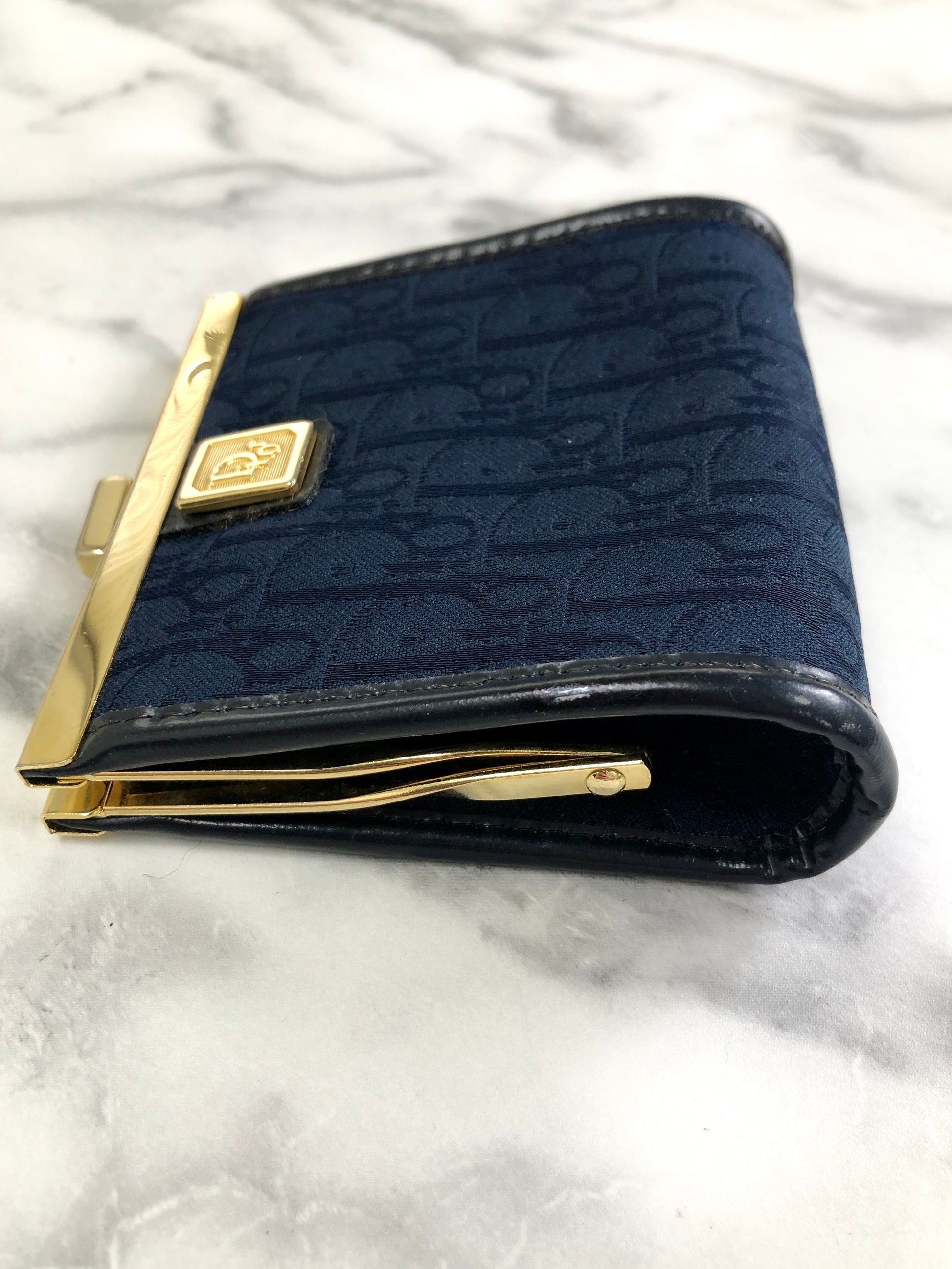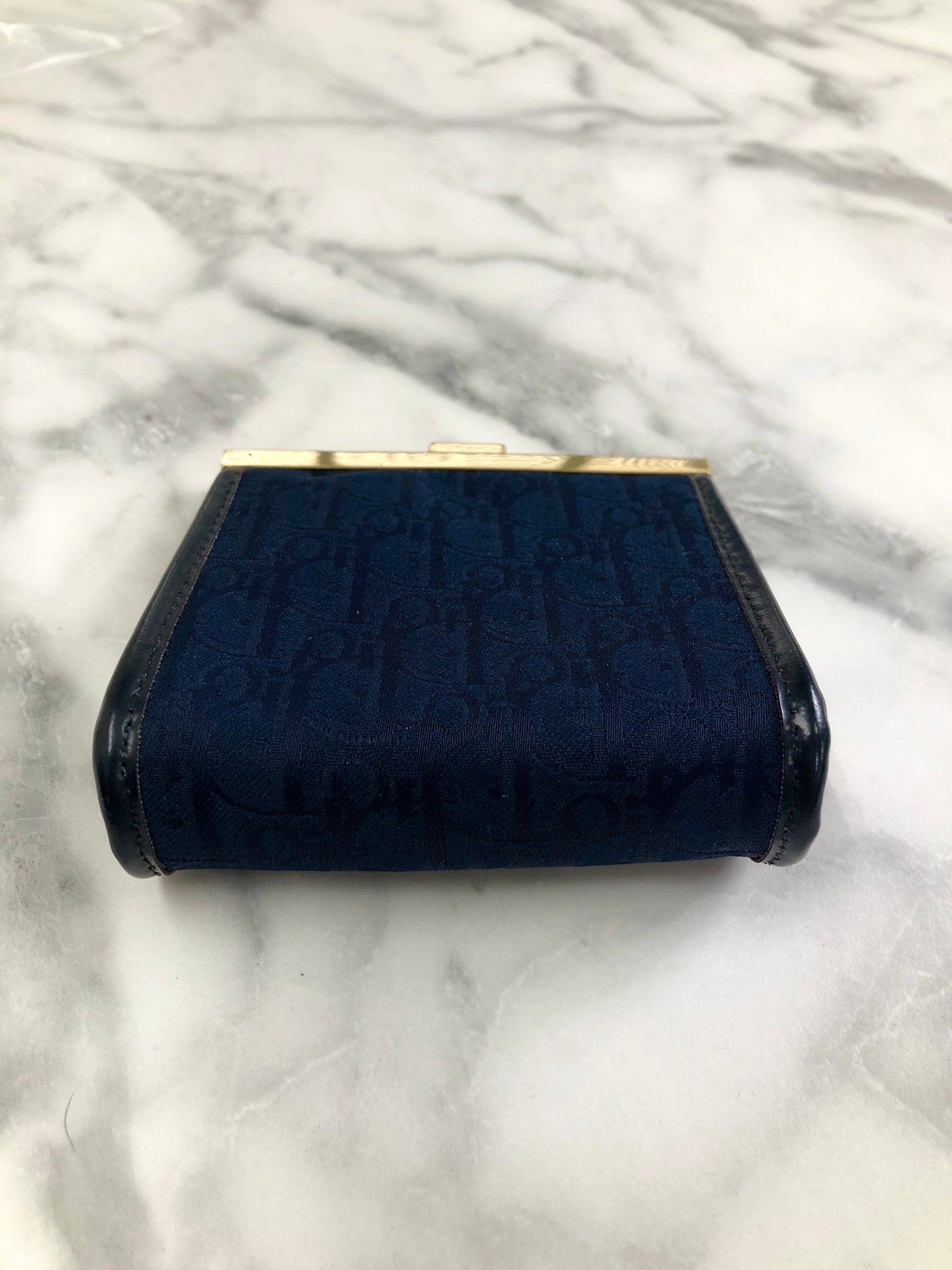 Christian Dior Trotter Logo Jacquard Leather Metal Clasp Coin Purse Navy Vintage pjbgby