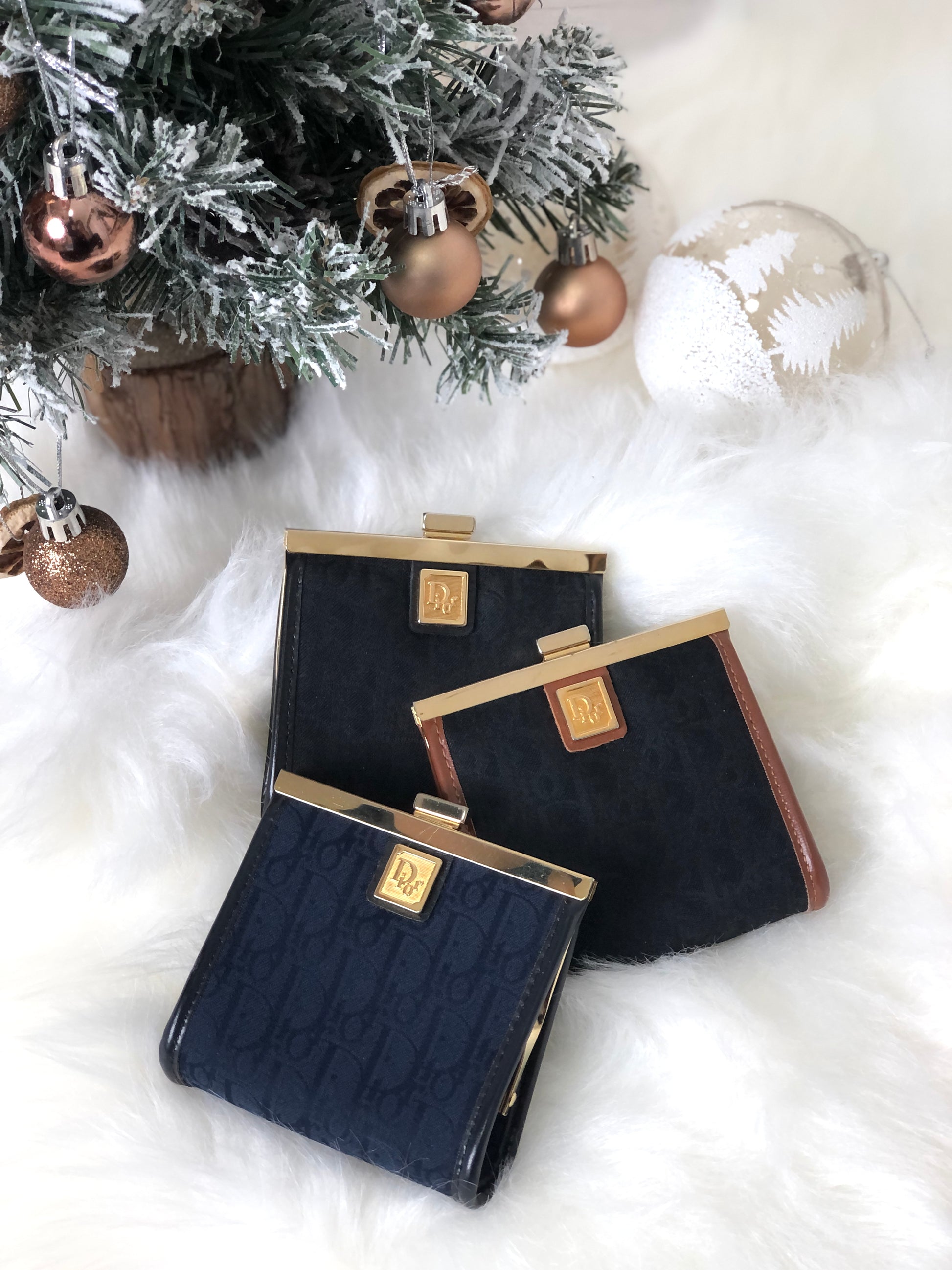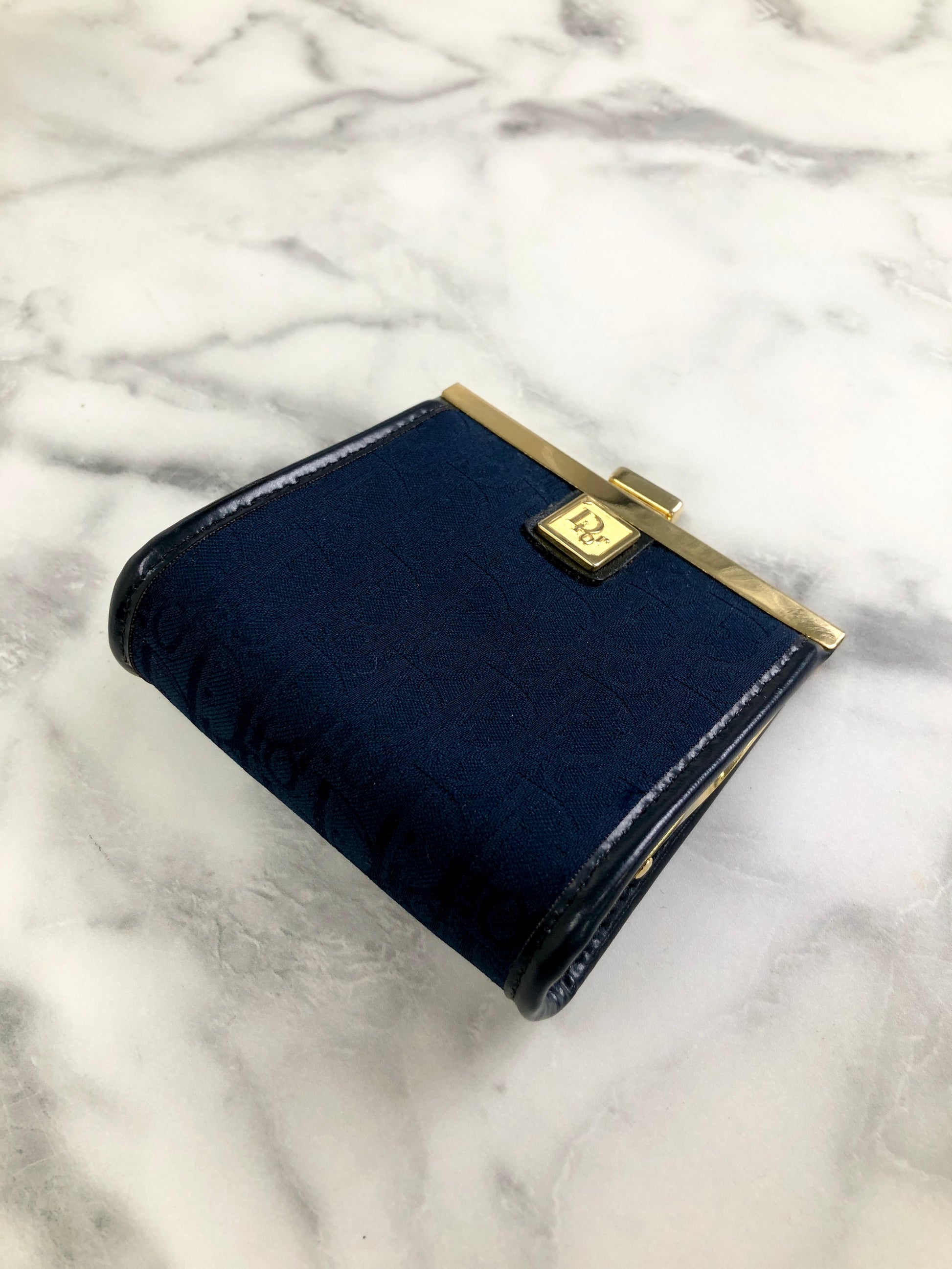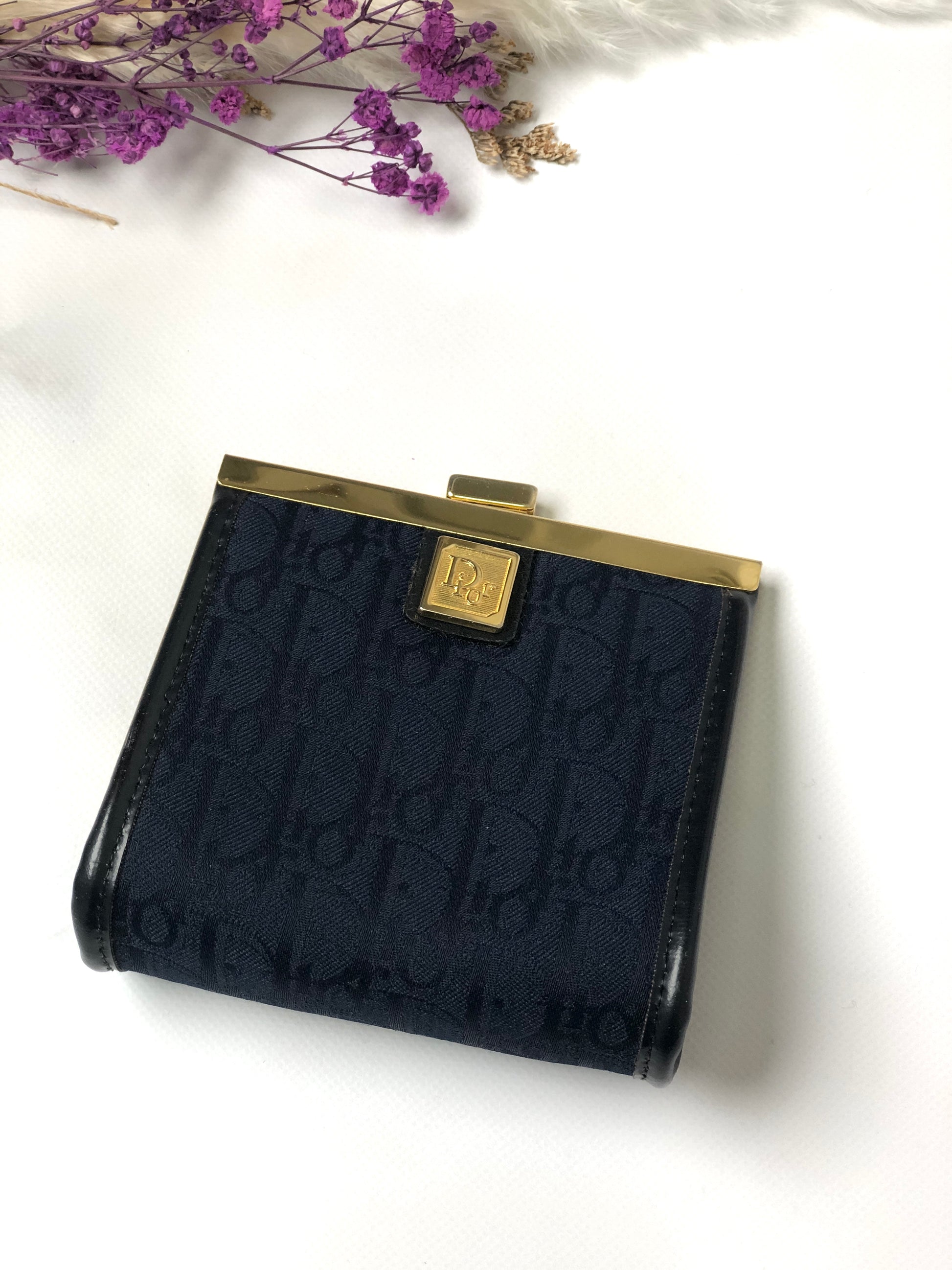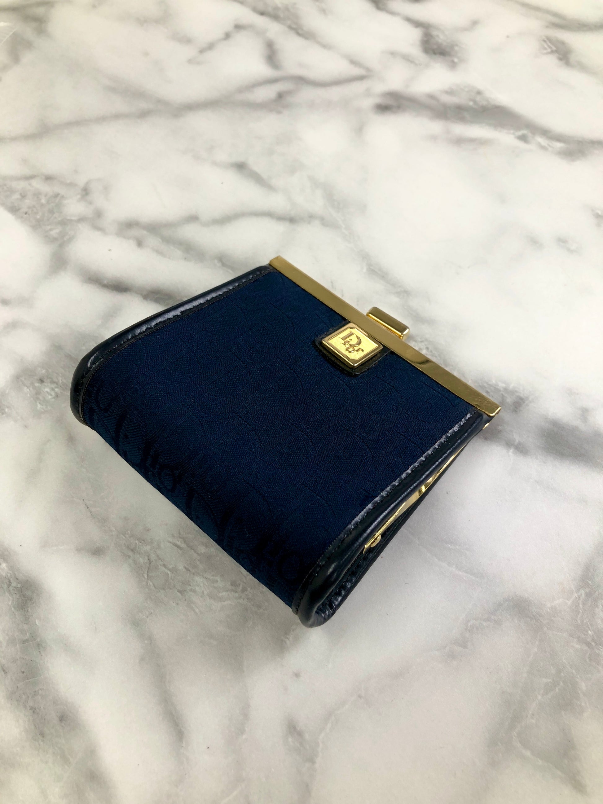 Christian Dior Trotter Logo Jacquard Leather Metal Clasp Coin Purse Navy Vintage pjbgby