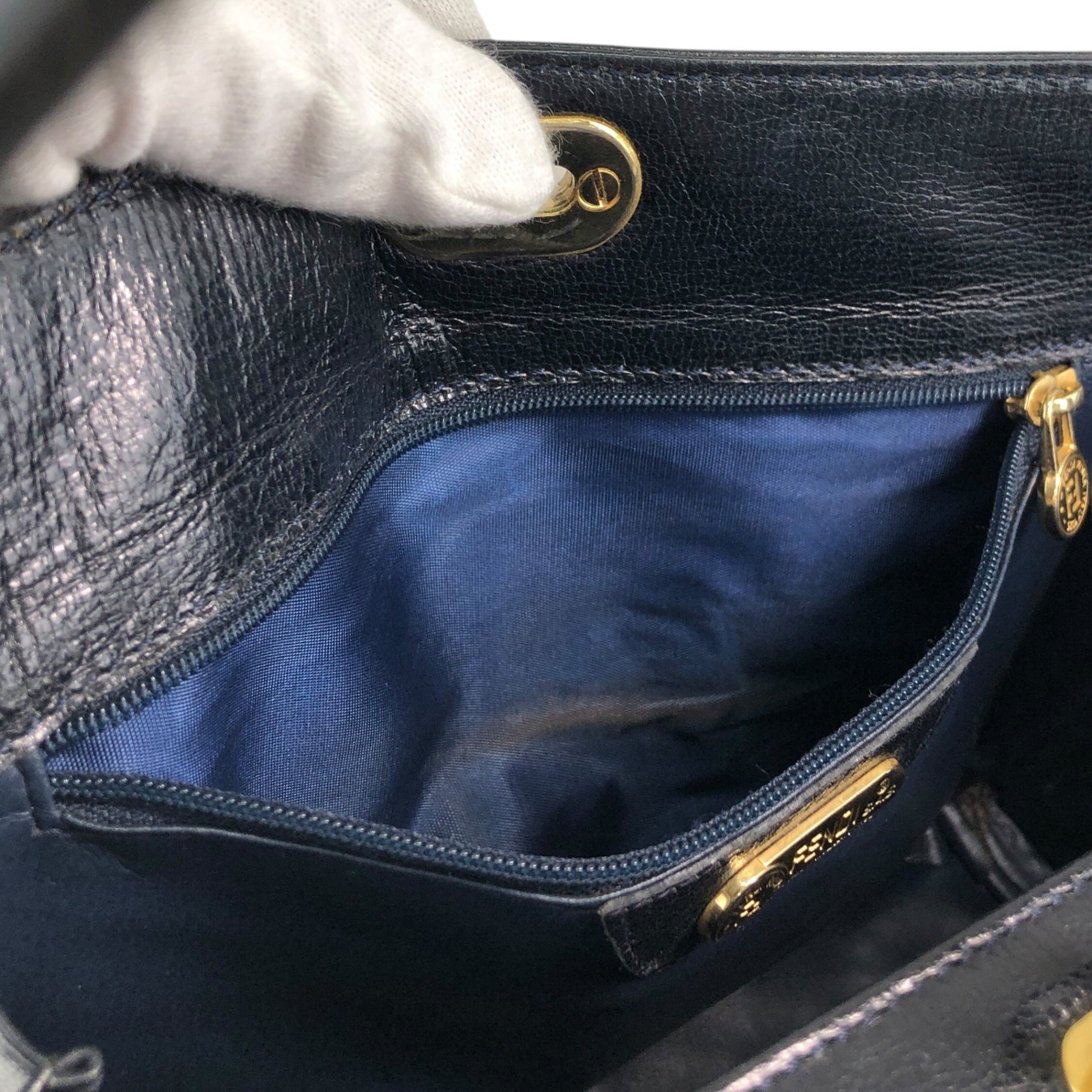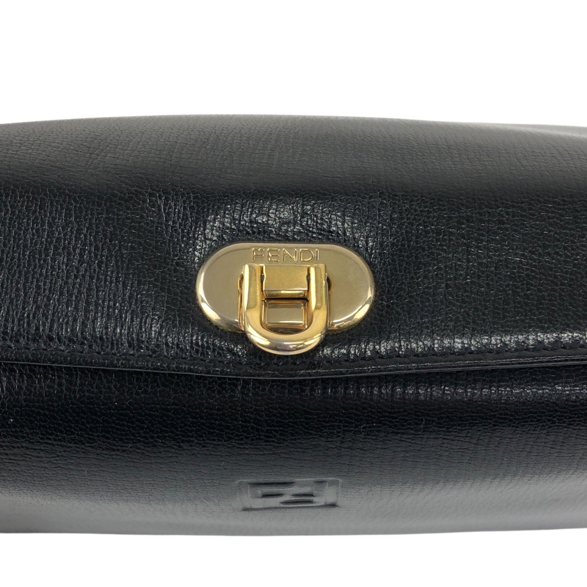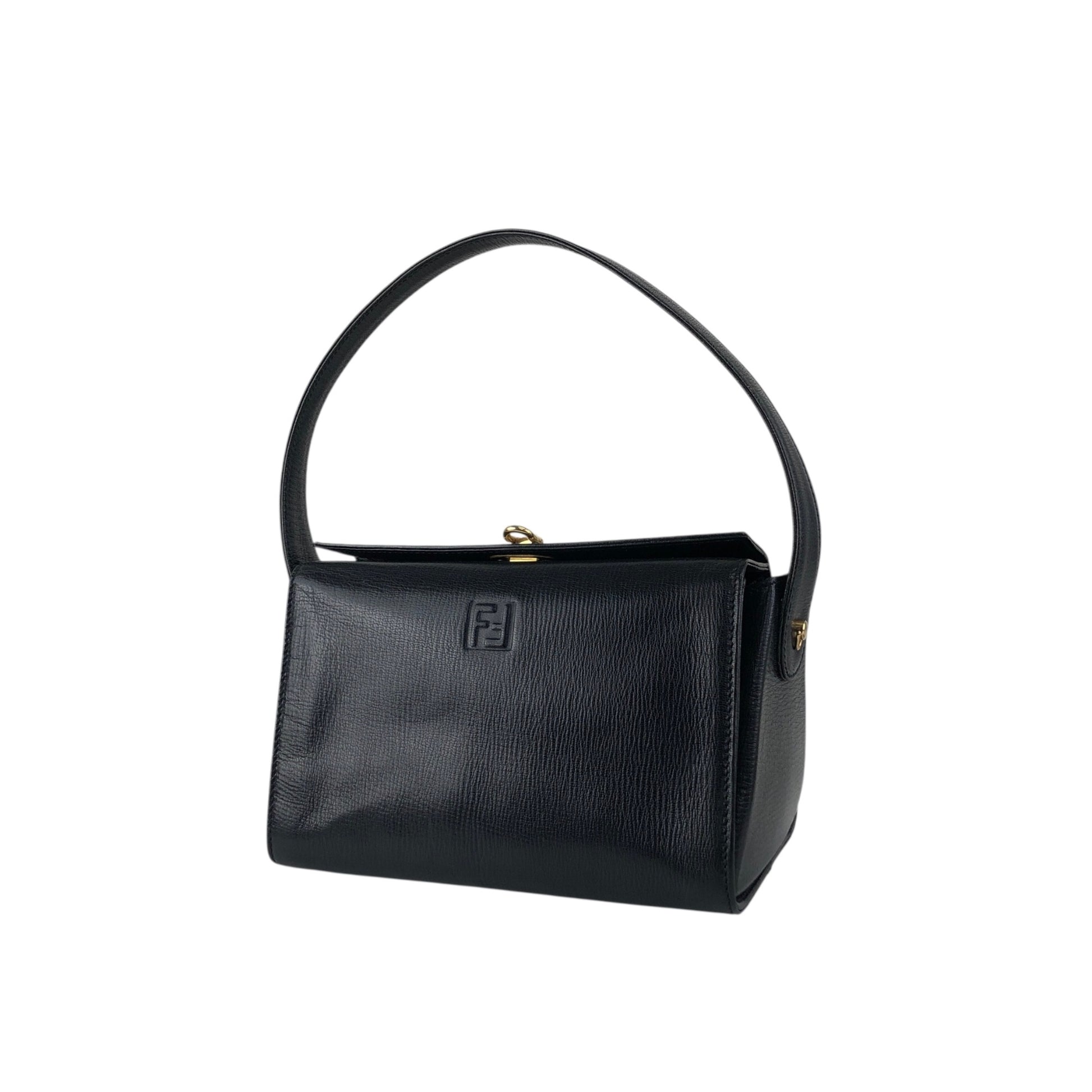 FENDI Logo Embossed Handbag Black Vintage yyxgsd