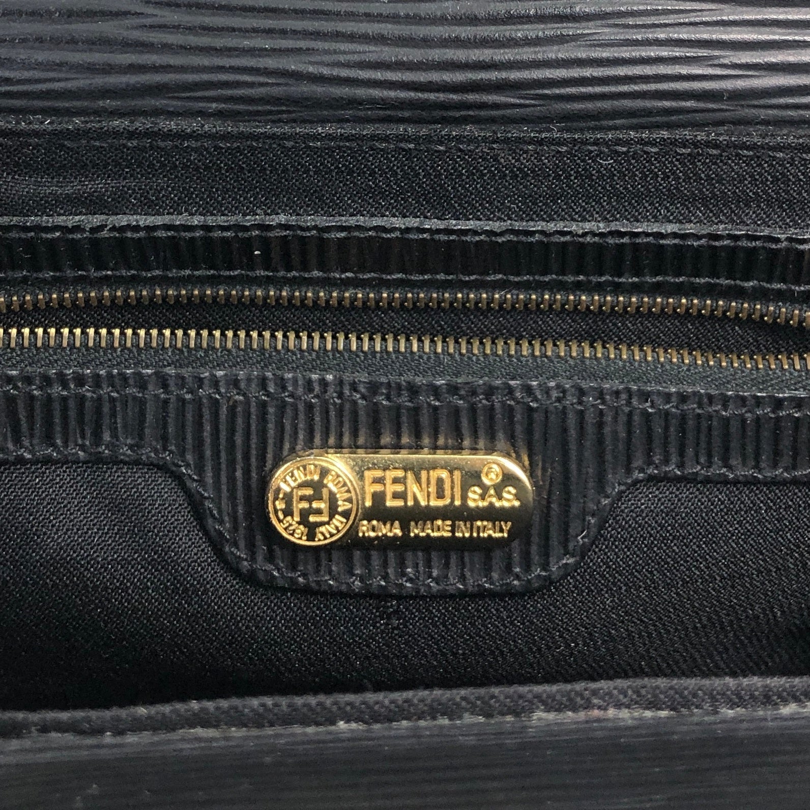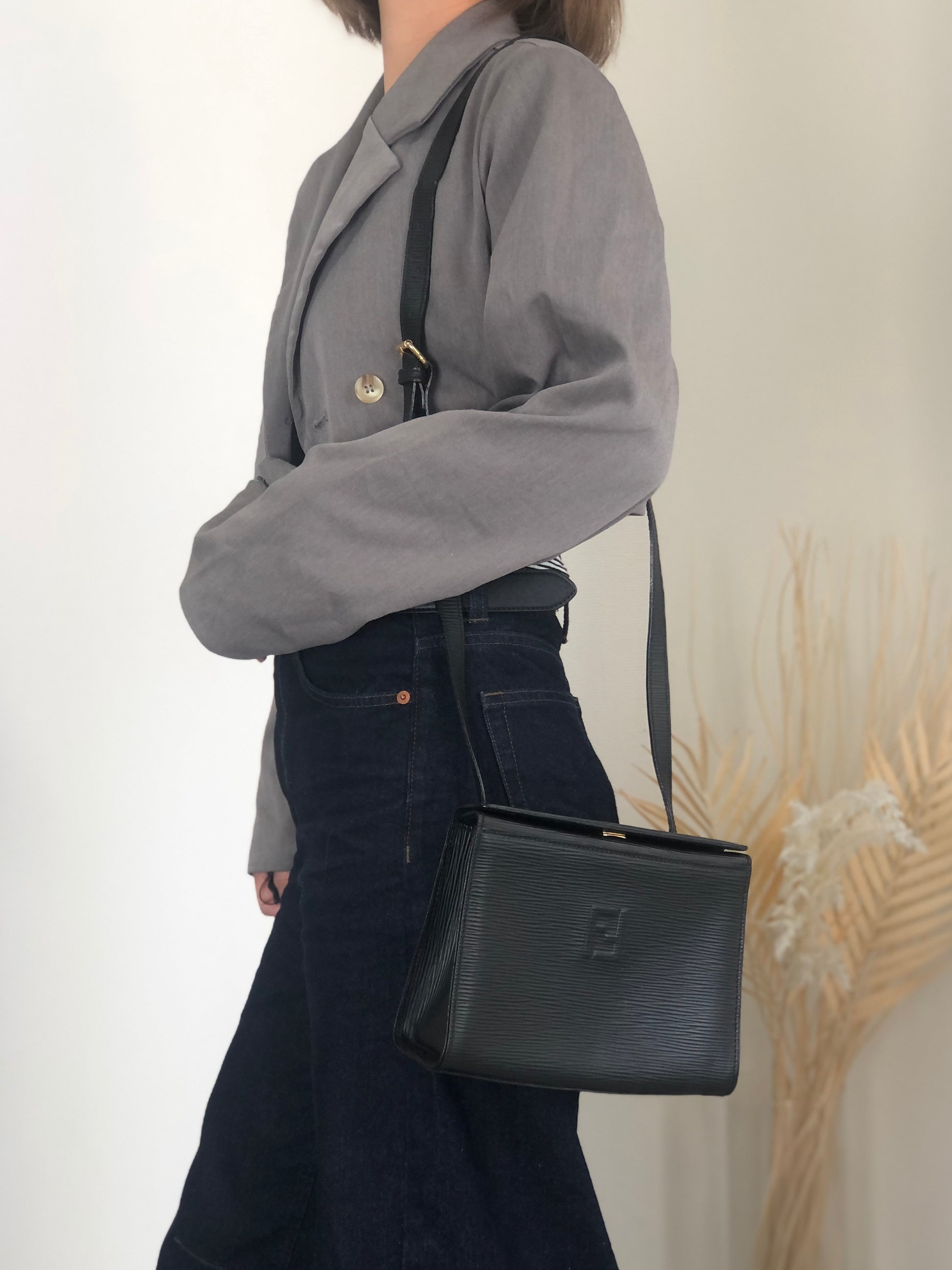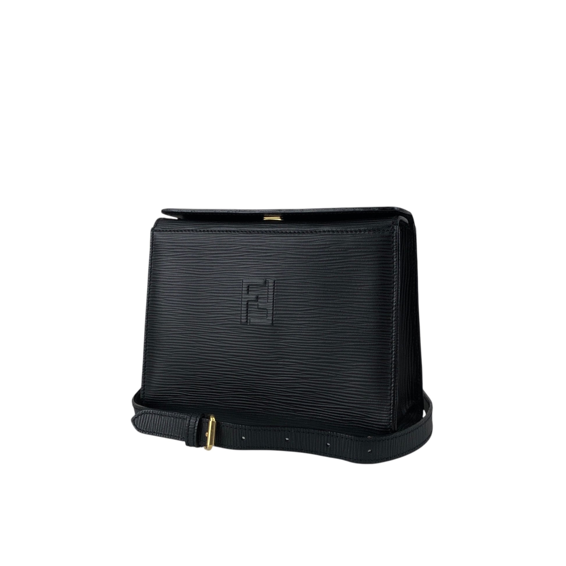 FENDI Logo Embossed Shoulder bag Black Vintage asc2di