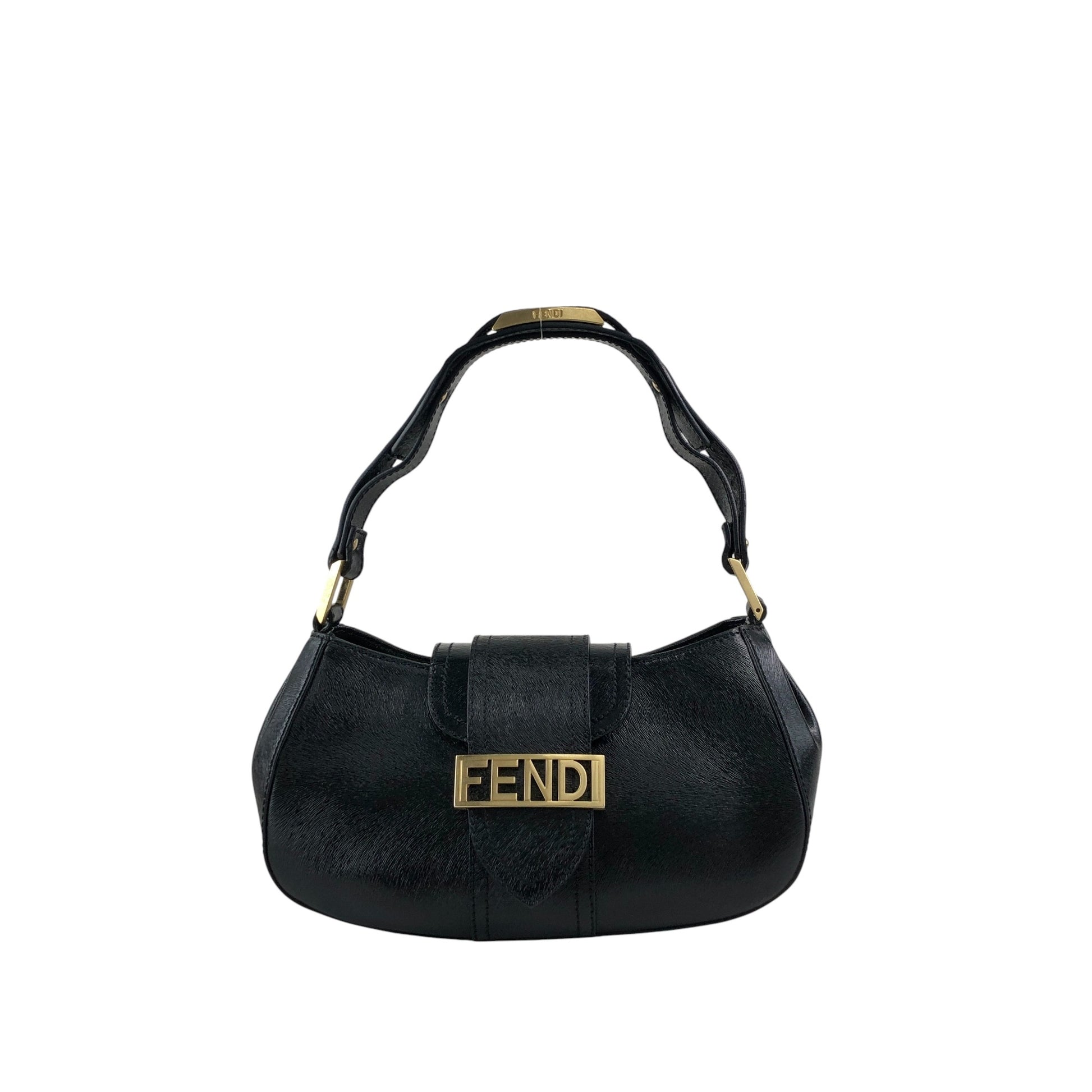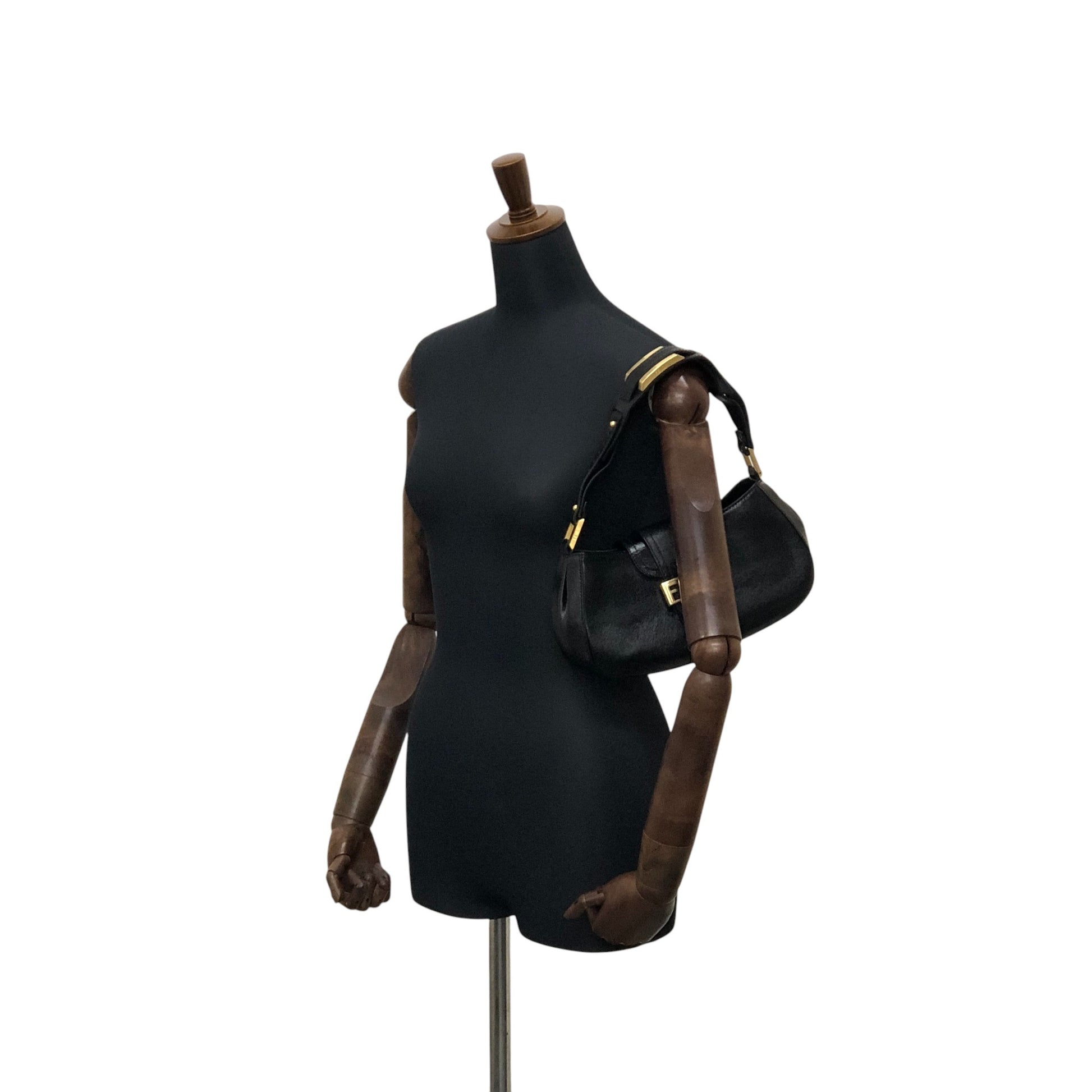 FENDI Logo Shoulder bag Black Vintage zjfy53