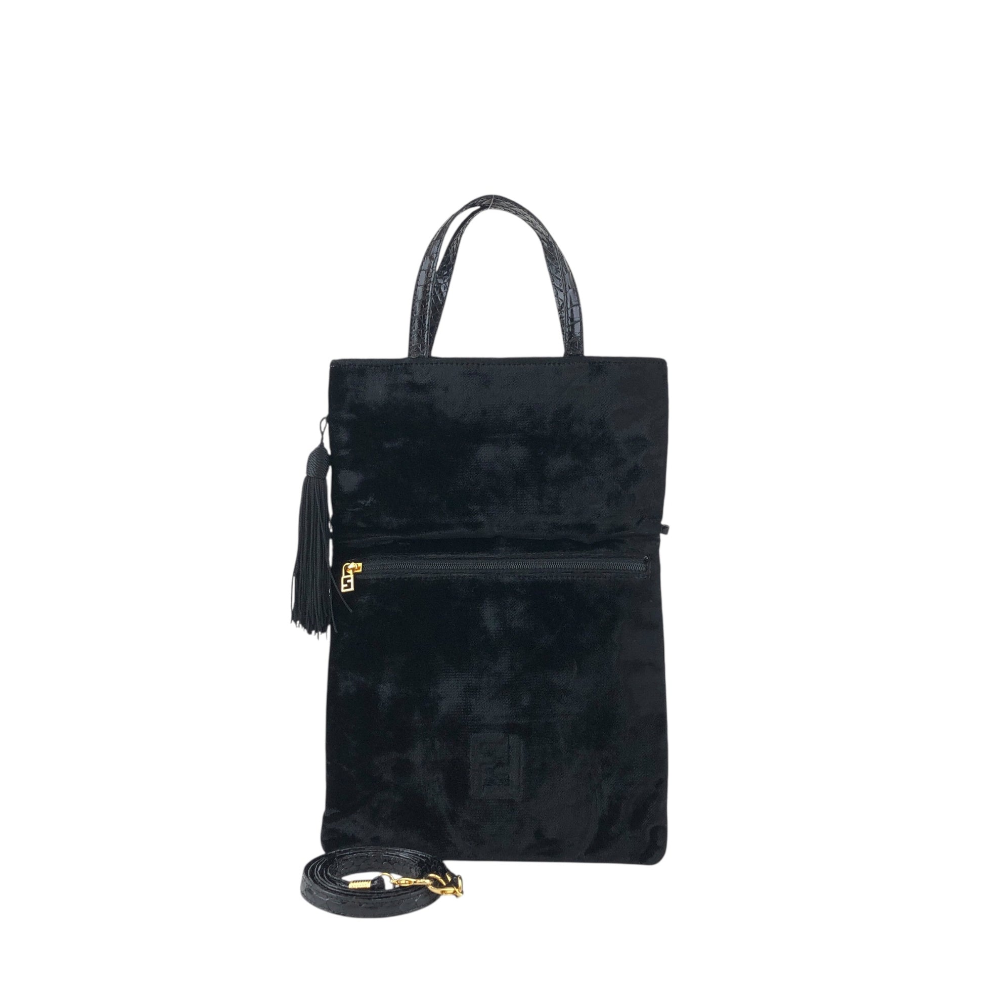 FENDI Logo Tassel Two-way Shoulder bag Black Vintage jw2uf7