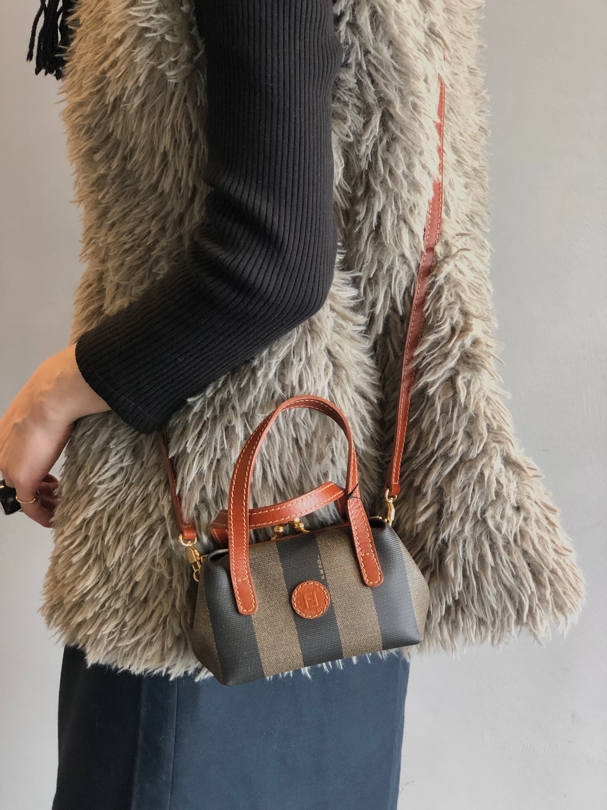 FENDI Pecan Logo Metal Closure Two-way Handbag Shoulder bag Brown Vintage pr7k2h