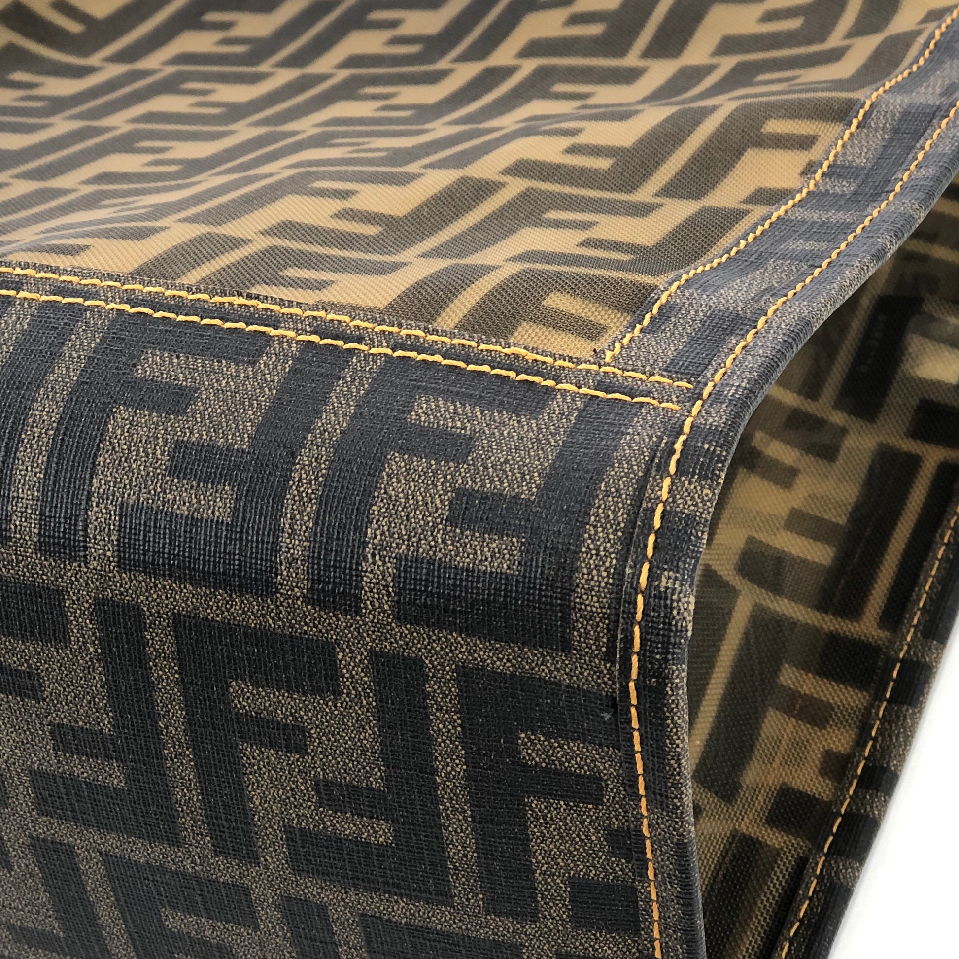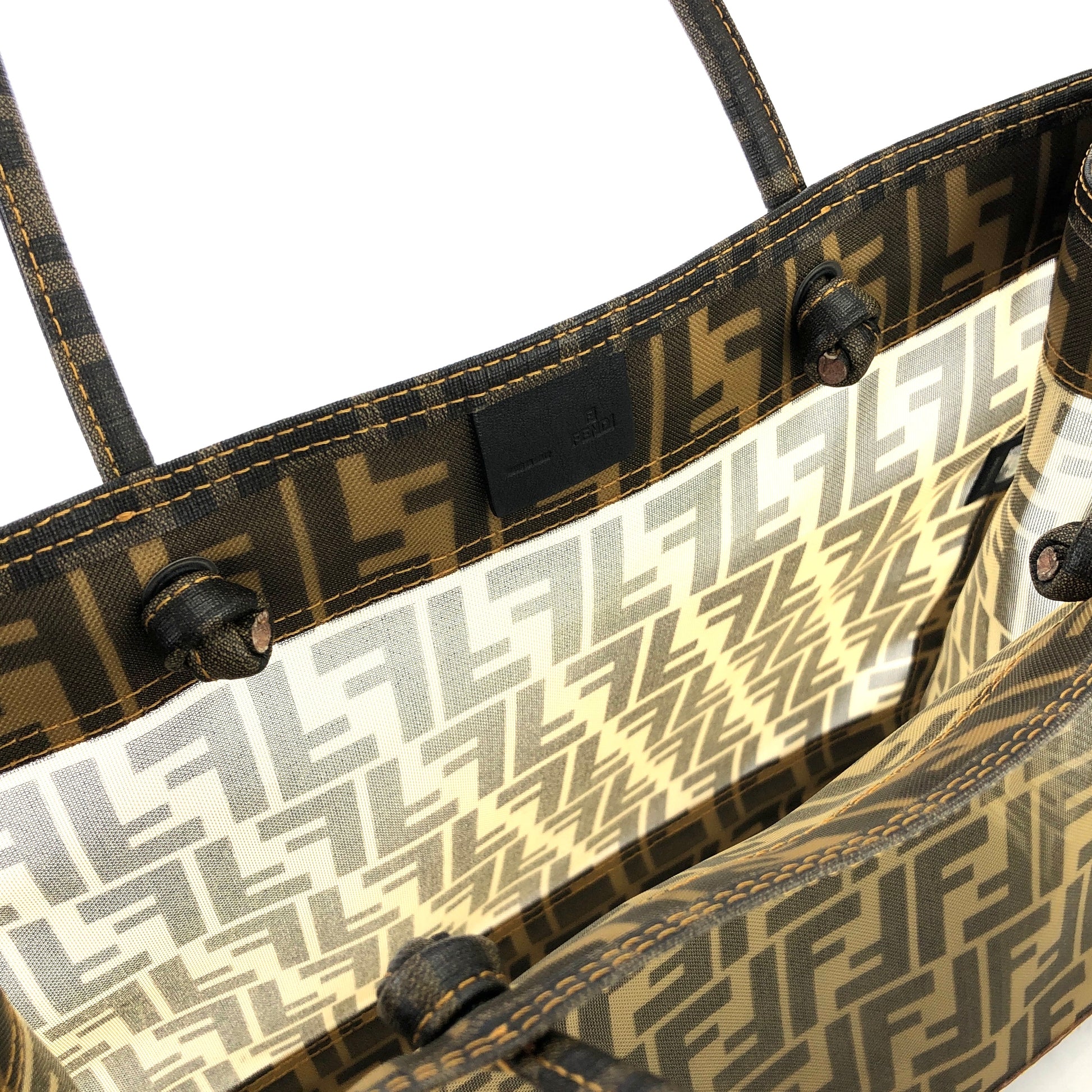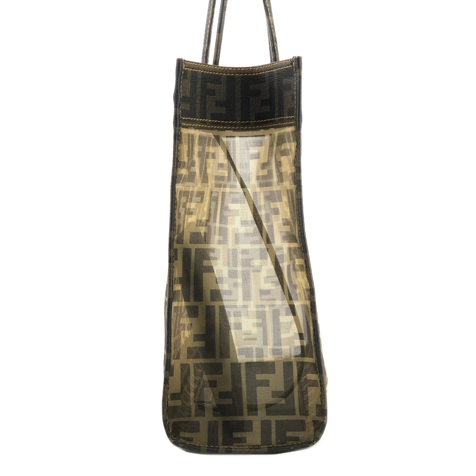 FENDI Zucca handbag tote bag square mesh pvc brown old vintage zemssz