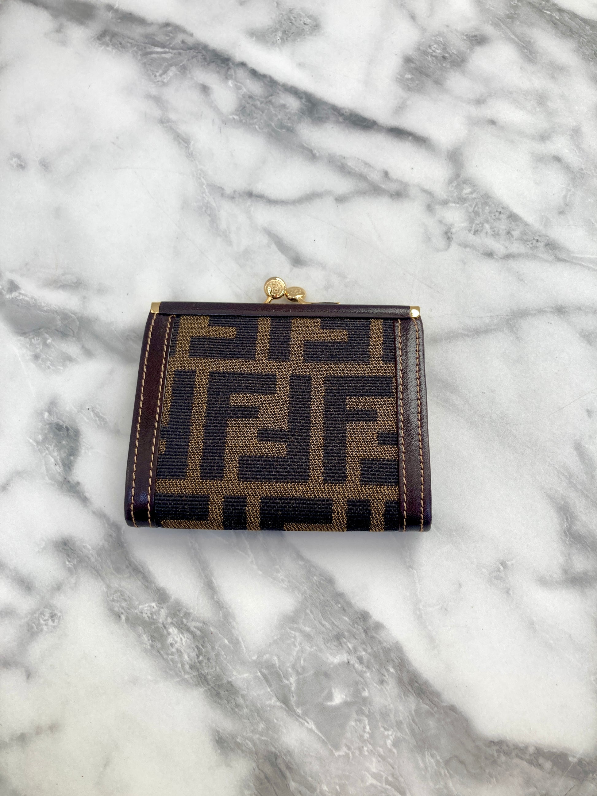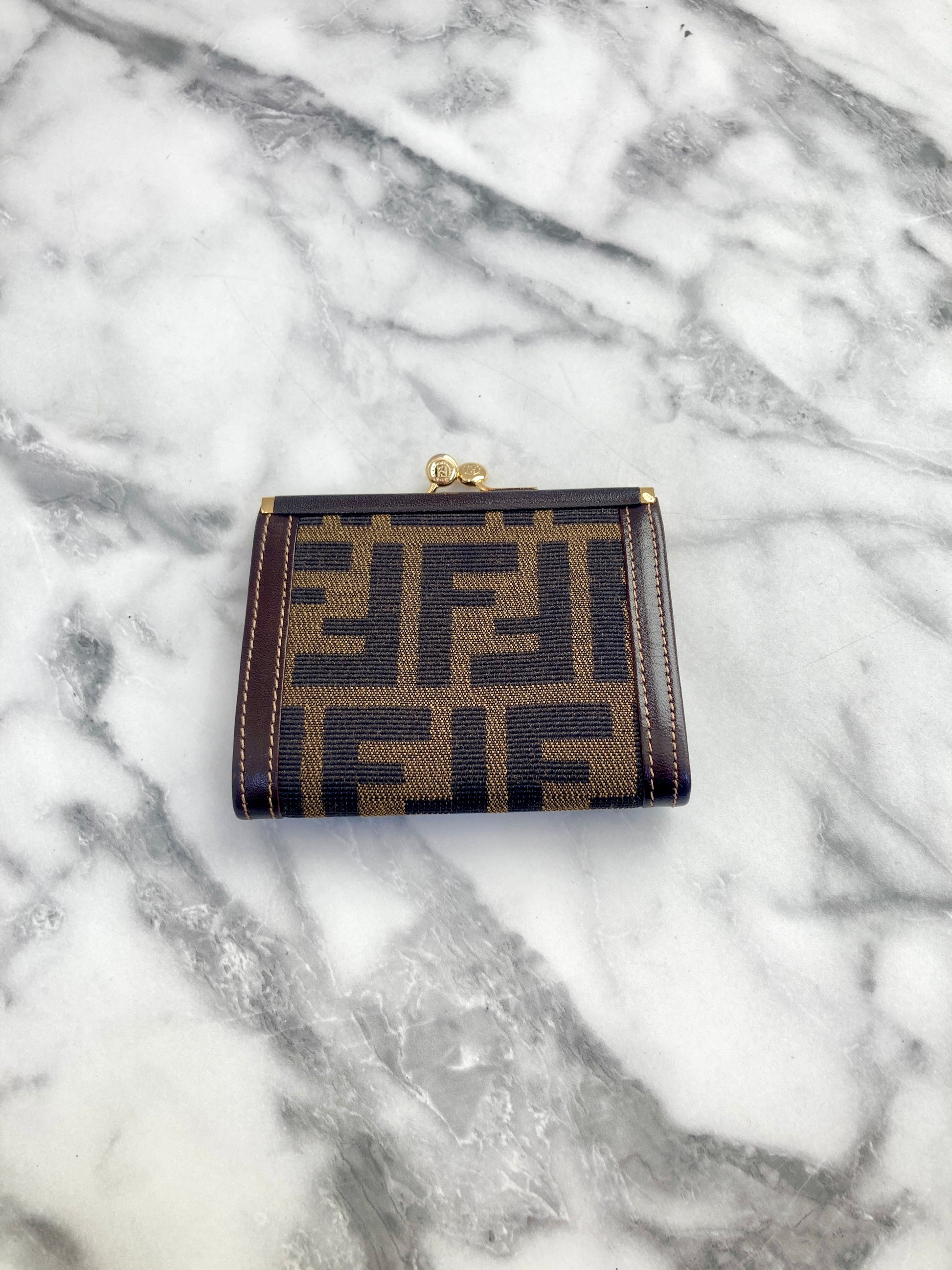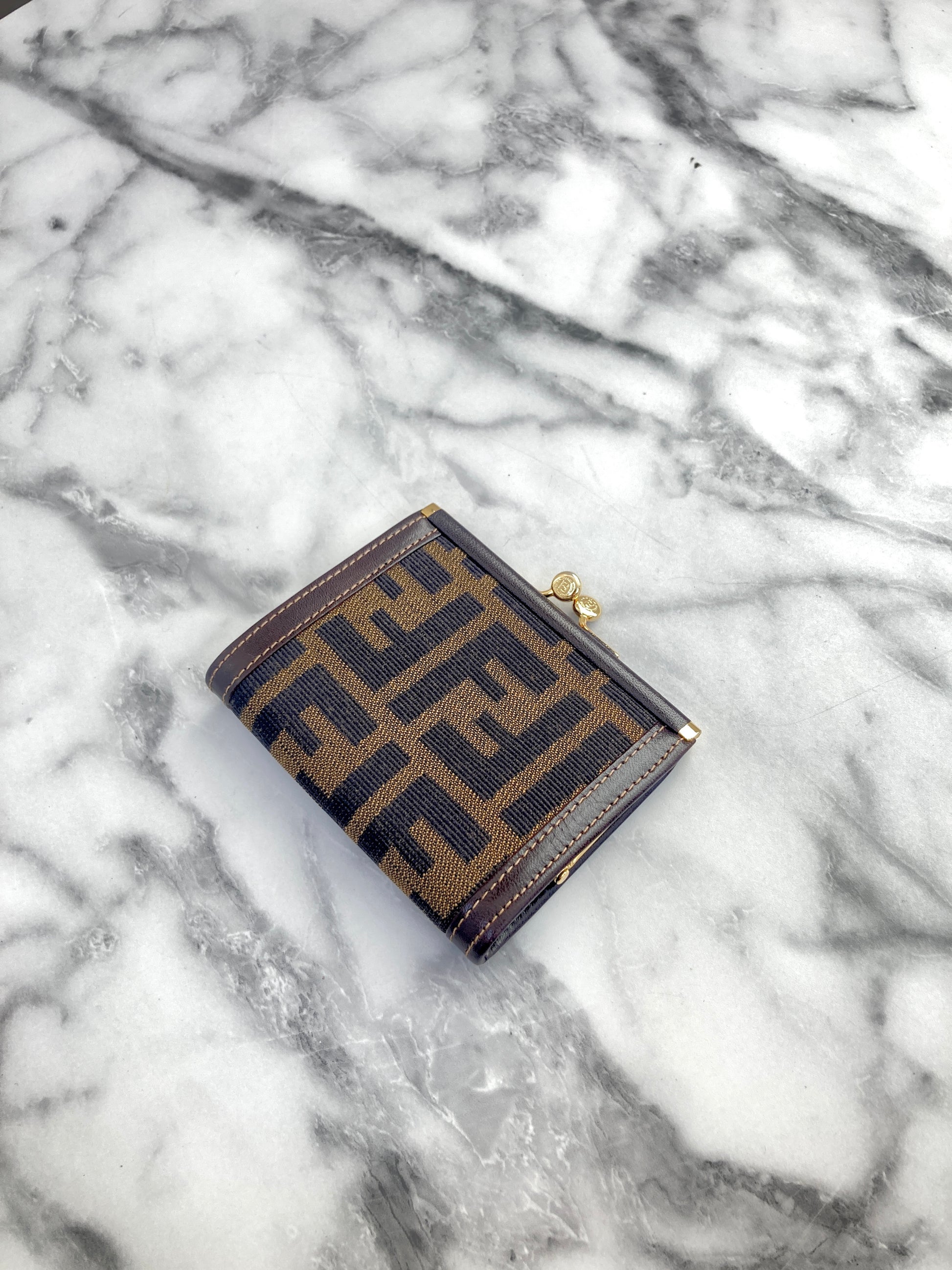 FENDI Zucca Logo Canvas Leather Metal Clasp Coin Purse Black Vintage 2m8efx