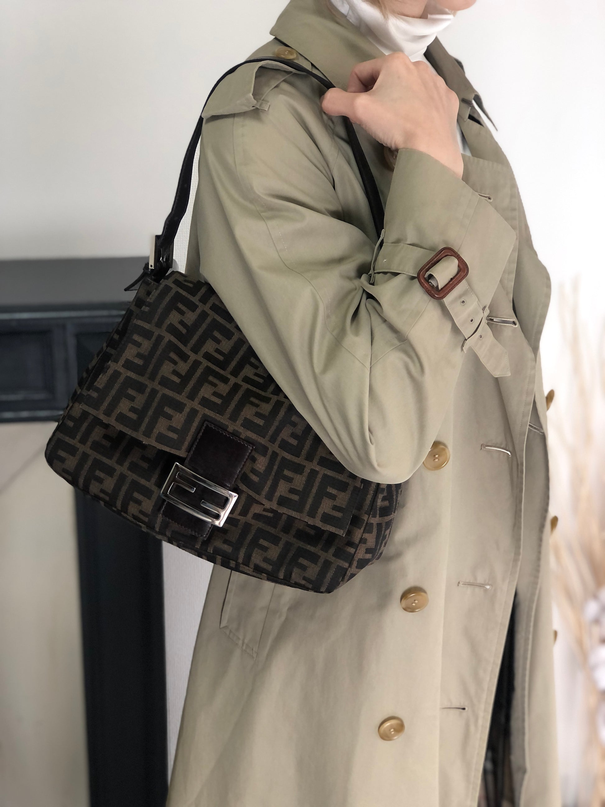 FENDI Zucca Logo Shoulder bag Brown Vintage df4sym