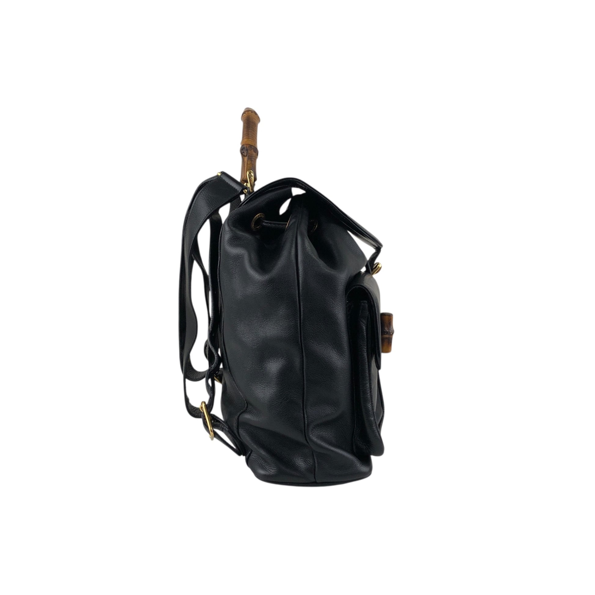 GUCCI Bamboo Double Pocket Backpack Black Vintage 5xx4xe