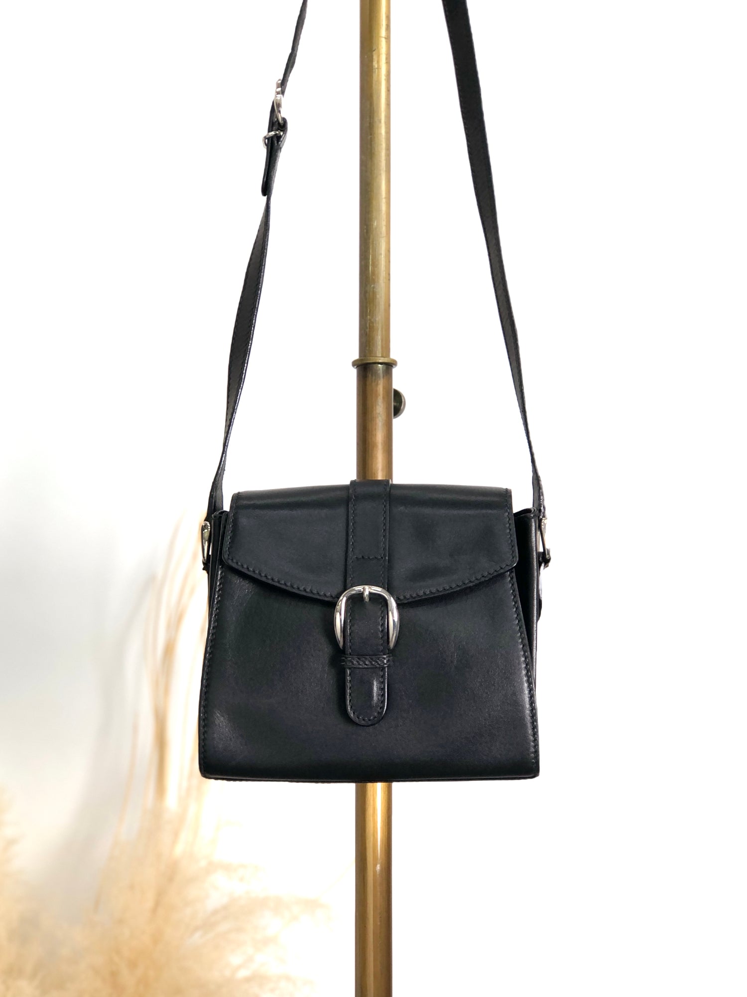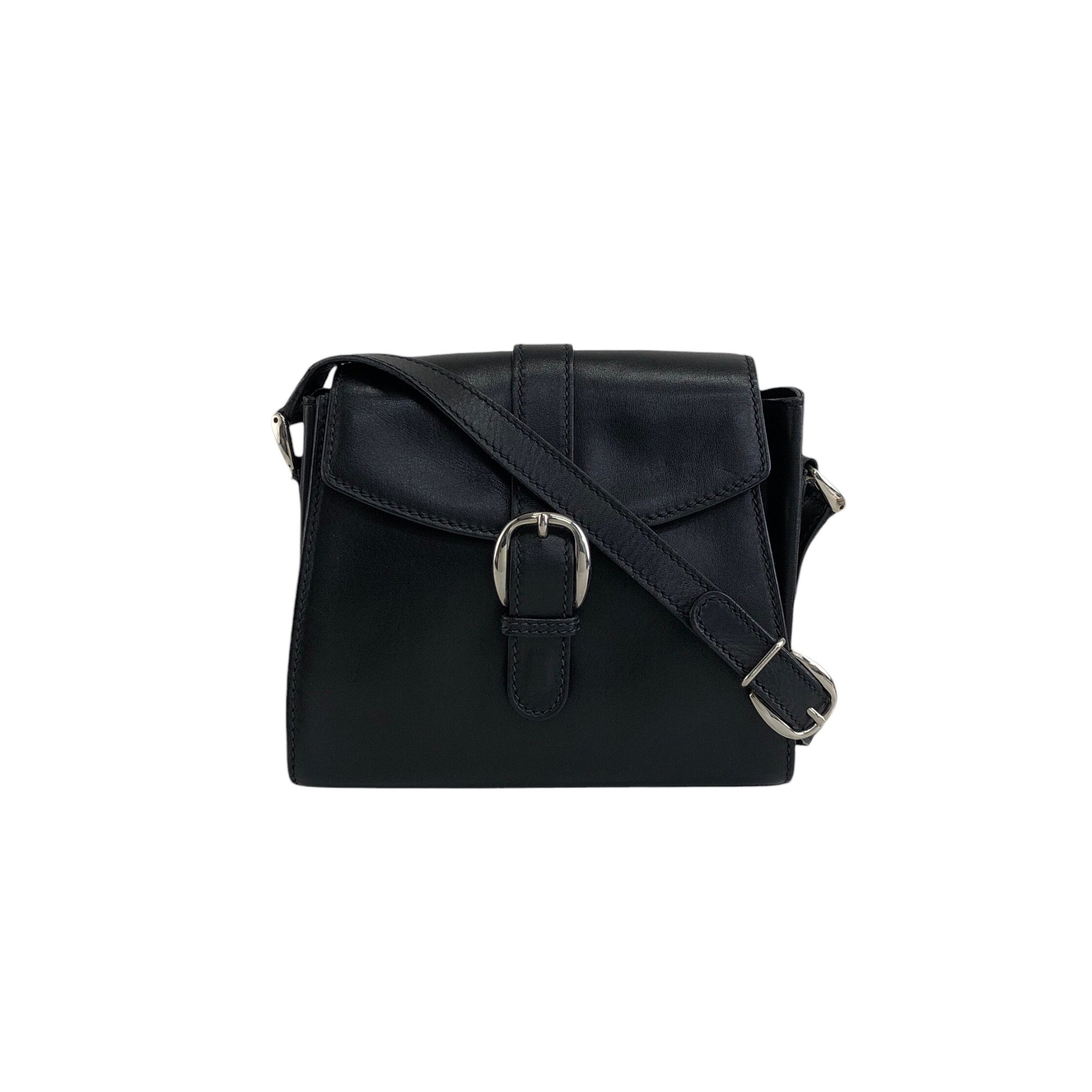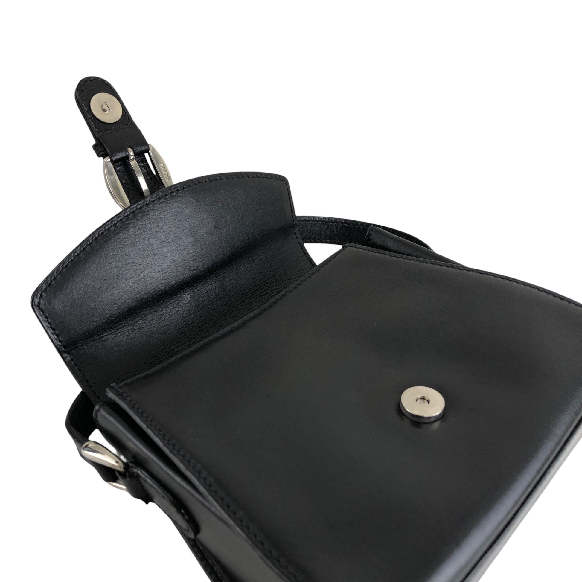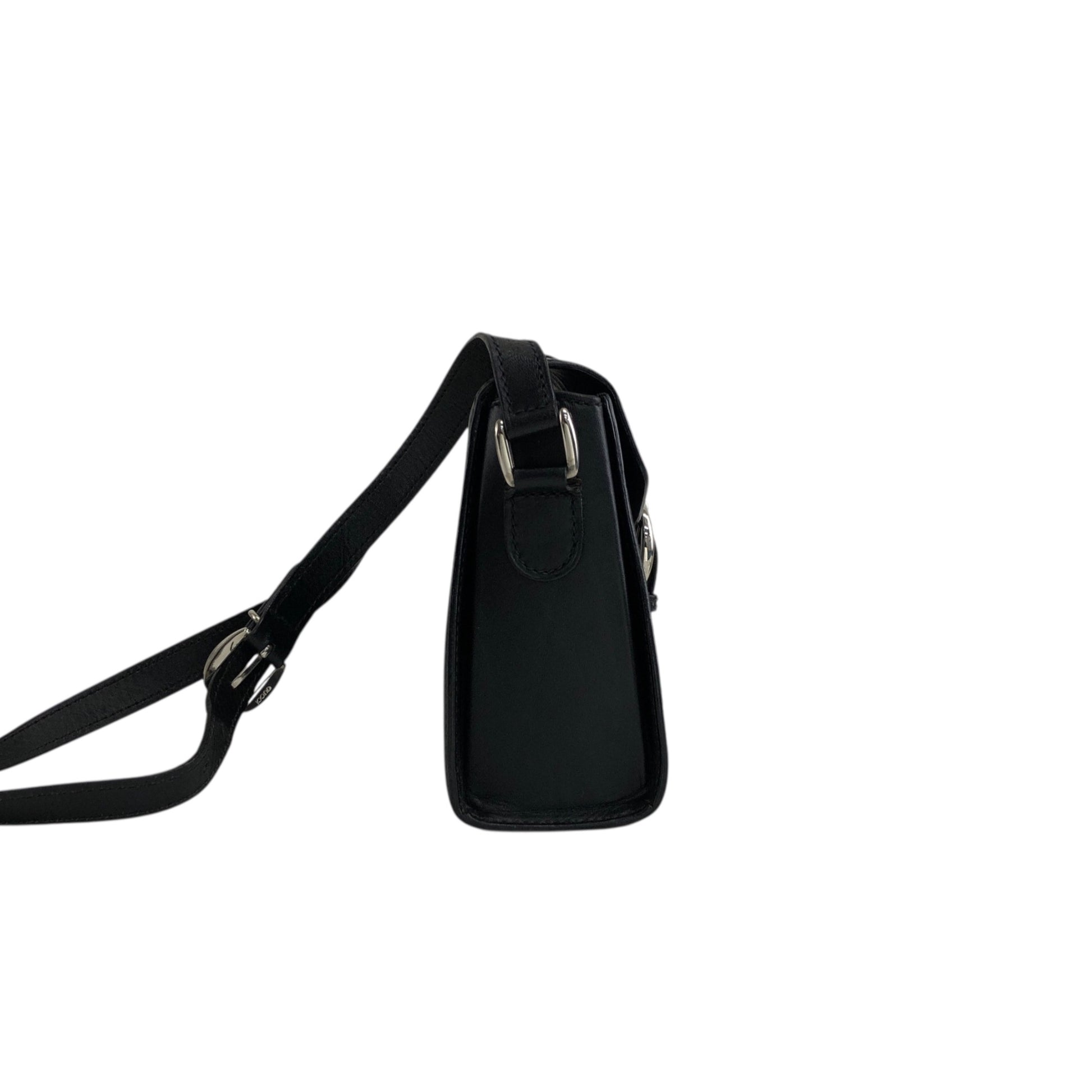 GUCCI Front Buckle Shoulder bag Black Vintage 6rzffs
