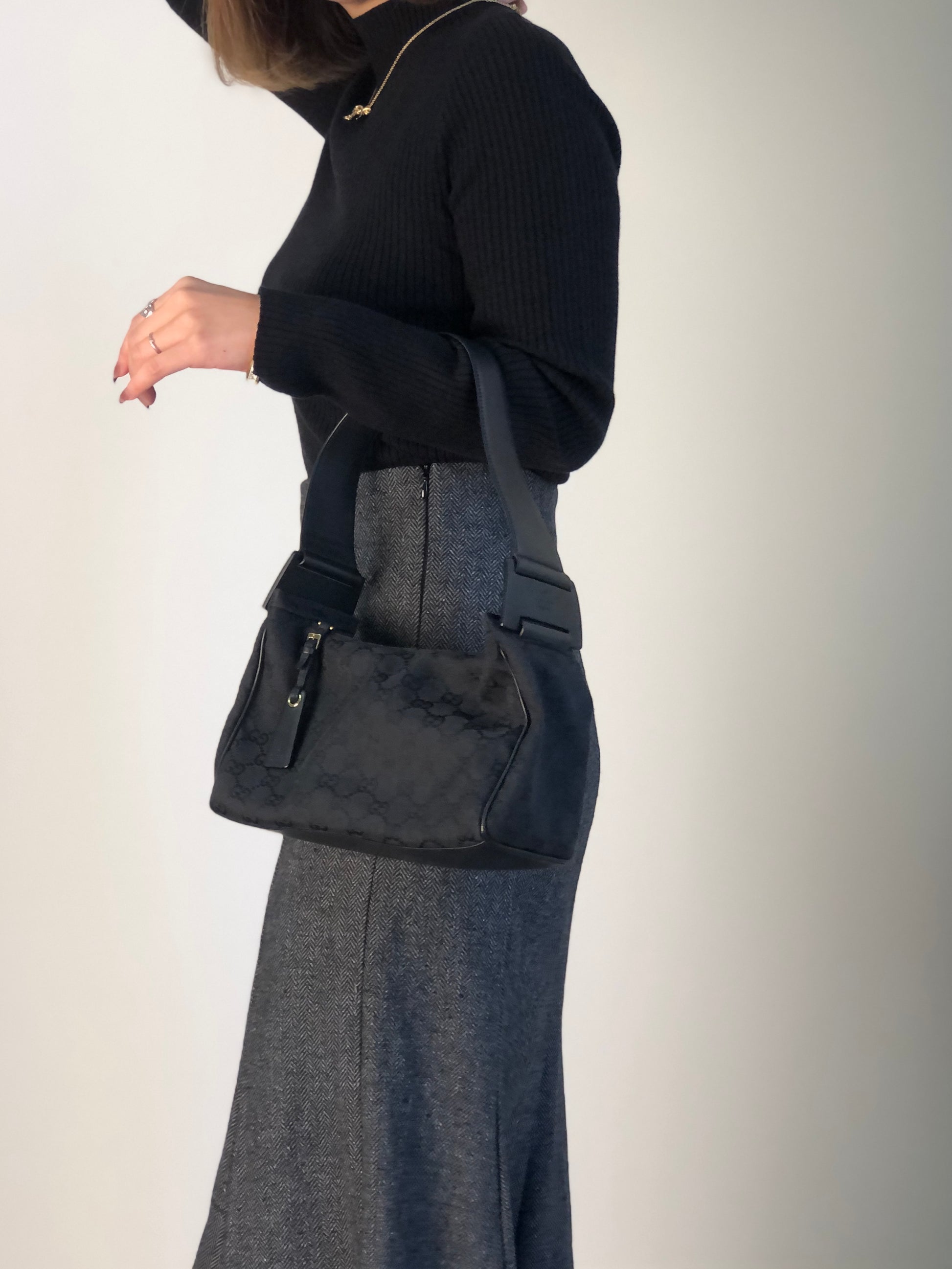 GUCCI GG Canvas Shoulder bag Black Vintage xi6jhz