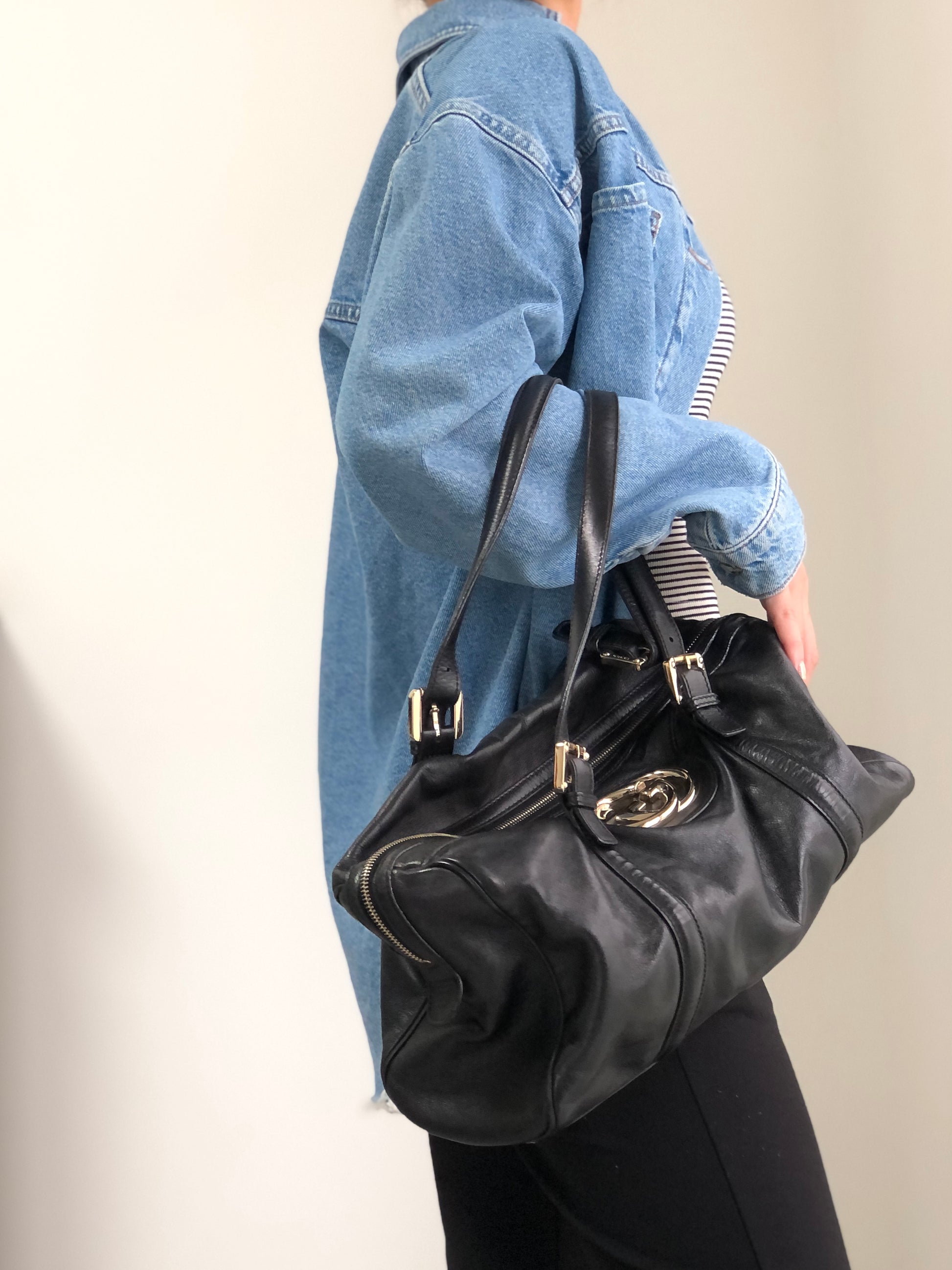 GUCCI GG Motif Small Boston bag Handbag Black Vintage f7jncz