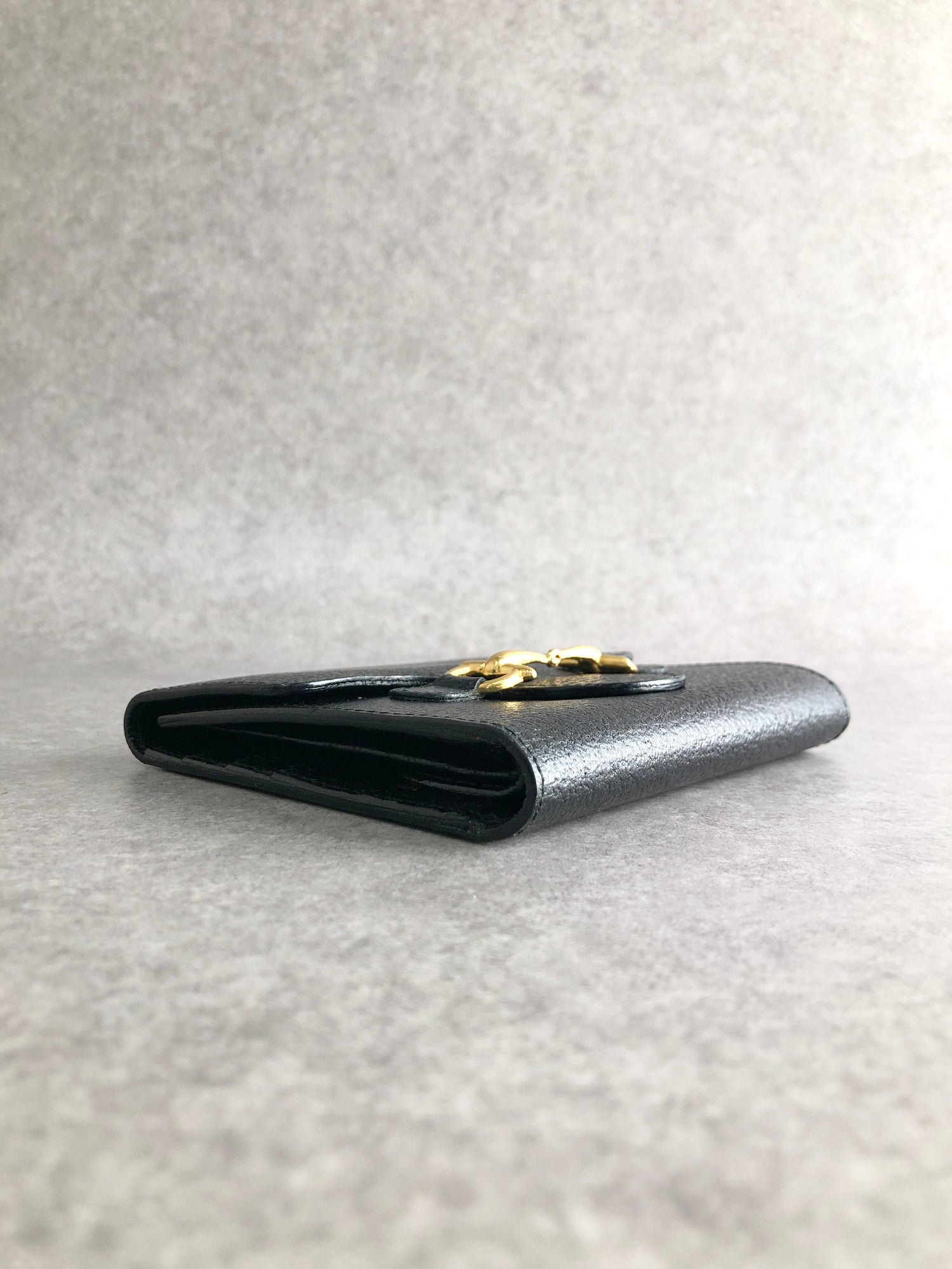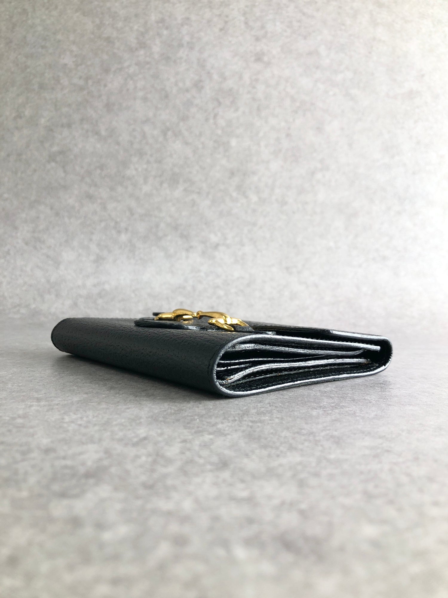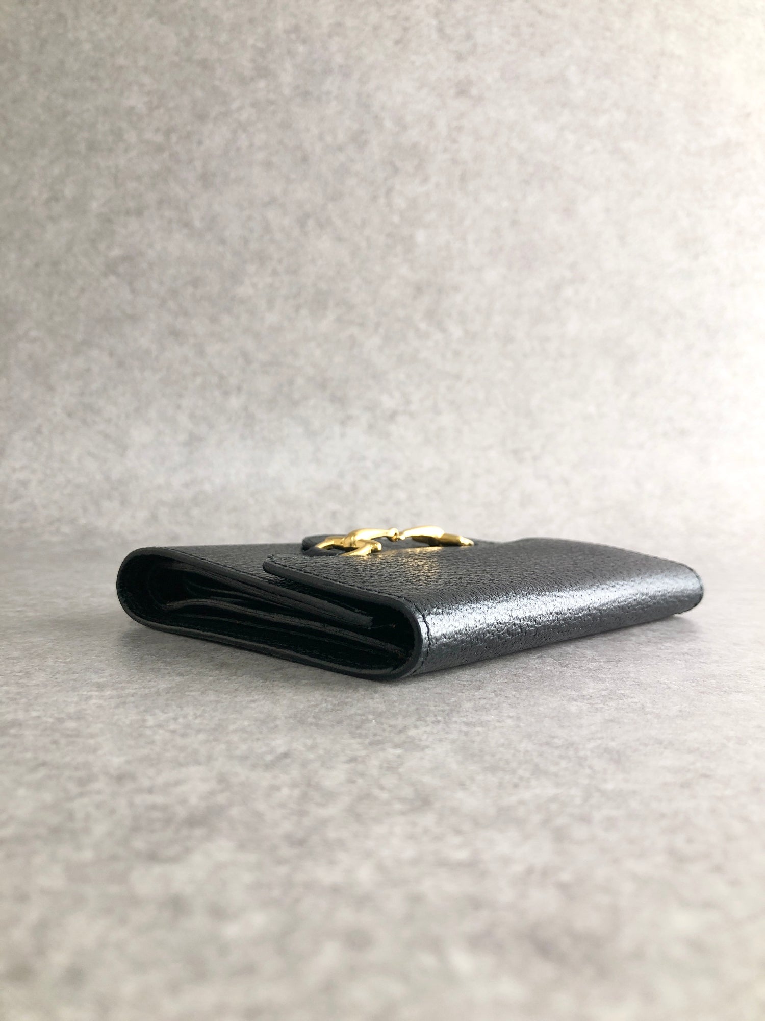 GUCCI Horse Bit Trifold Wallet Black Vintage xhjptb