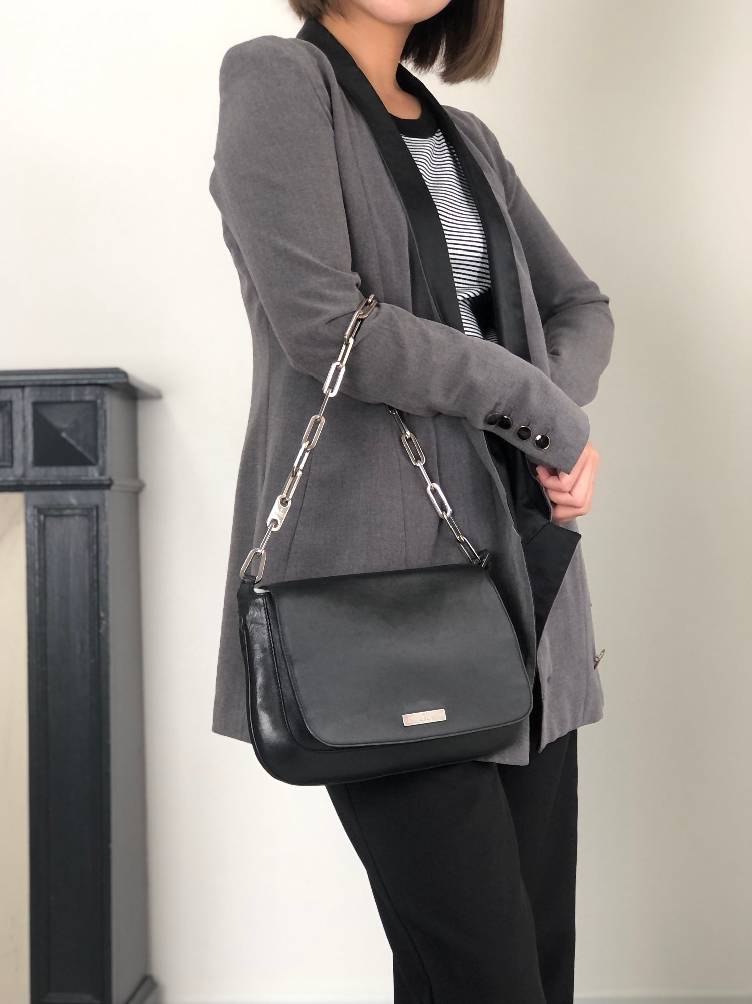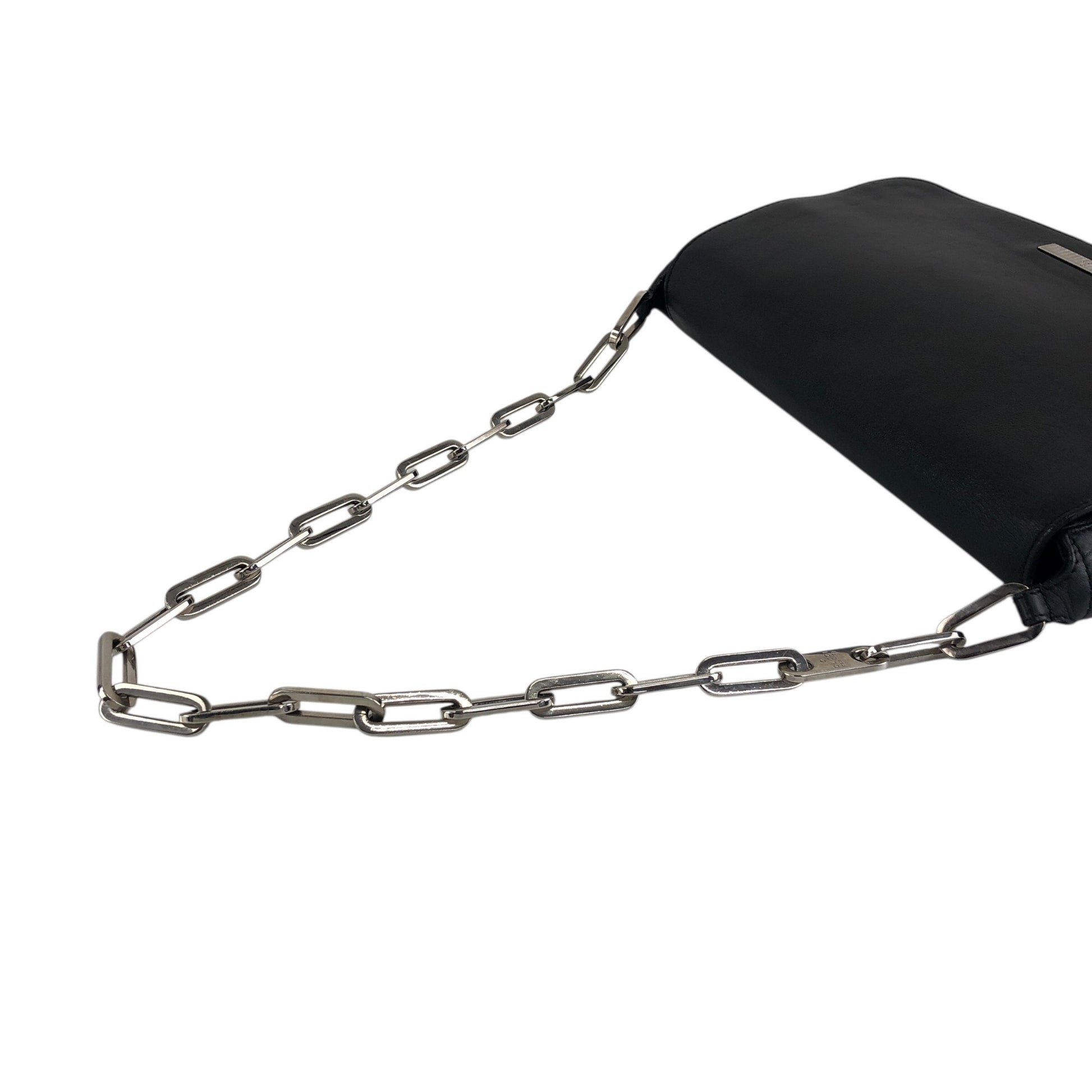 GUCCI Logo Chain Shoulder bag Black Vintage tjescz