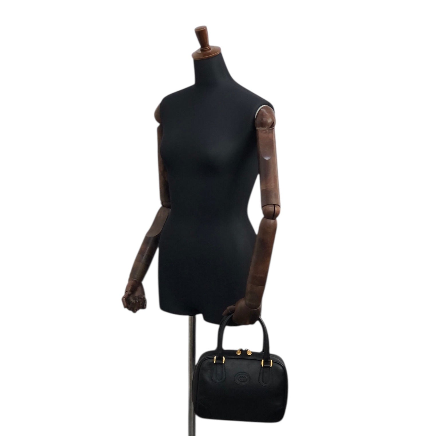 GUCCI Logo Embossed Handbag Black Vintage anpyxi