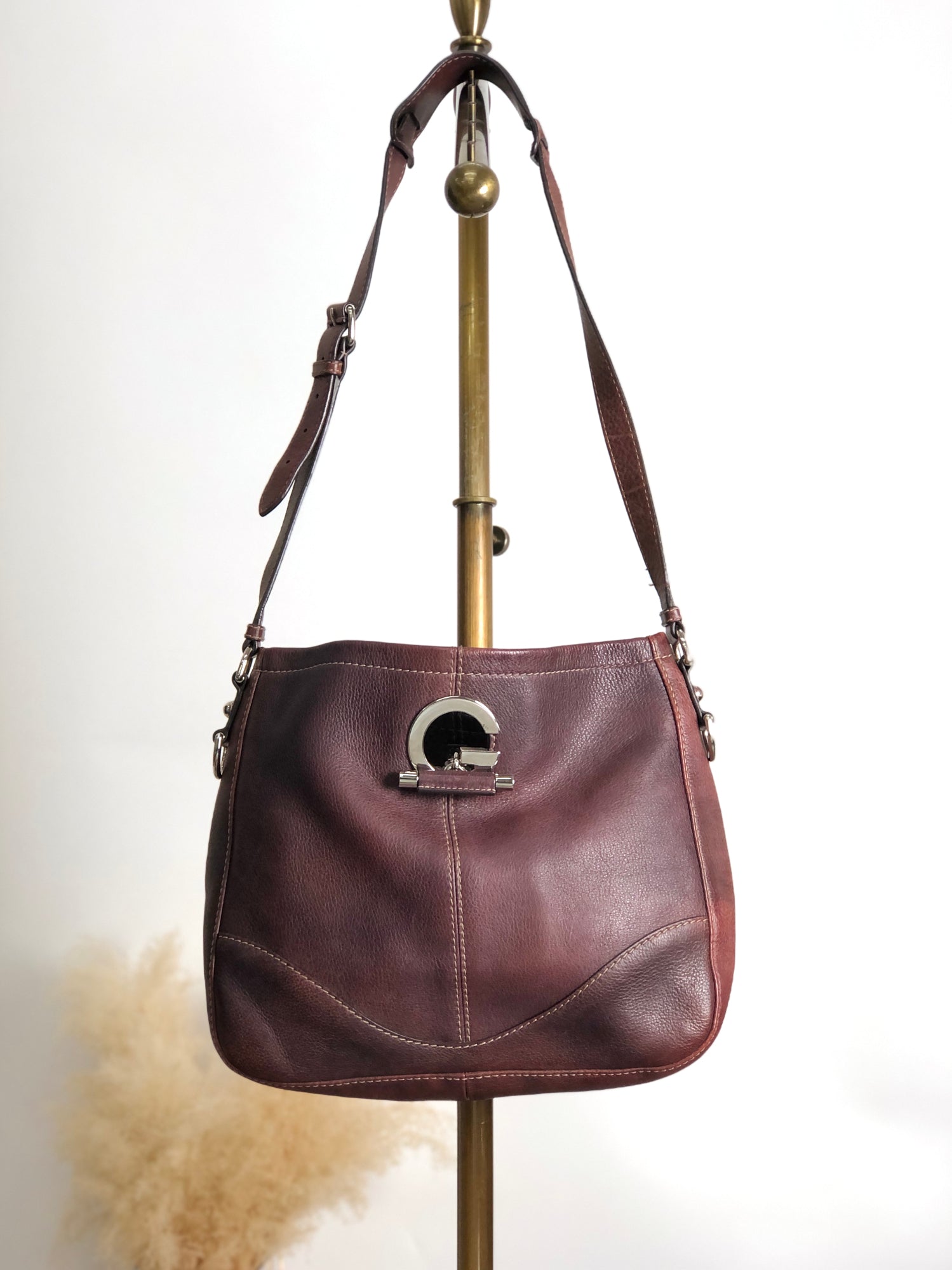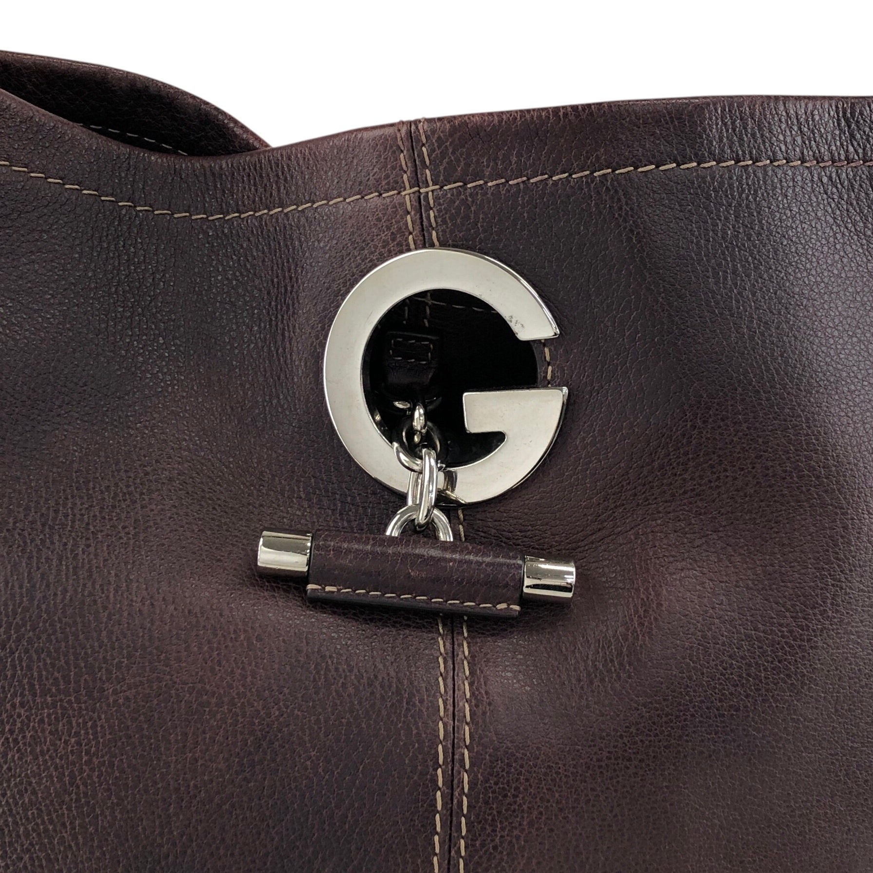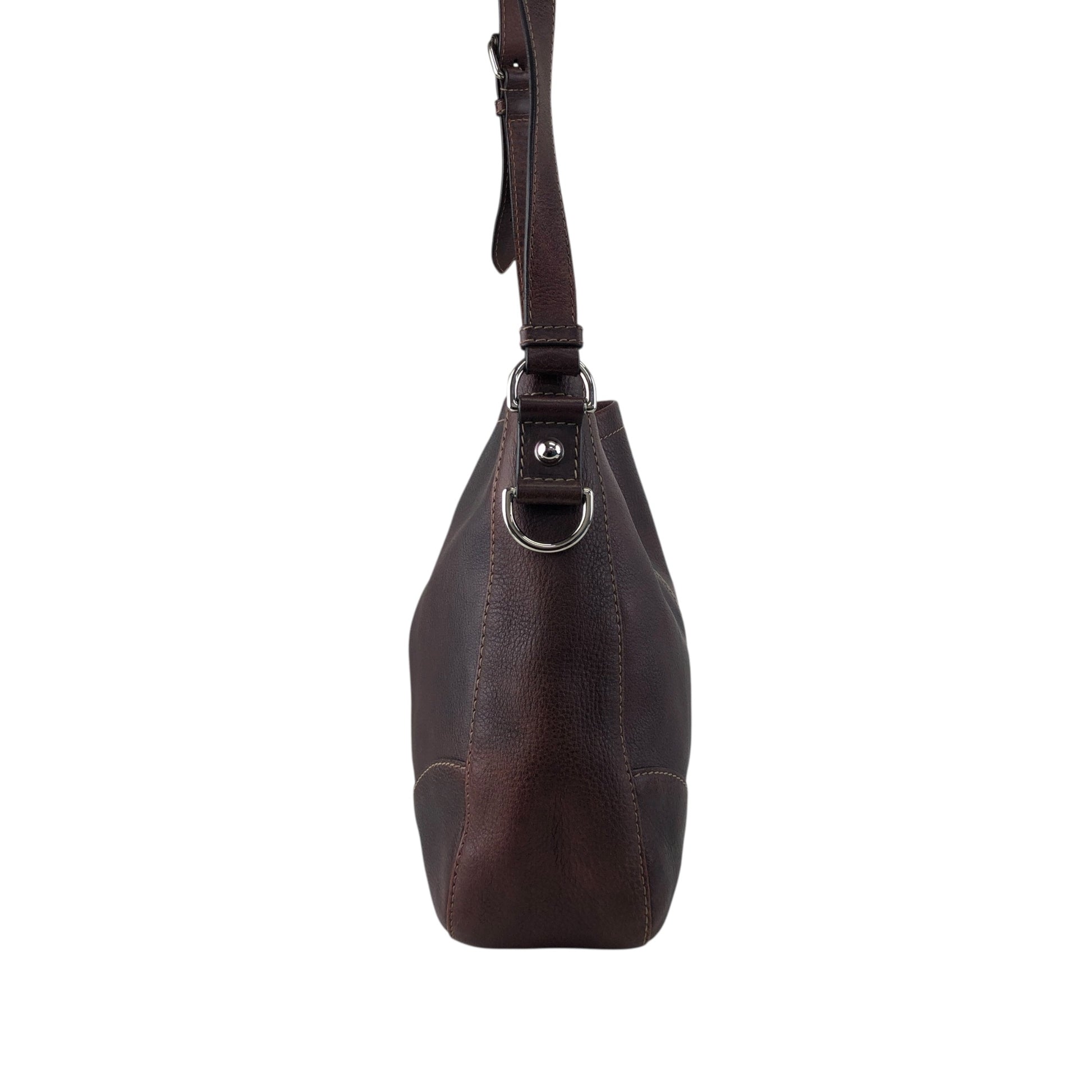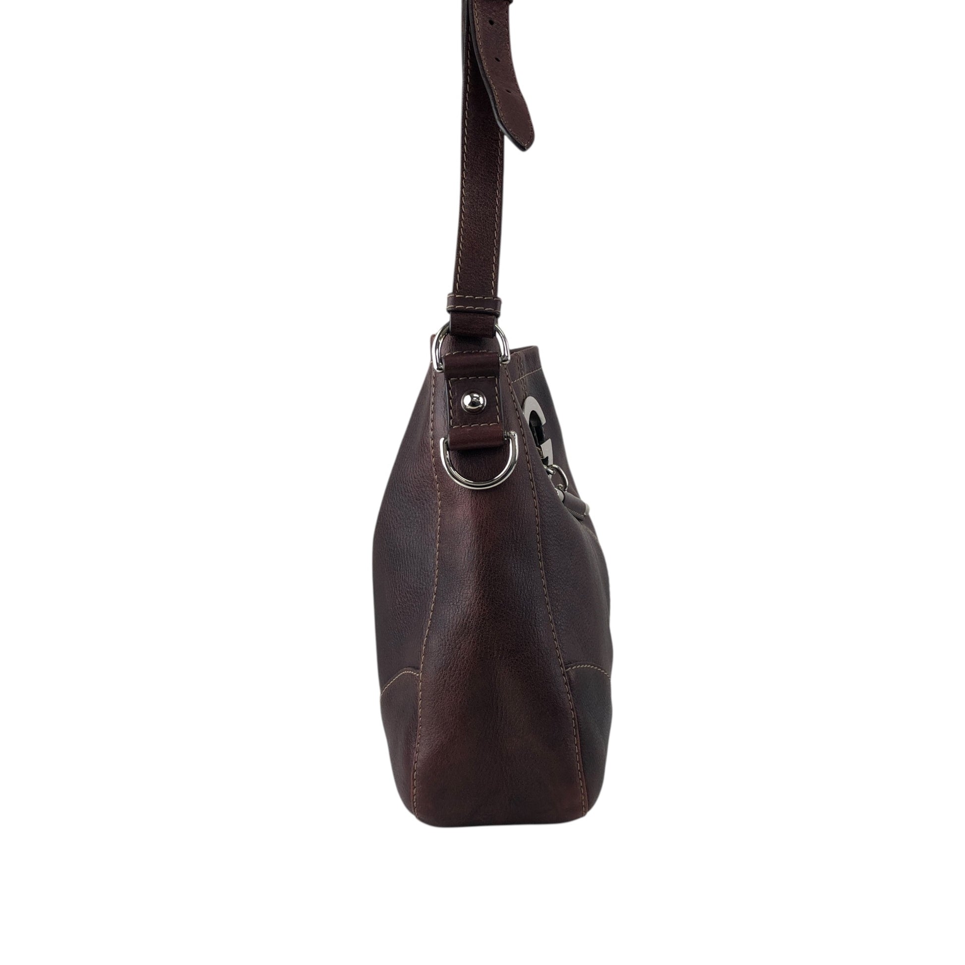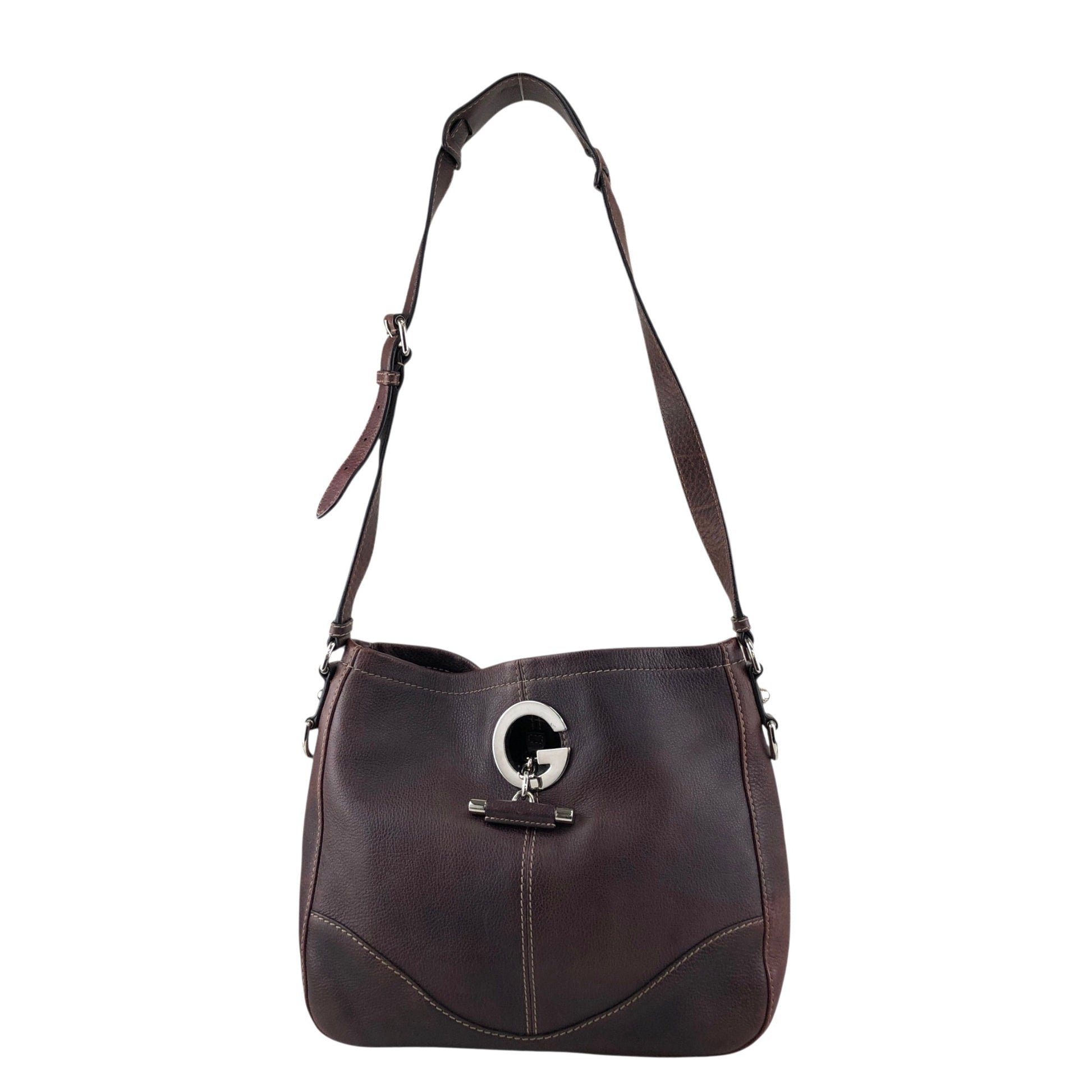 GUCCI Logo Embossed Shoulder bag Brown Vintage 8svbt5