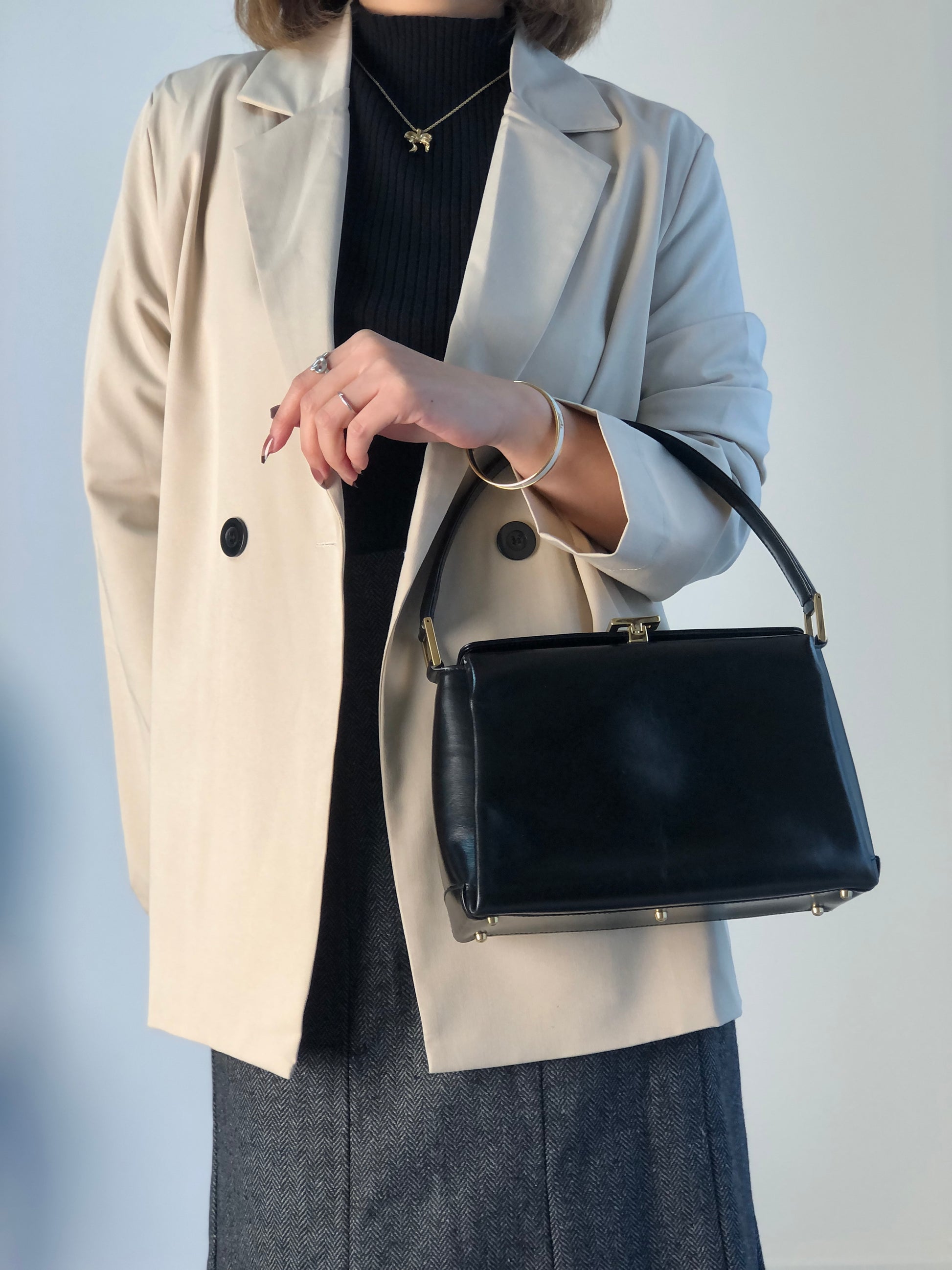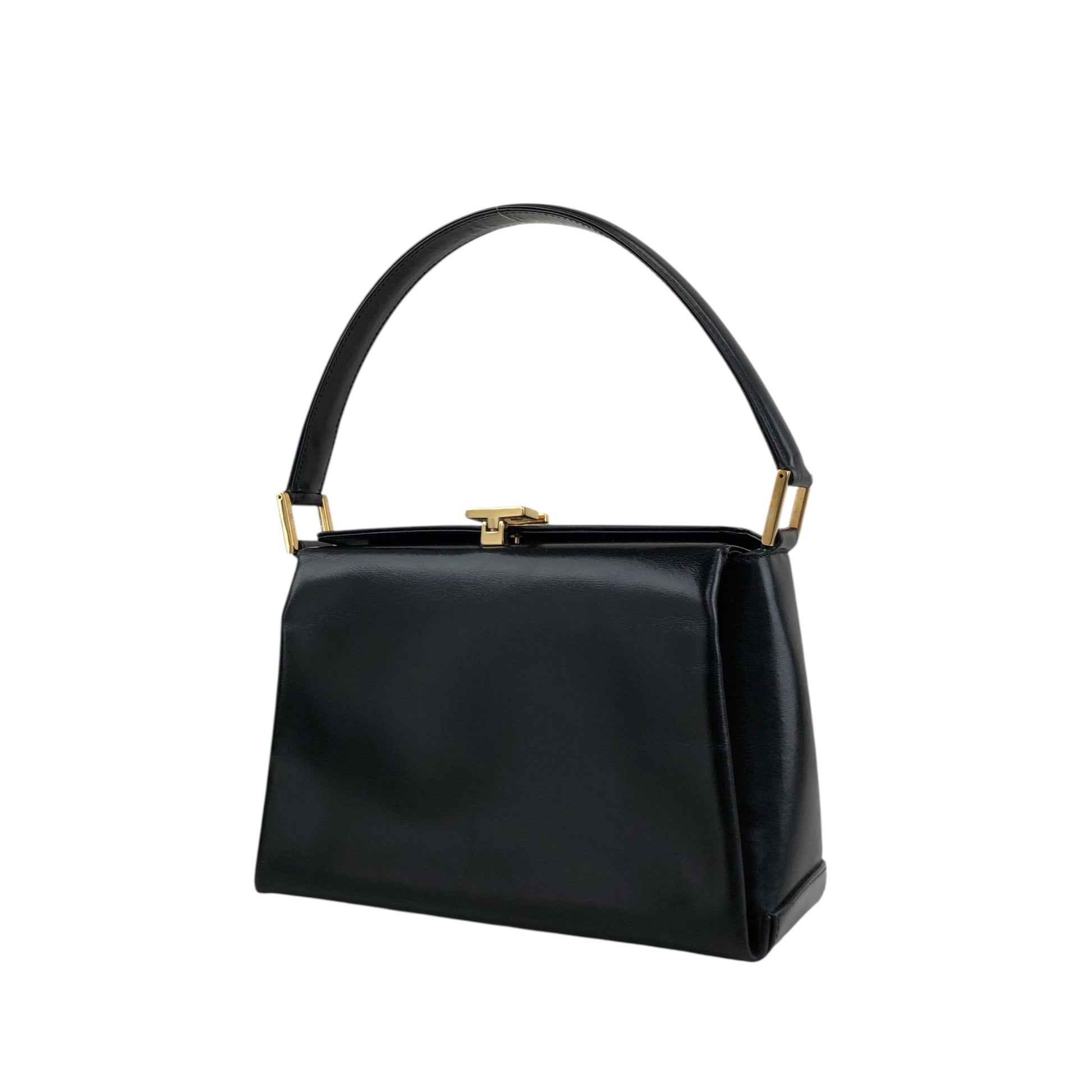 GUCCI Logo Handbag Vanity bag Black Vintage aitdmr