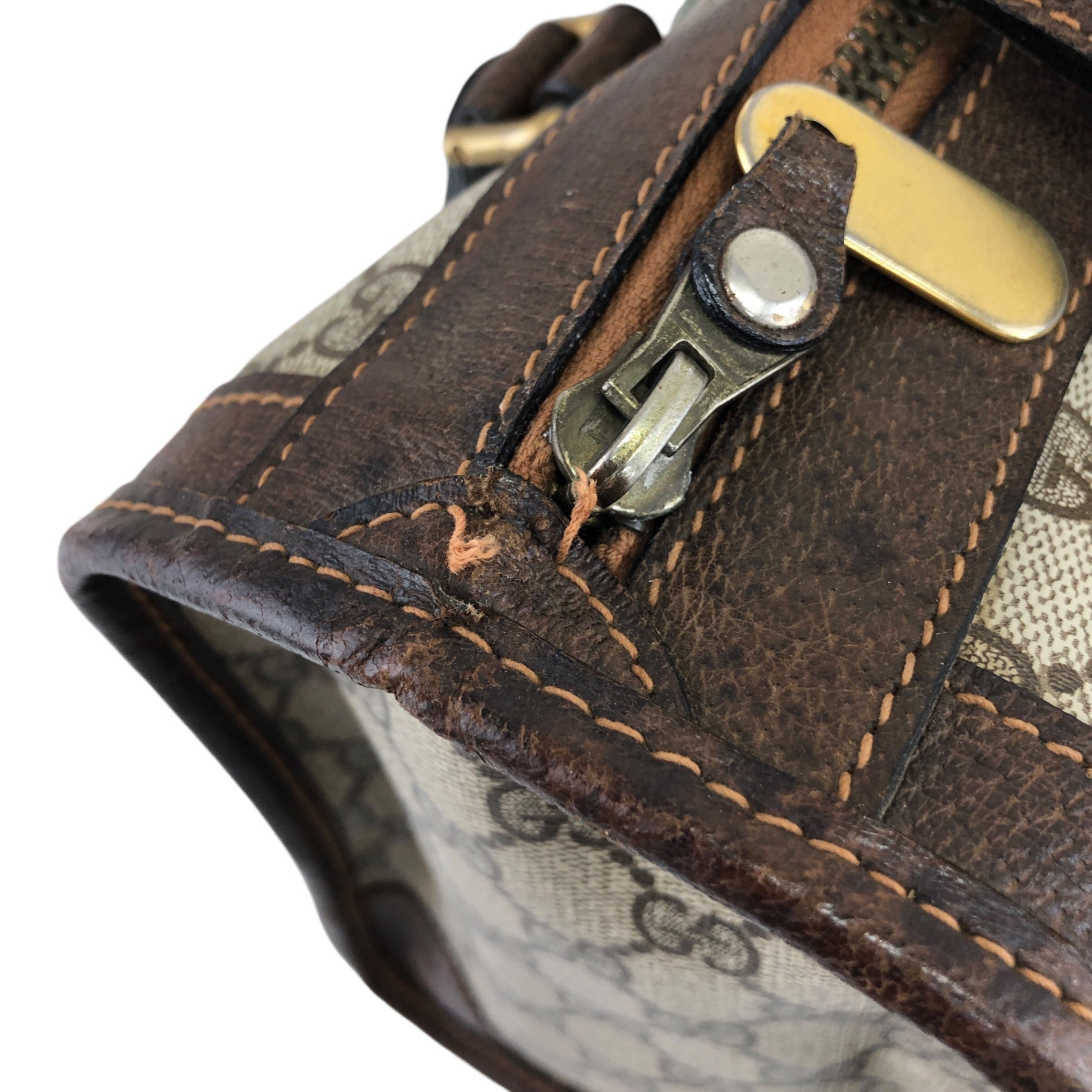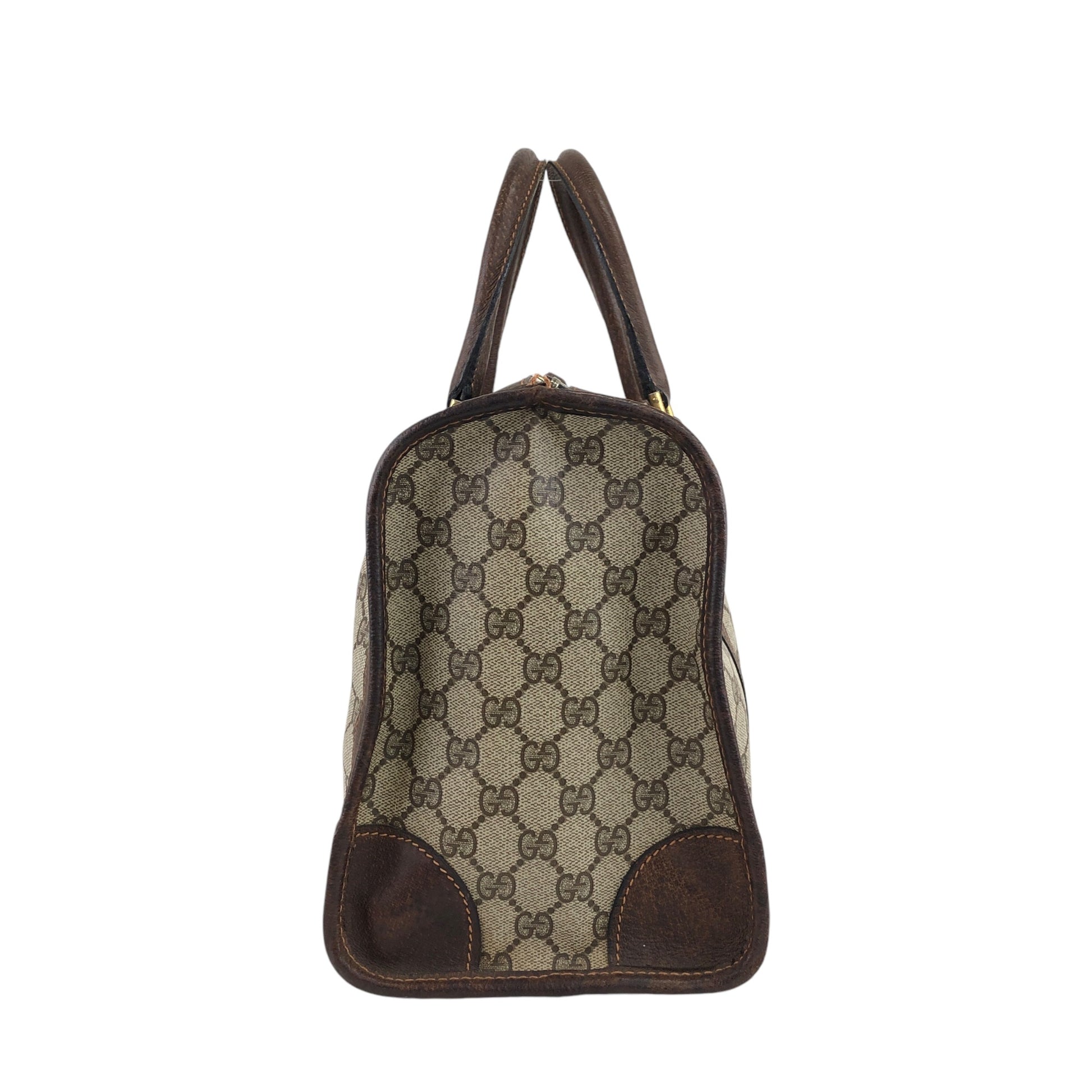 GUCCI Sherry Line GG Canvas Handbag Boston bag Brown Vintage pcefbw