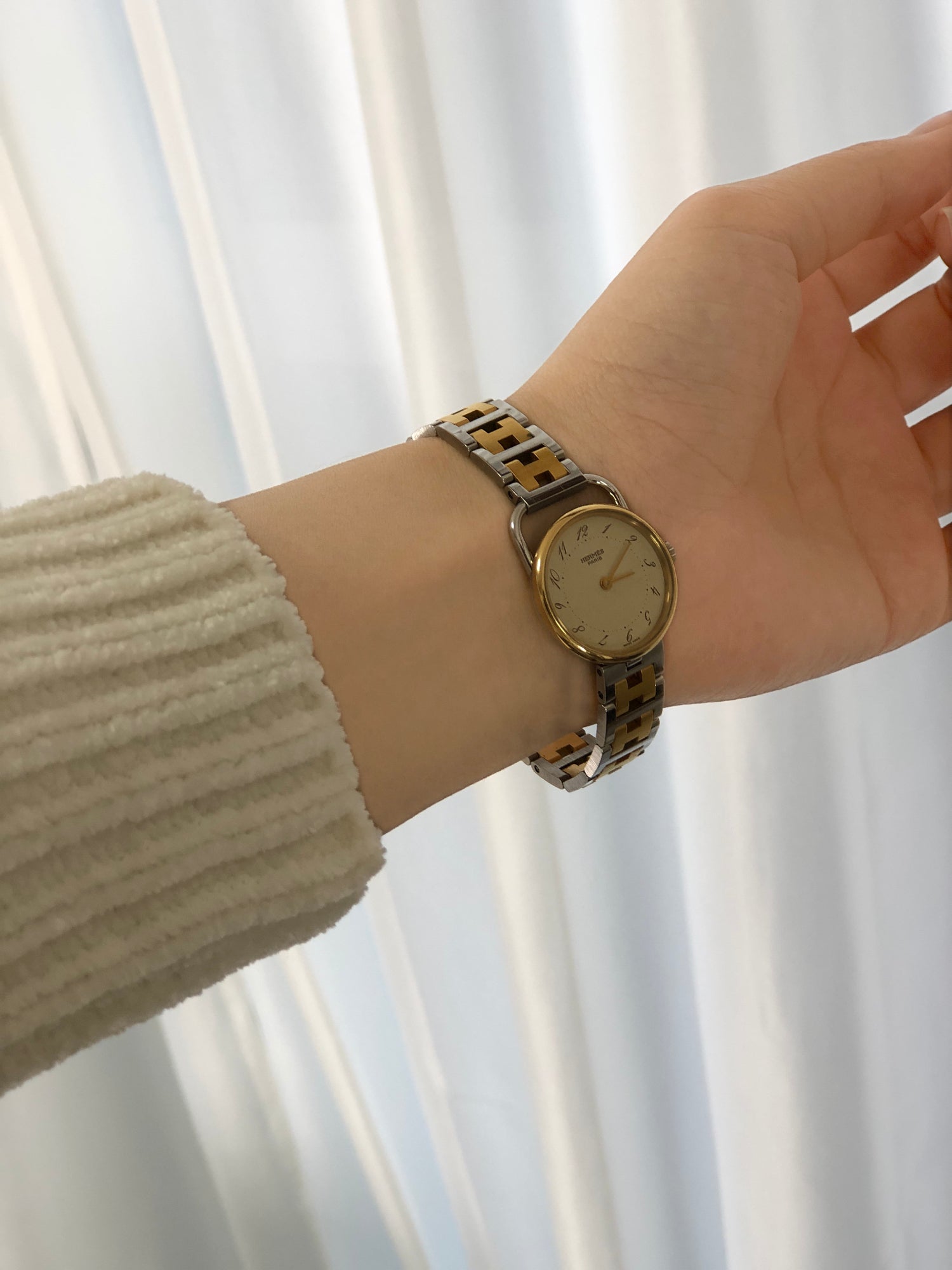 HERMES Quartz Watch Gold Silver Vintage pssjyc