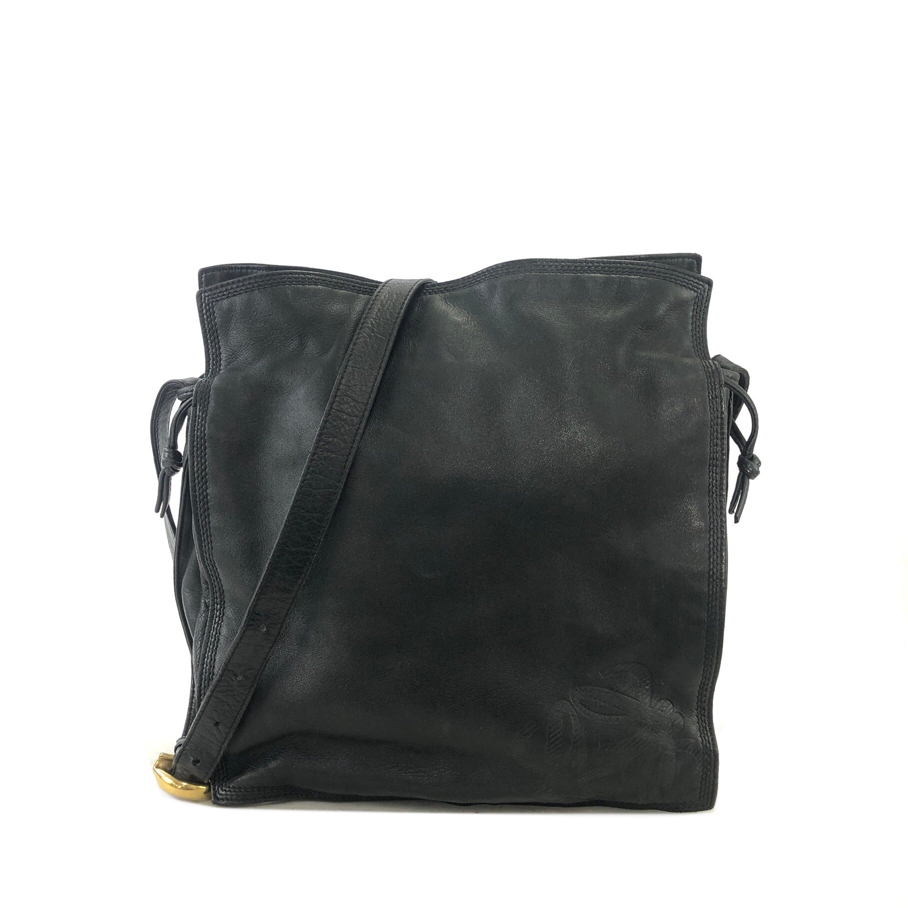 LOEWE Anagram Leather Drawstring Shoulder bag Black Vintage hzn8br
