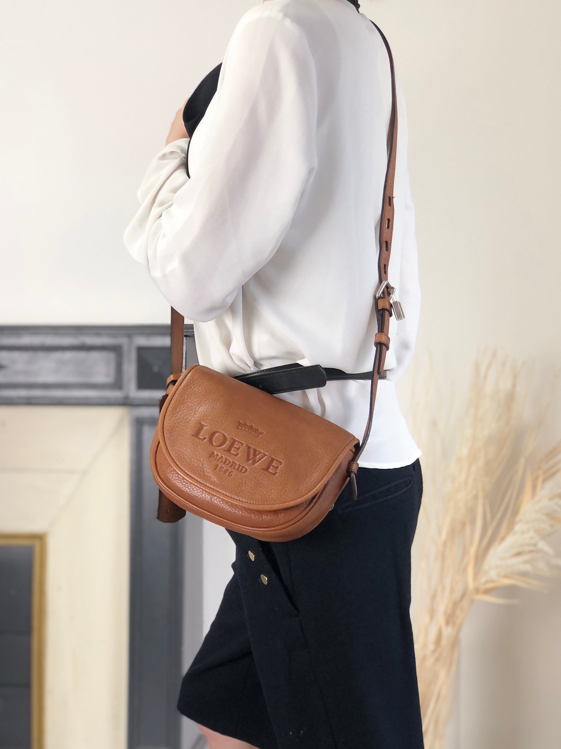 LOEWE Logo Embossed Crossbody Shoulder bag Brown Vintage w2swk6