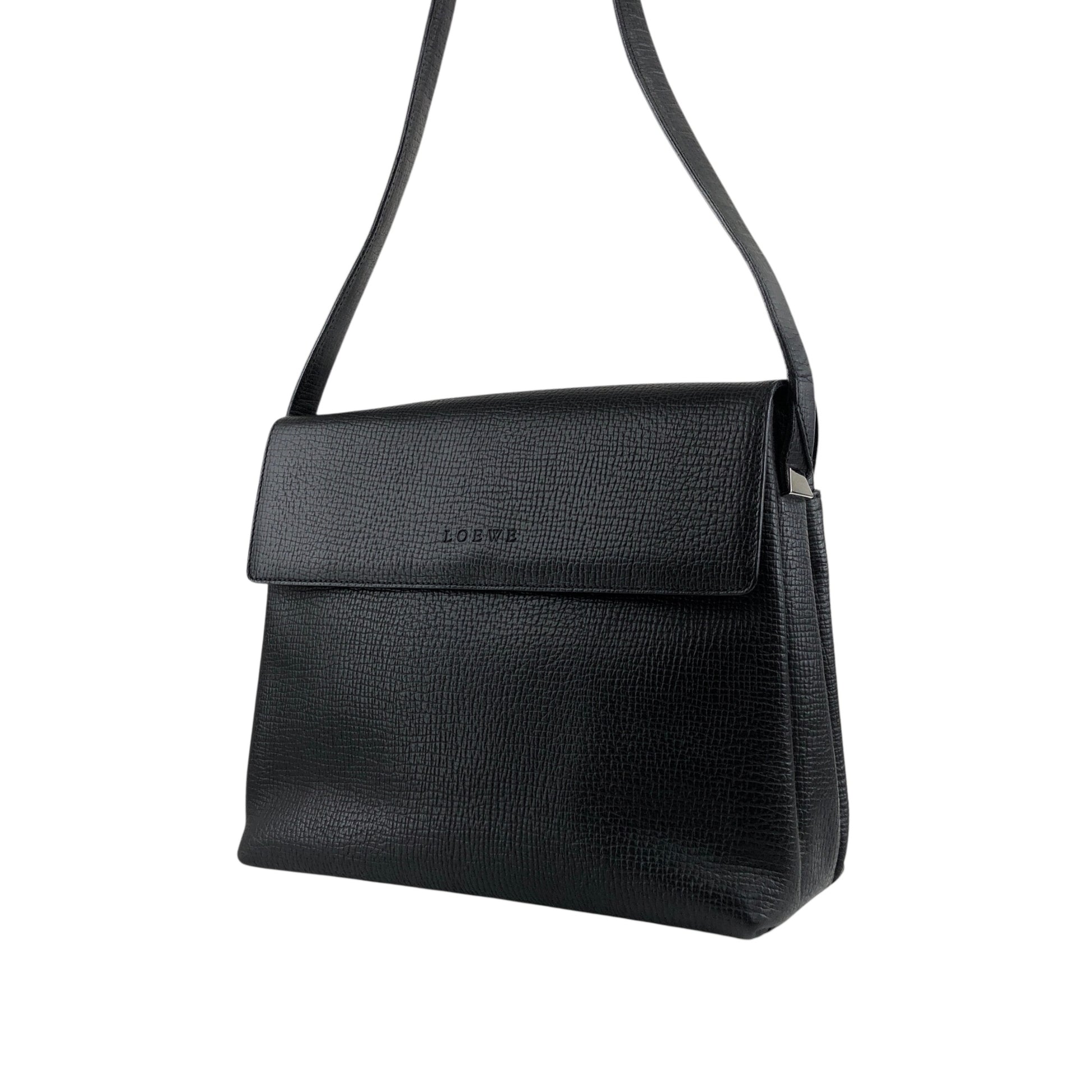 LOEWE Logo Embossed Shoulder bag Black Vintage htcz22