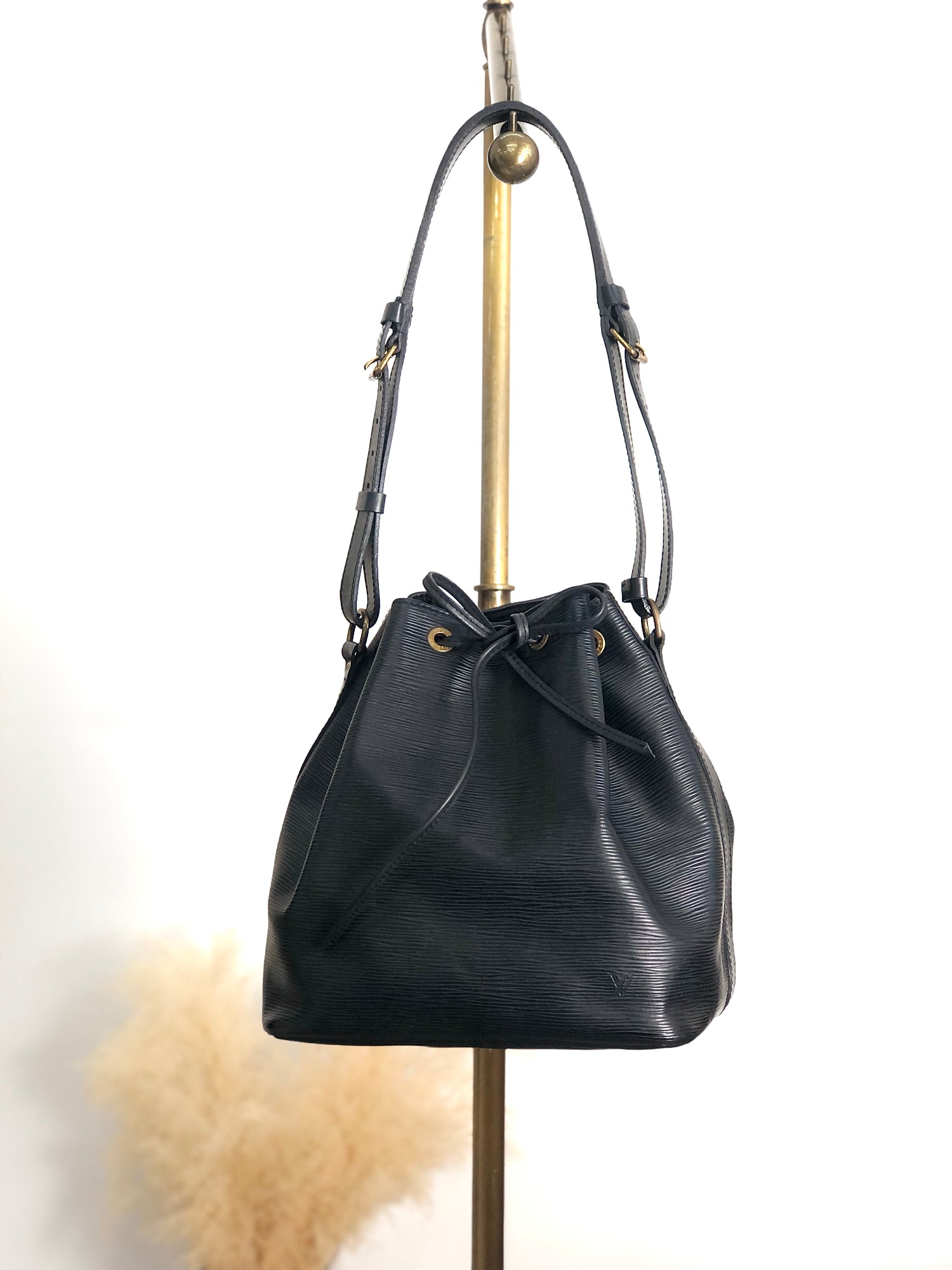LOUIS VUITTON Epi Drawstring Shoulder bag Black Vintage d2i73r