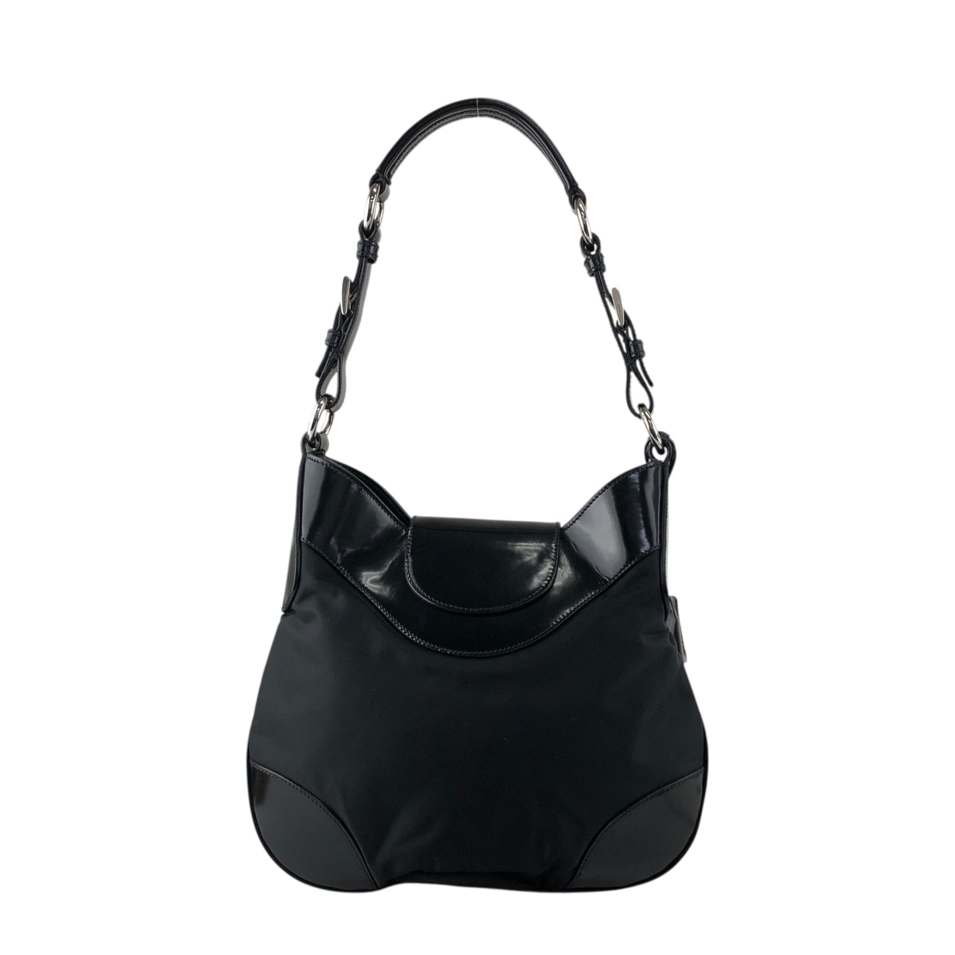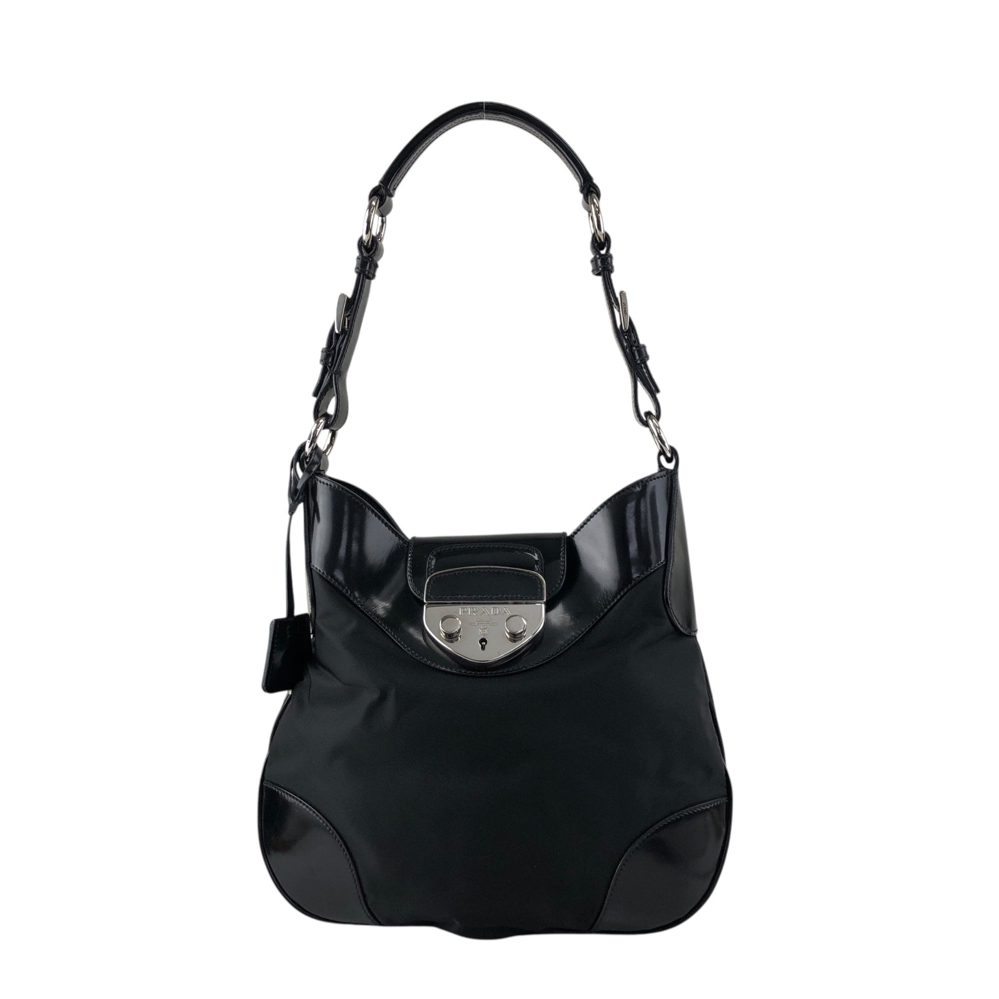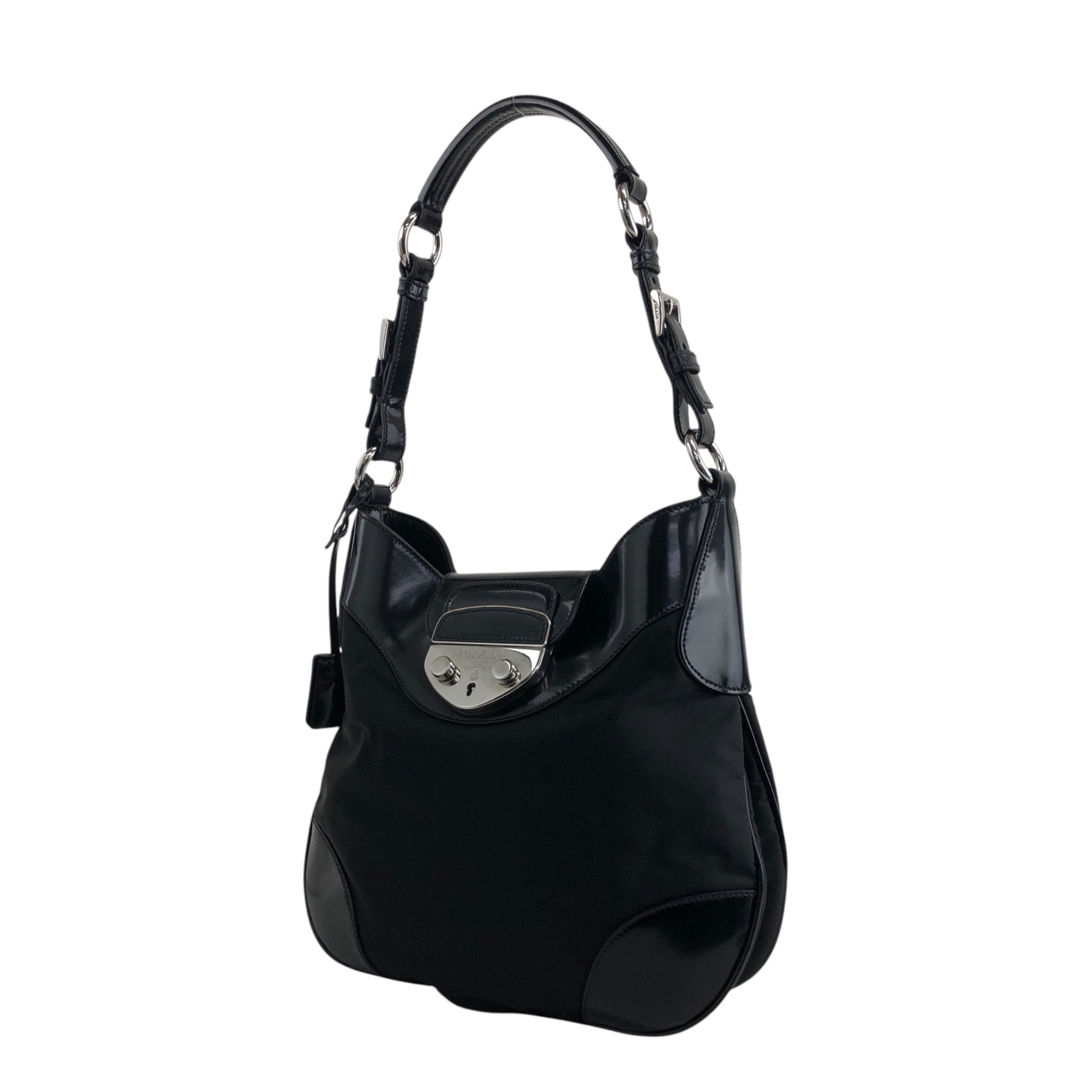 PRADA Logo Front Lock Shoulder bag Black Vintage jh2gpw