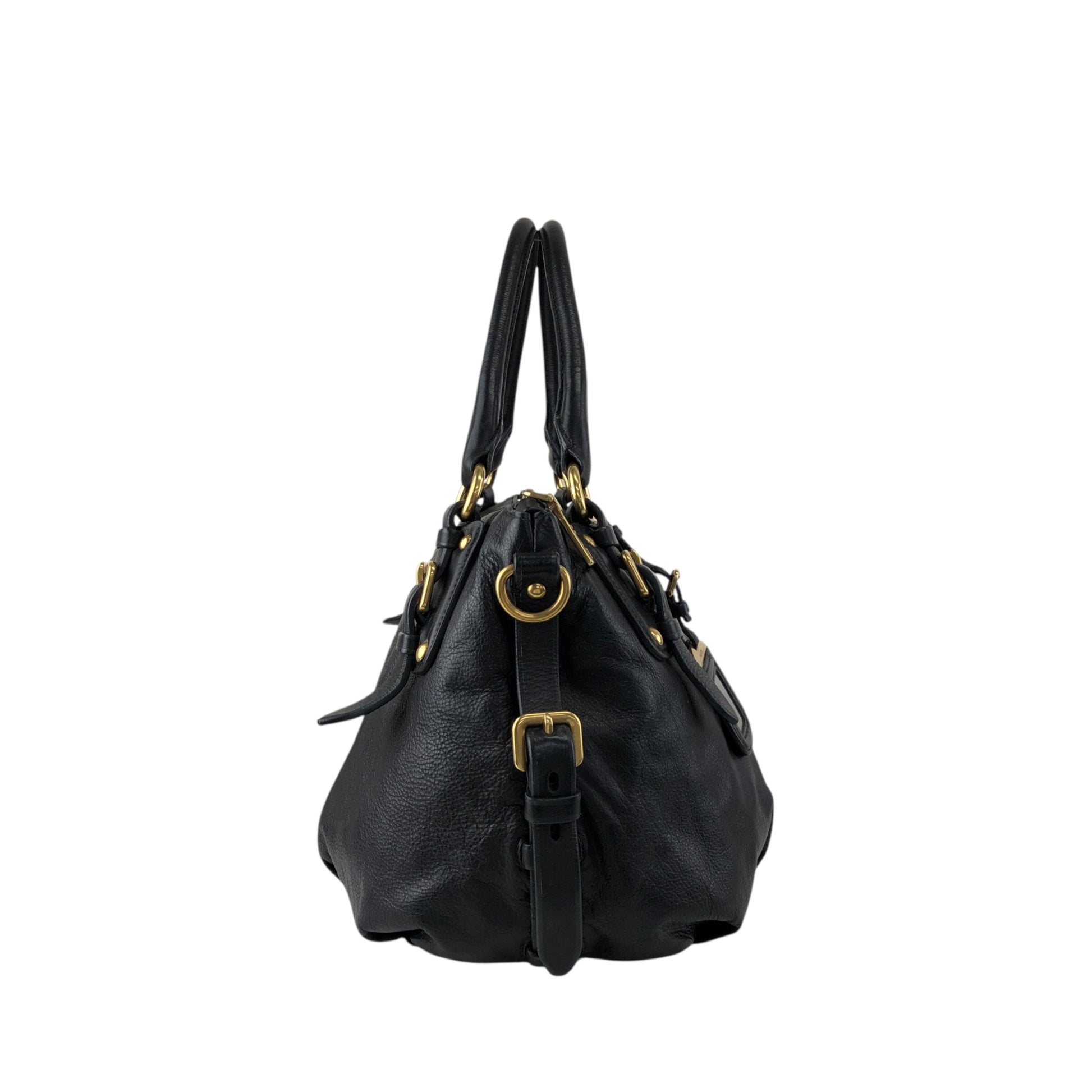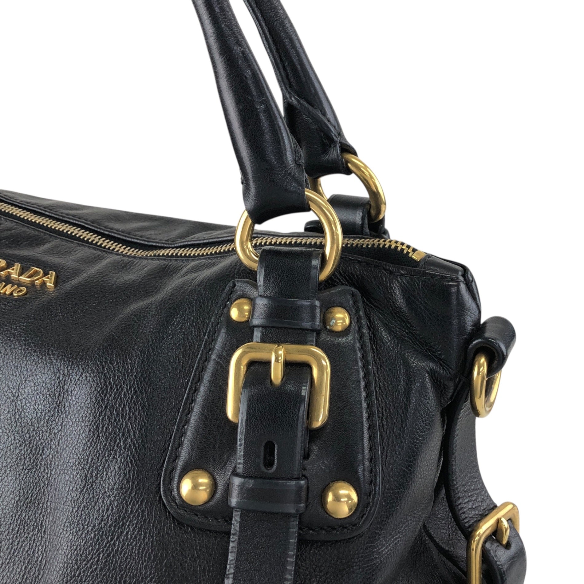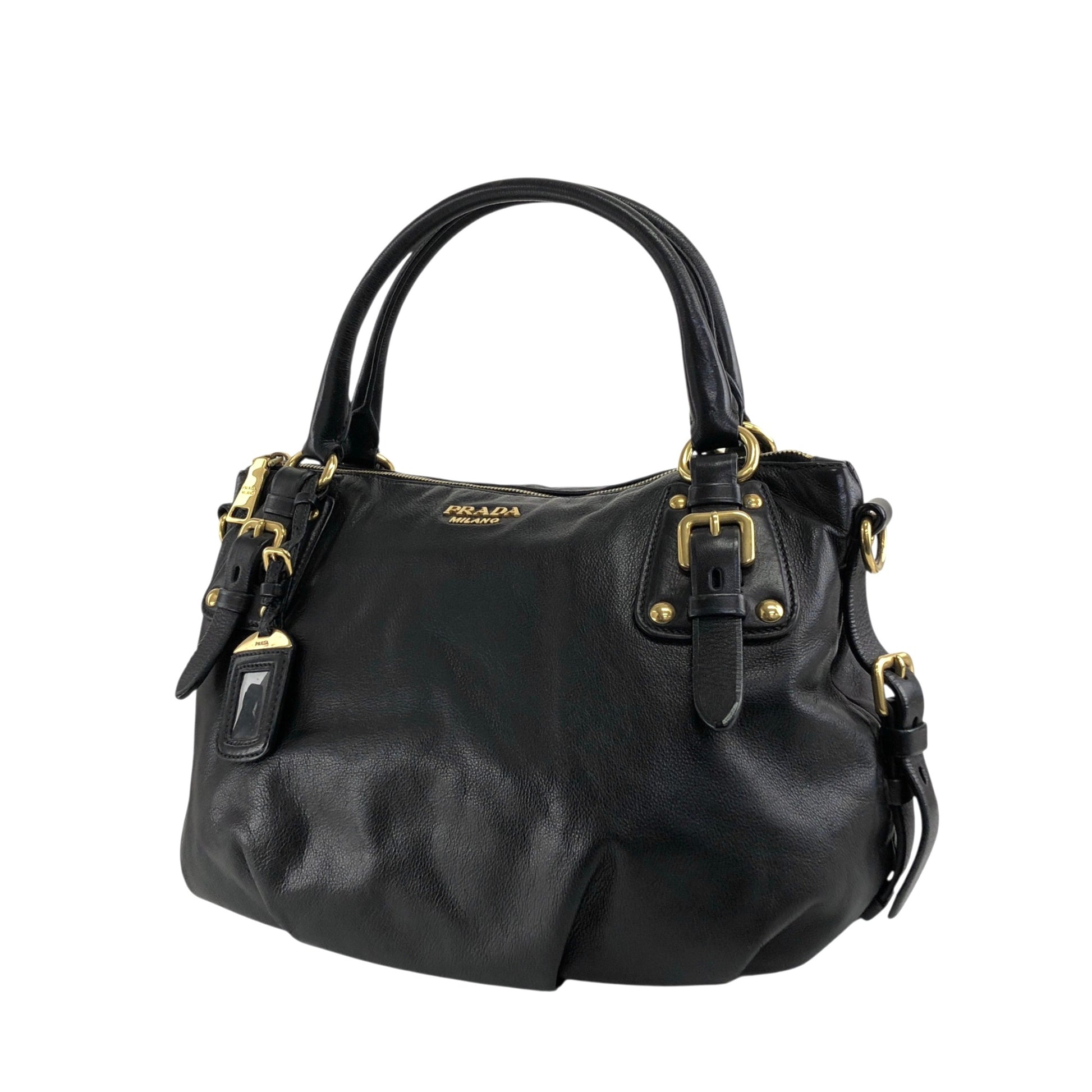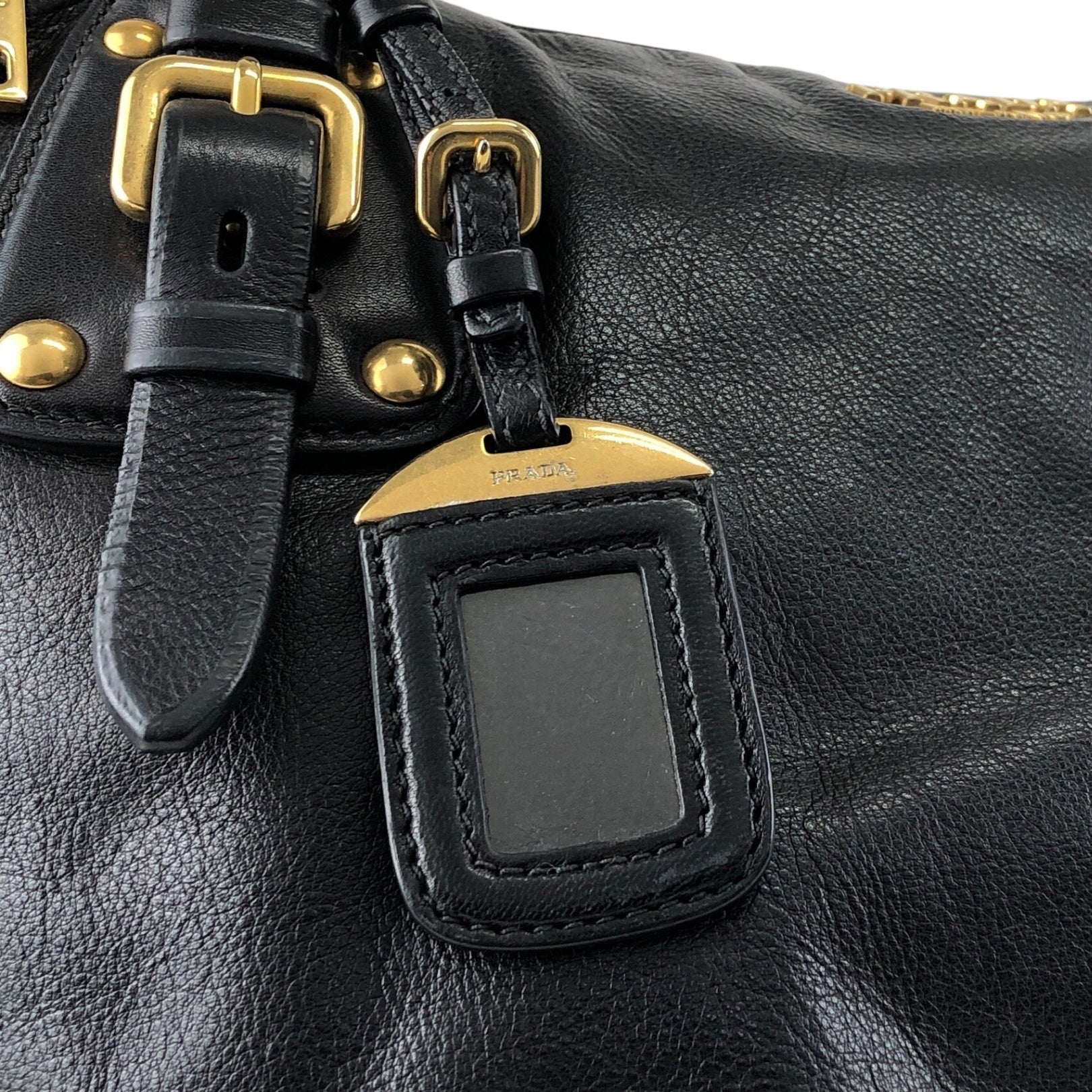 PRADA Logo Handbag Black Vintage jkn44z