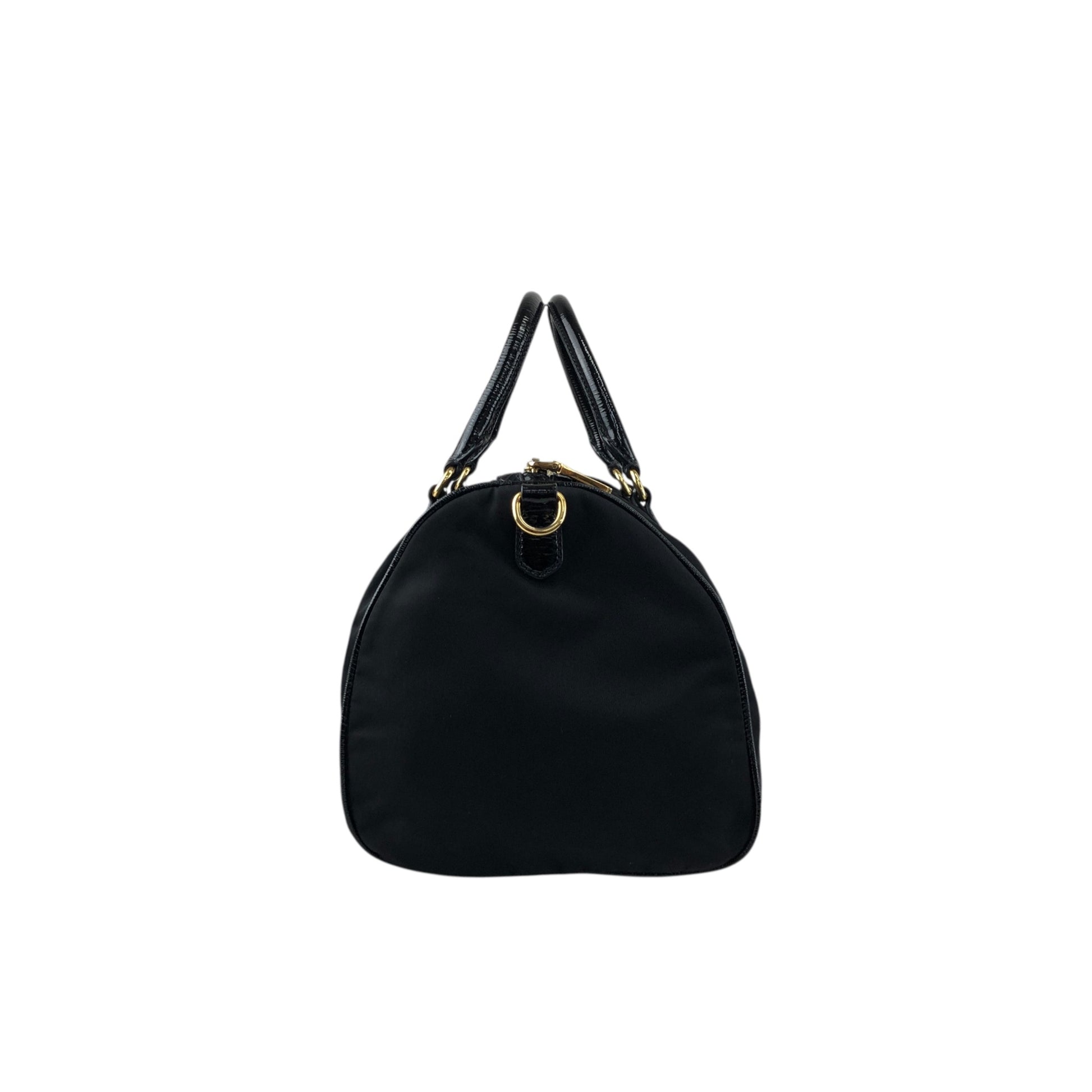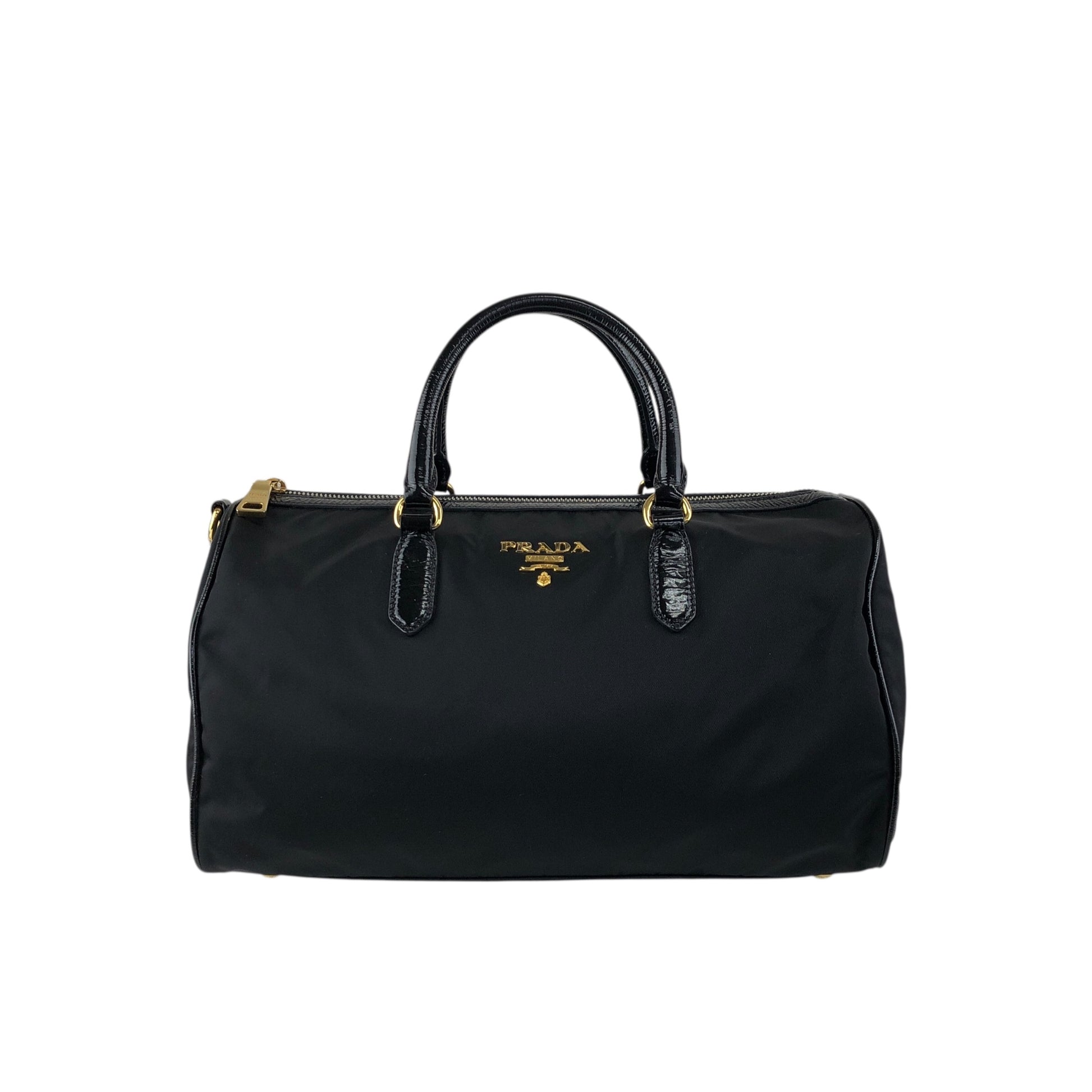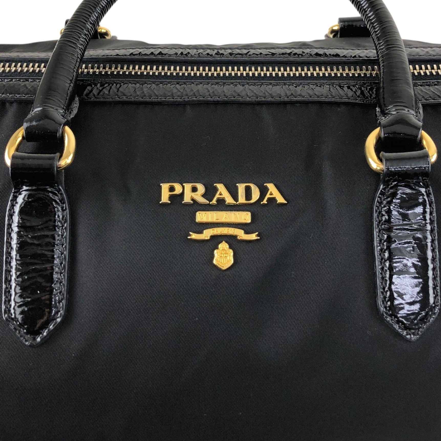 PRADA Logo Handbag Boston bag Black Vintage czrvv6