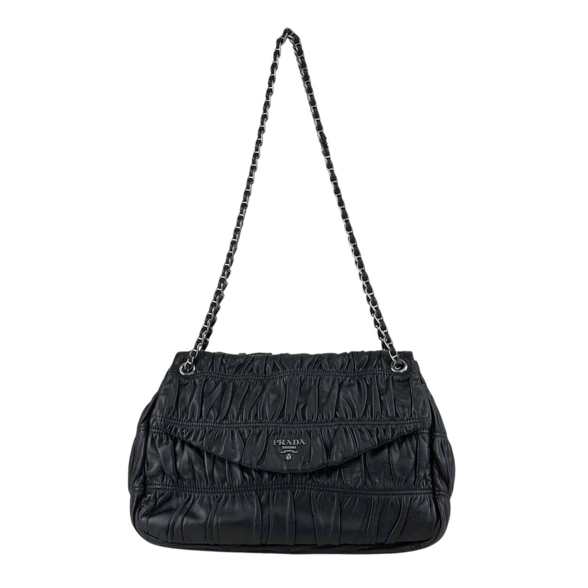 PRADA Logo Lock Chain Shoulder bag Black Vintage v87v8v