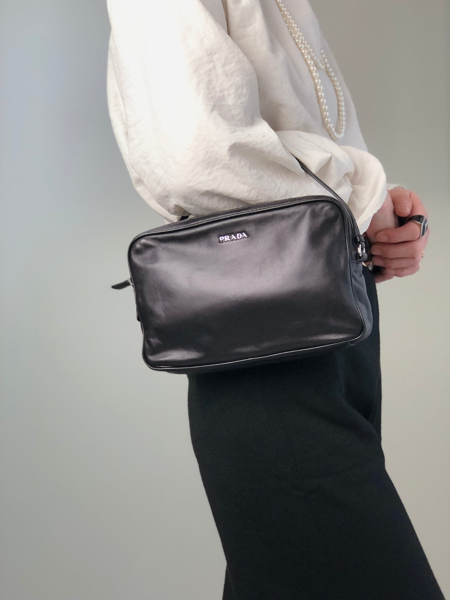 PRADA Logo Pouch Black Vintage e5kf4y