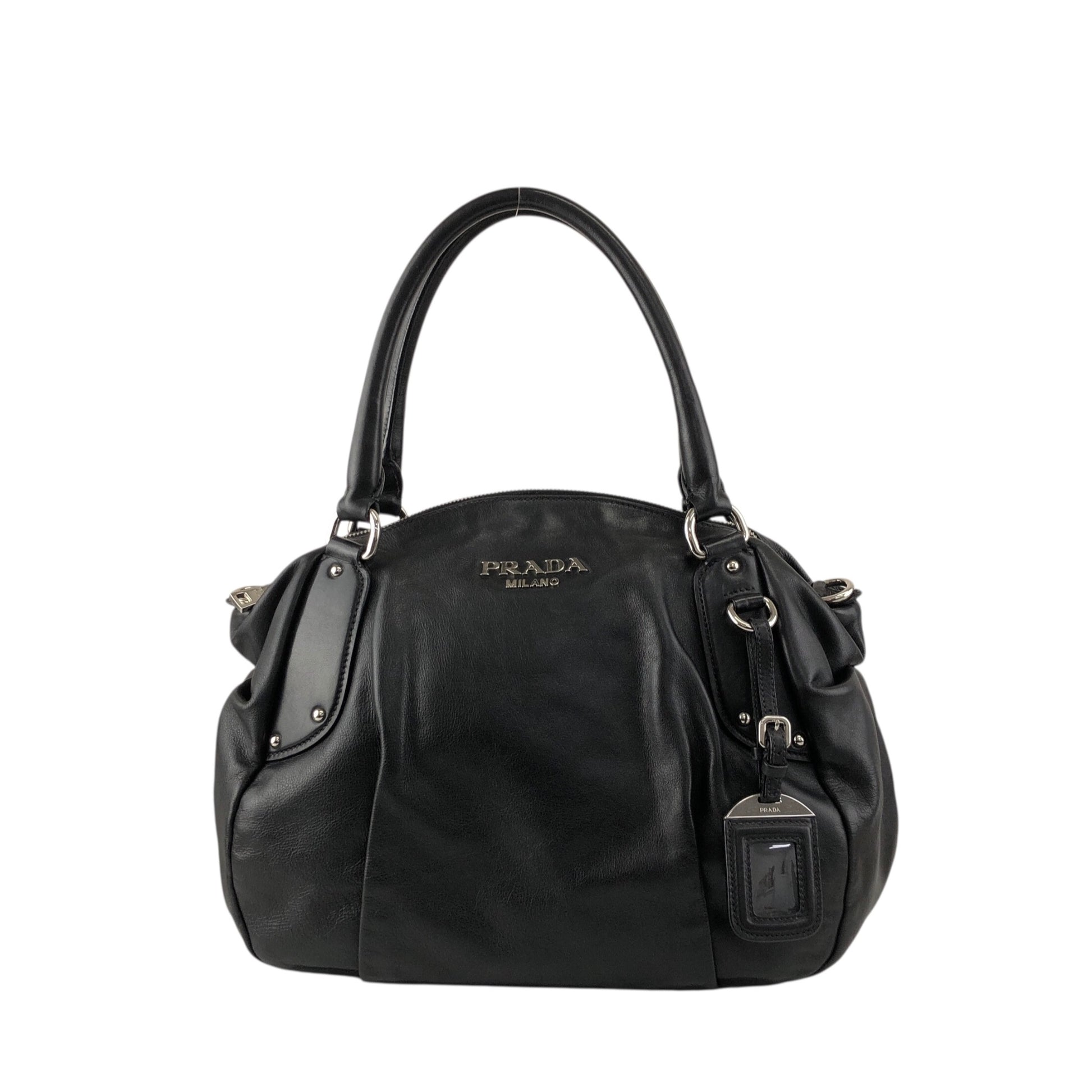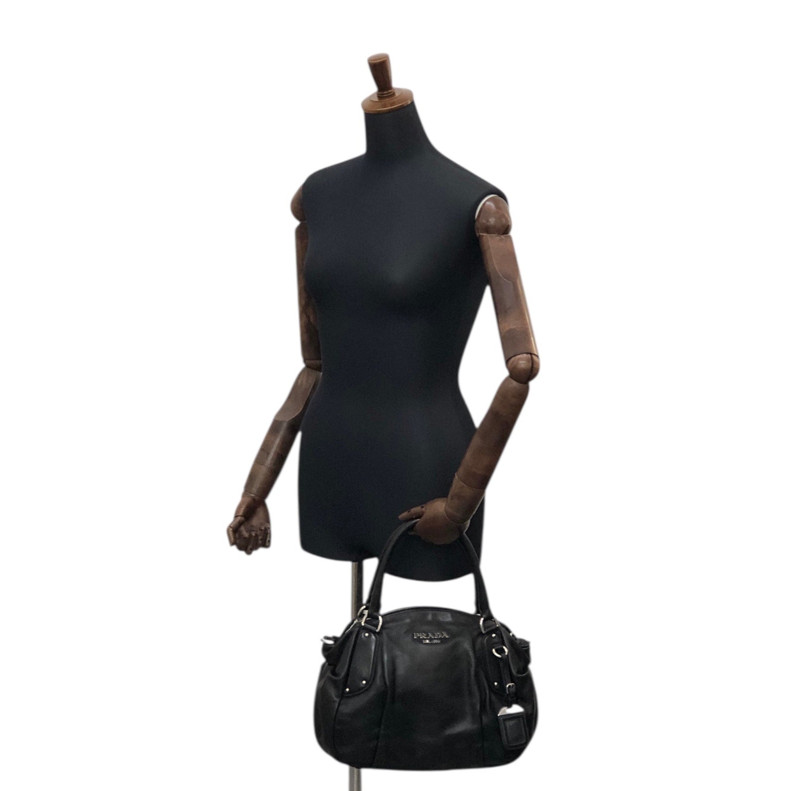 PRADA Logo Round Handbag Black Vintage 4frjvm