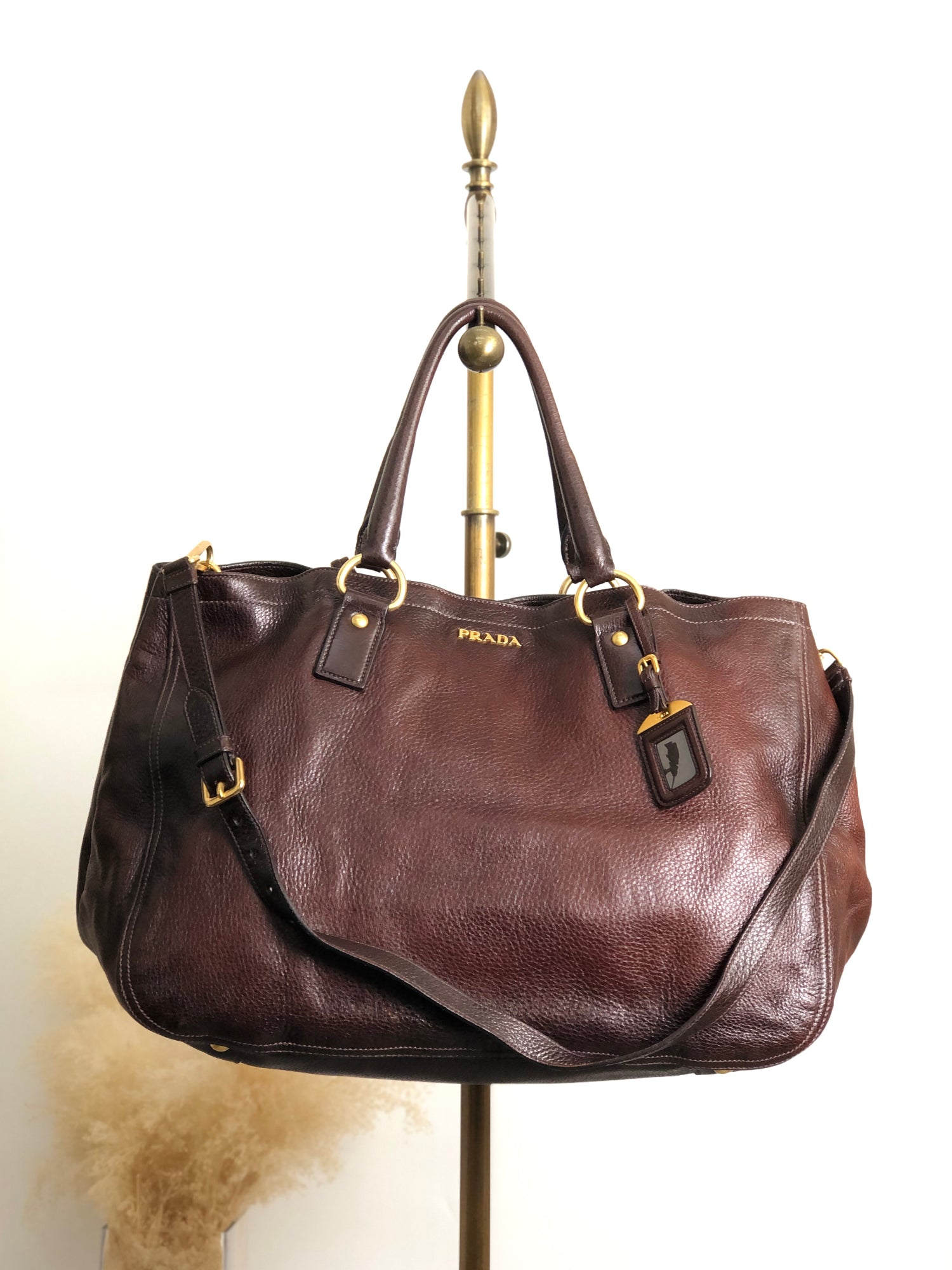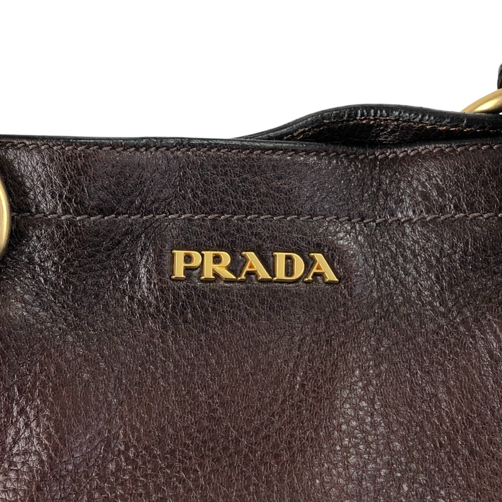 PRADA Logo Two-way Handbag Shoulder bag Brown Vintage ujn2cg