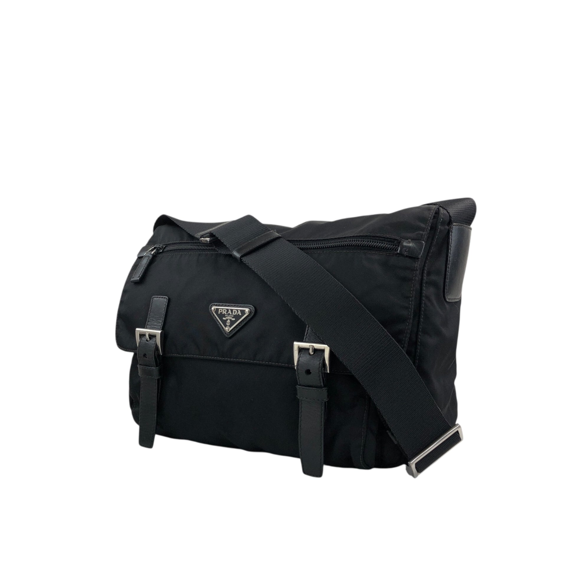 PRADA Tessueto Triangle Logo Shoulder bag Black Vintag vii5a2