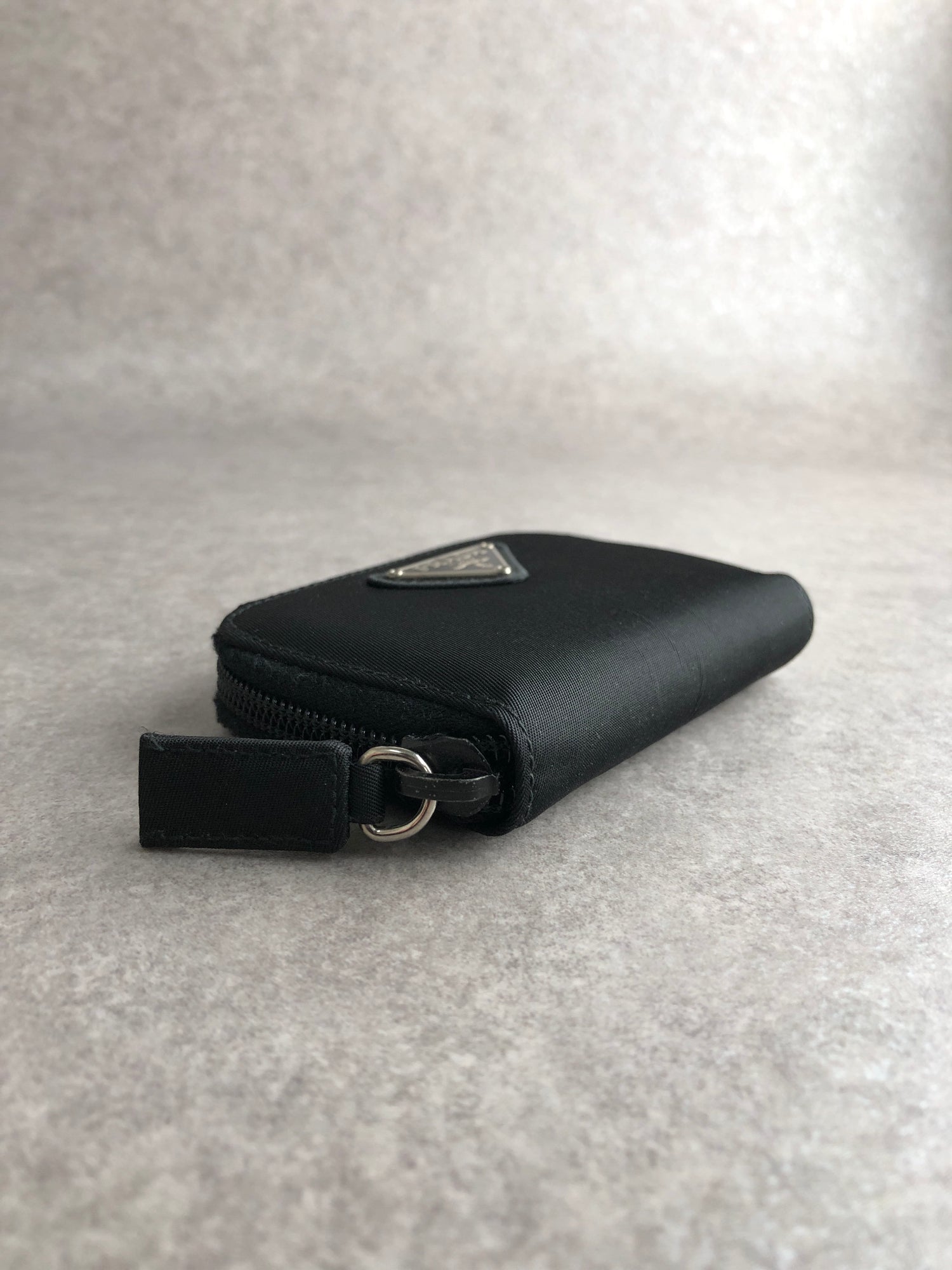 PRADA Tessuto Triangle Logo Coin Purse Black Vintage 4nbjju