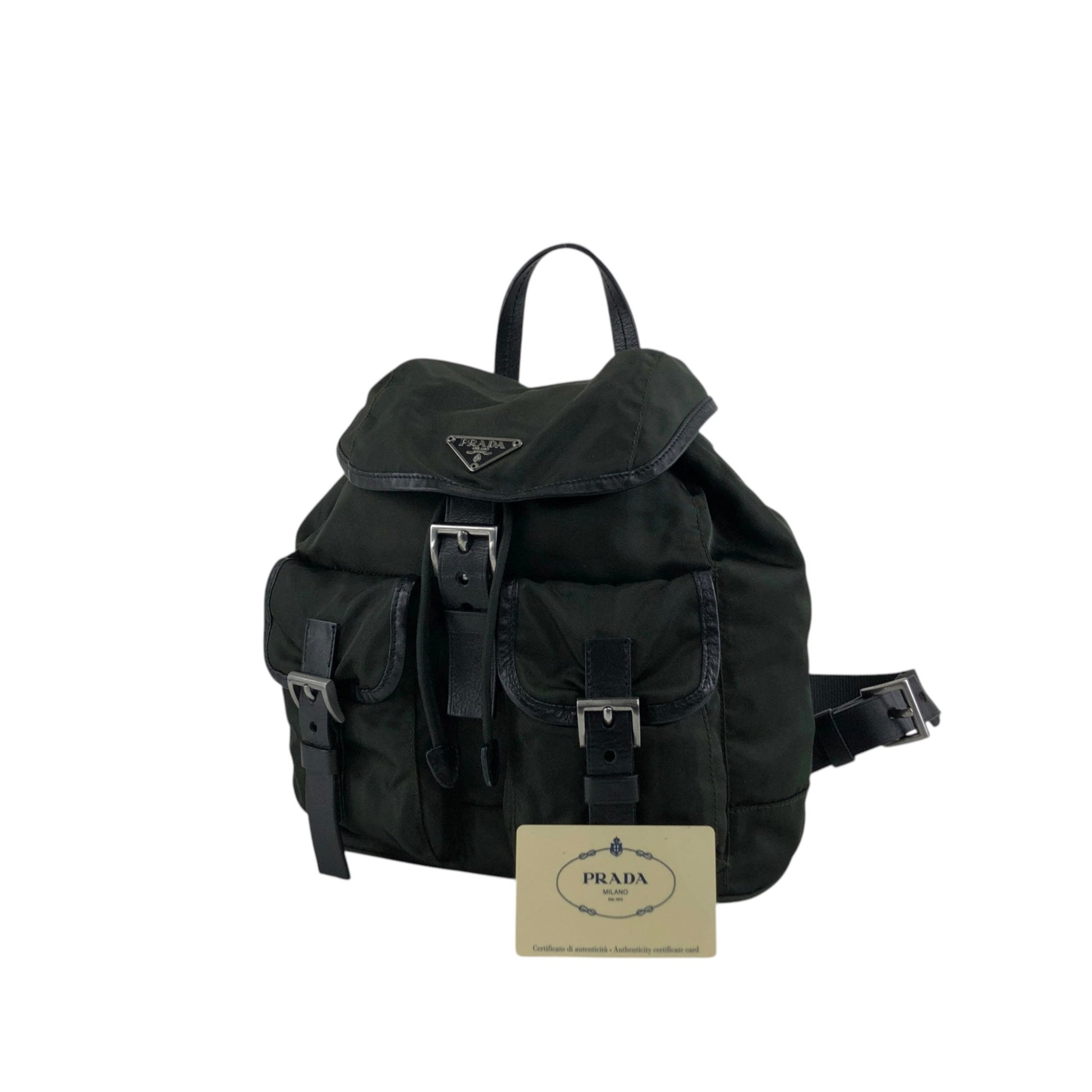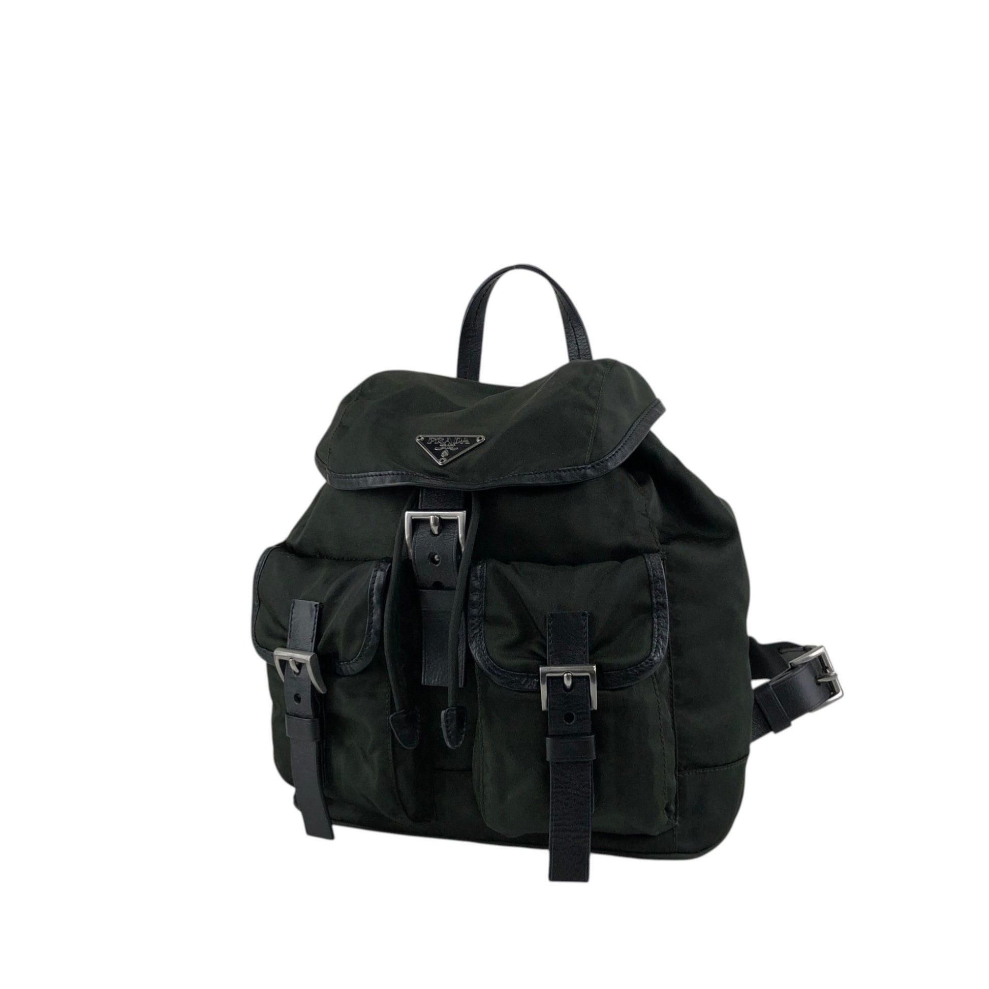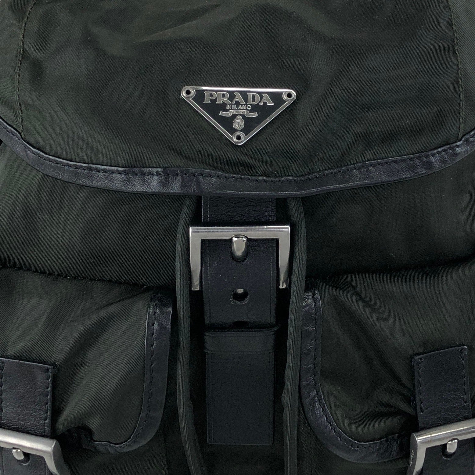 PRADA Tessuto Triangle Logo Double Pocket Backpack Black Vintage kuuttd