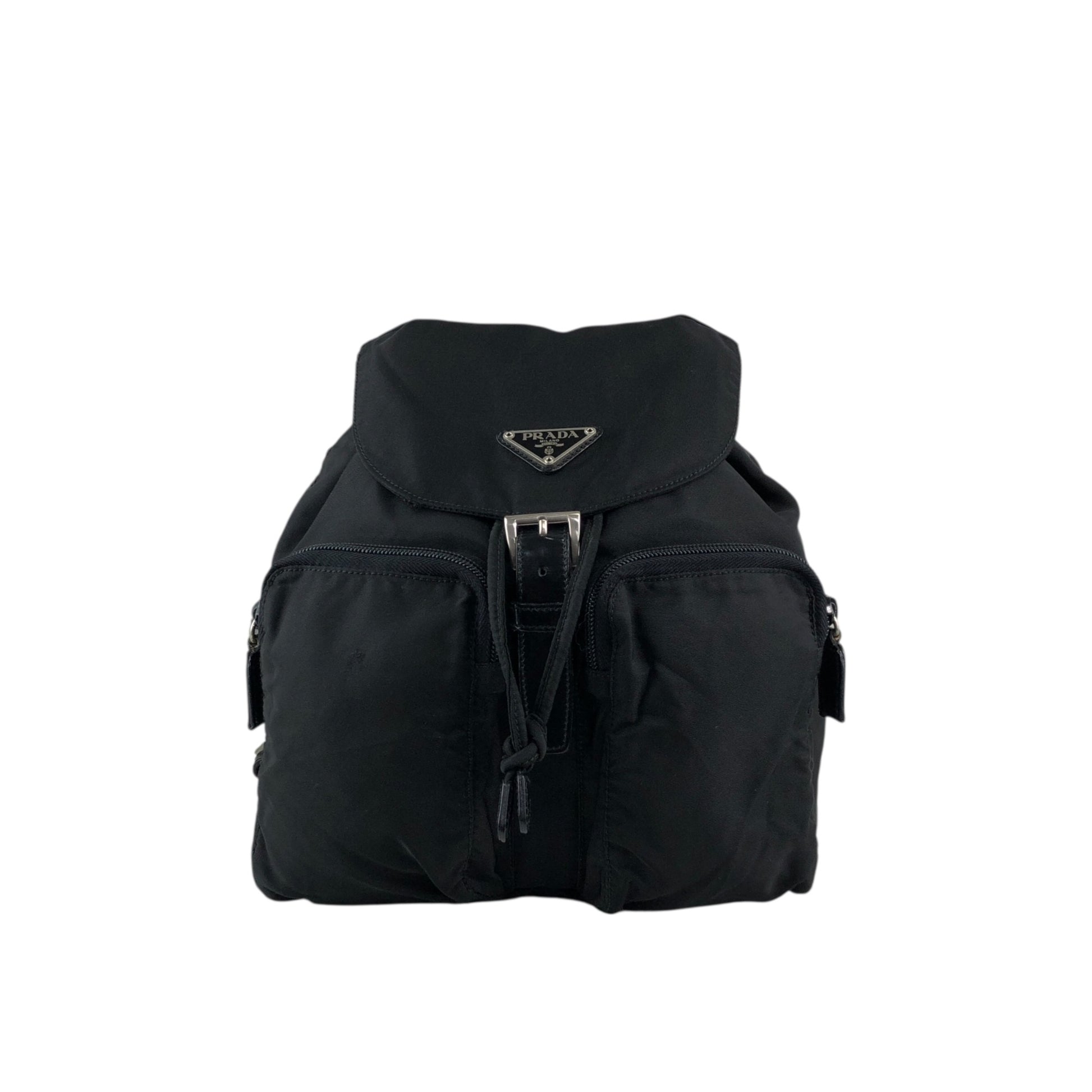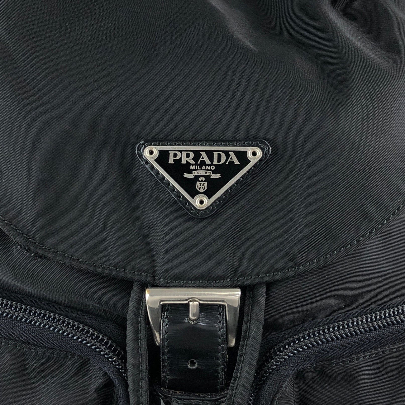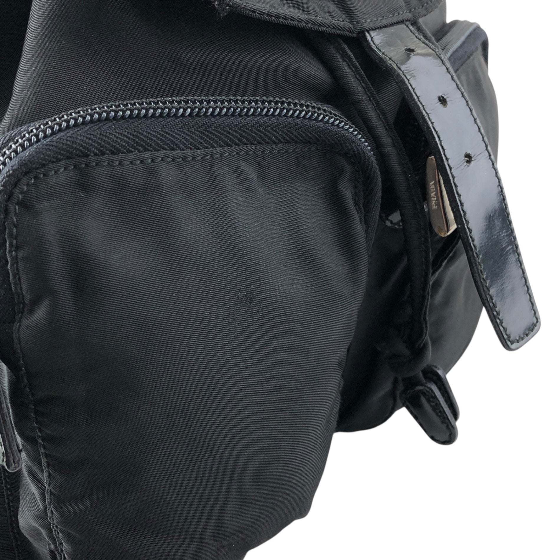 PRADA Tessuto Triangle Logo Double Pocket Backpack Black Vintage msvumv