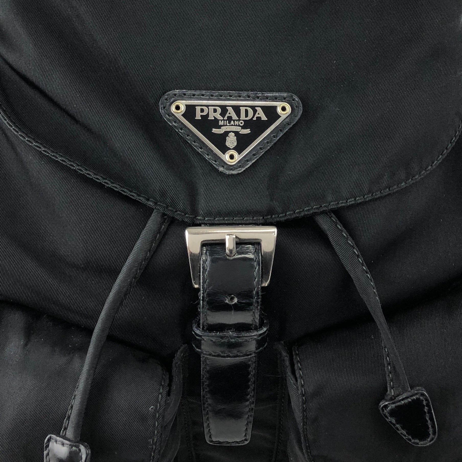 PRADA Tessuto Triangle Logo Double Pocket Backpack Black Vintage najw37