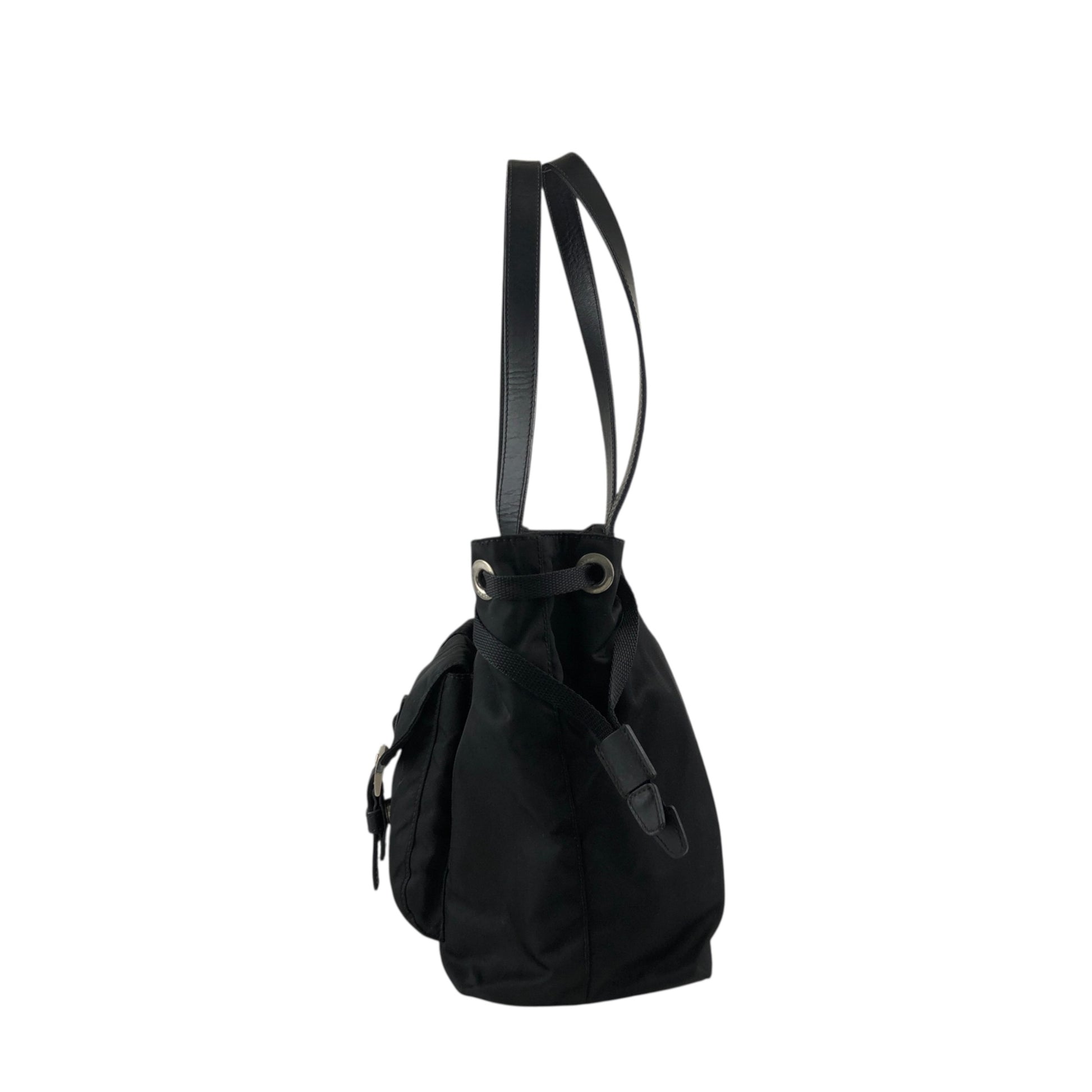 PRADA Tessuto Triangle Logo Double Pocket Totebag Black Vintage pbxxz8