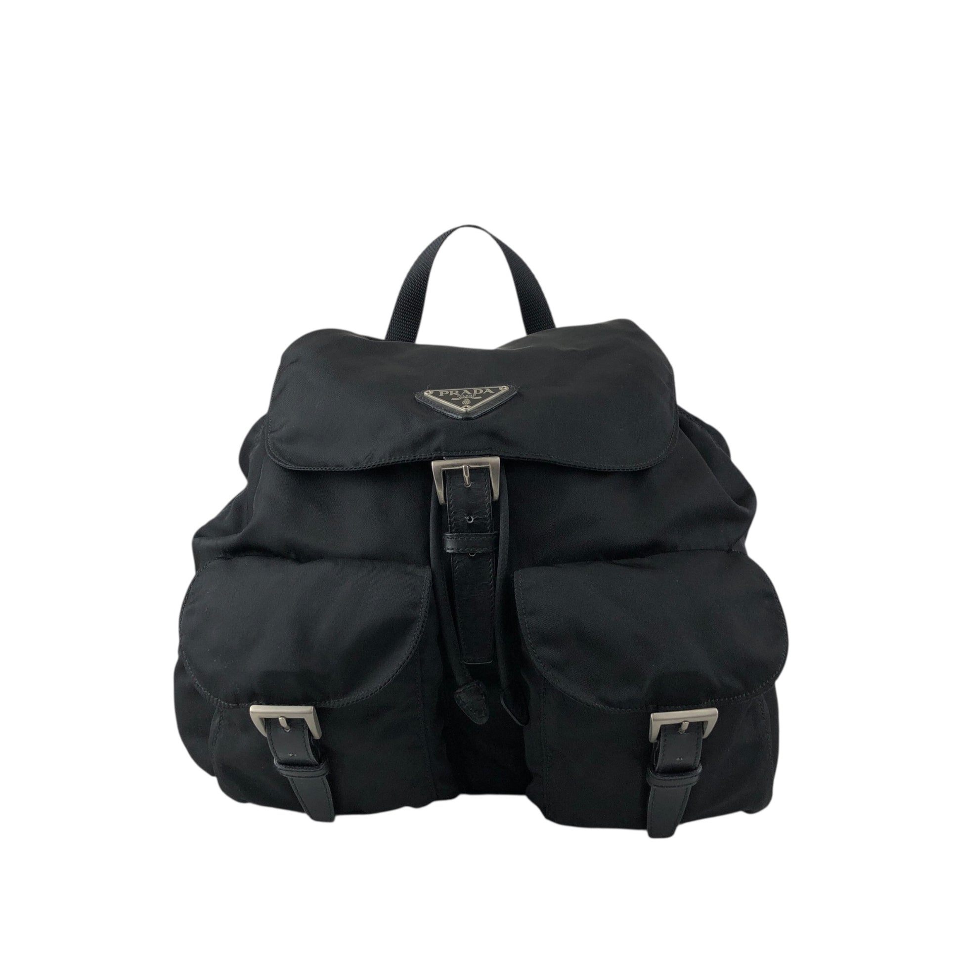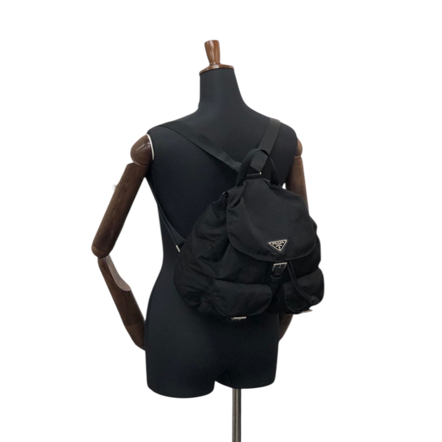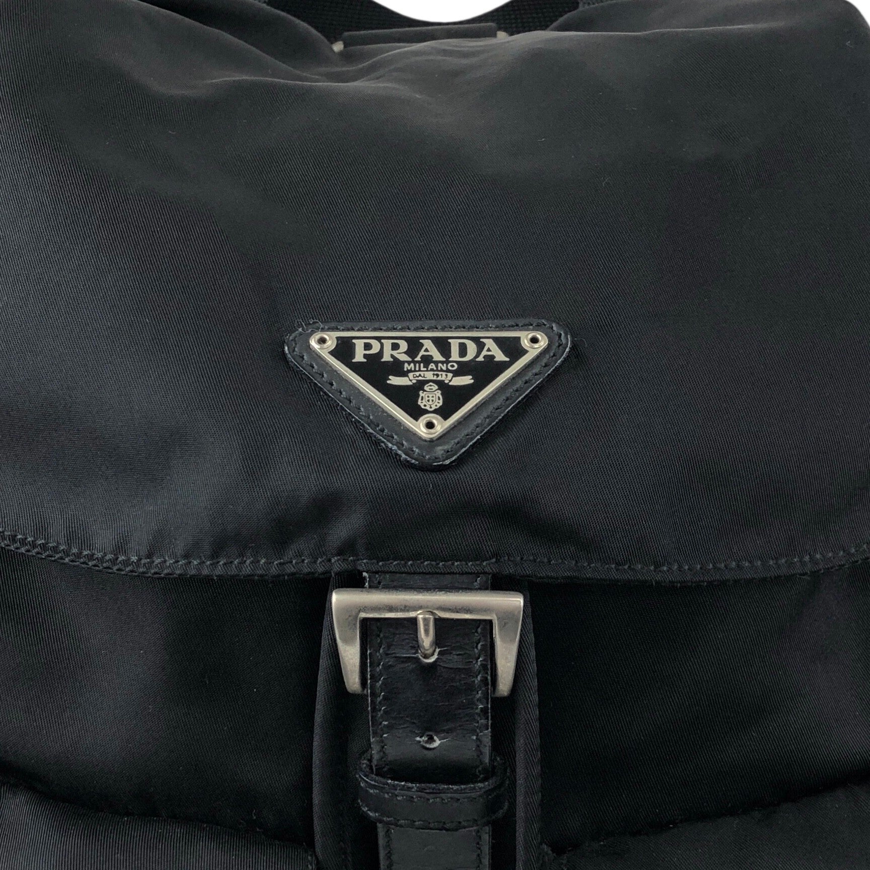 PRADA Tessuto Triangle Logo Front Buckle Backpack Black Vintage ku8tbi