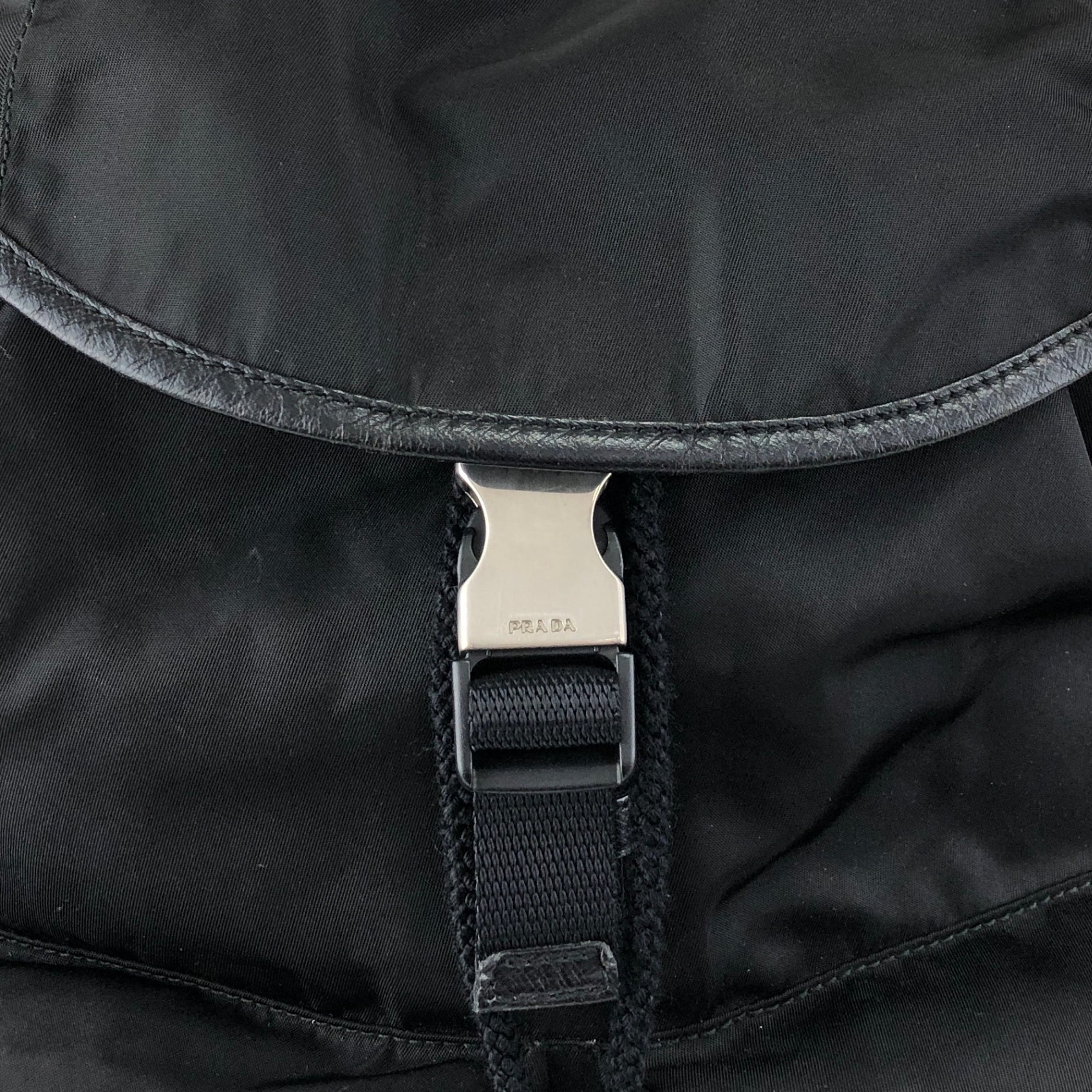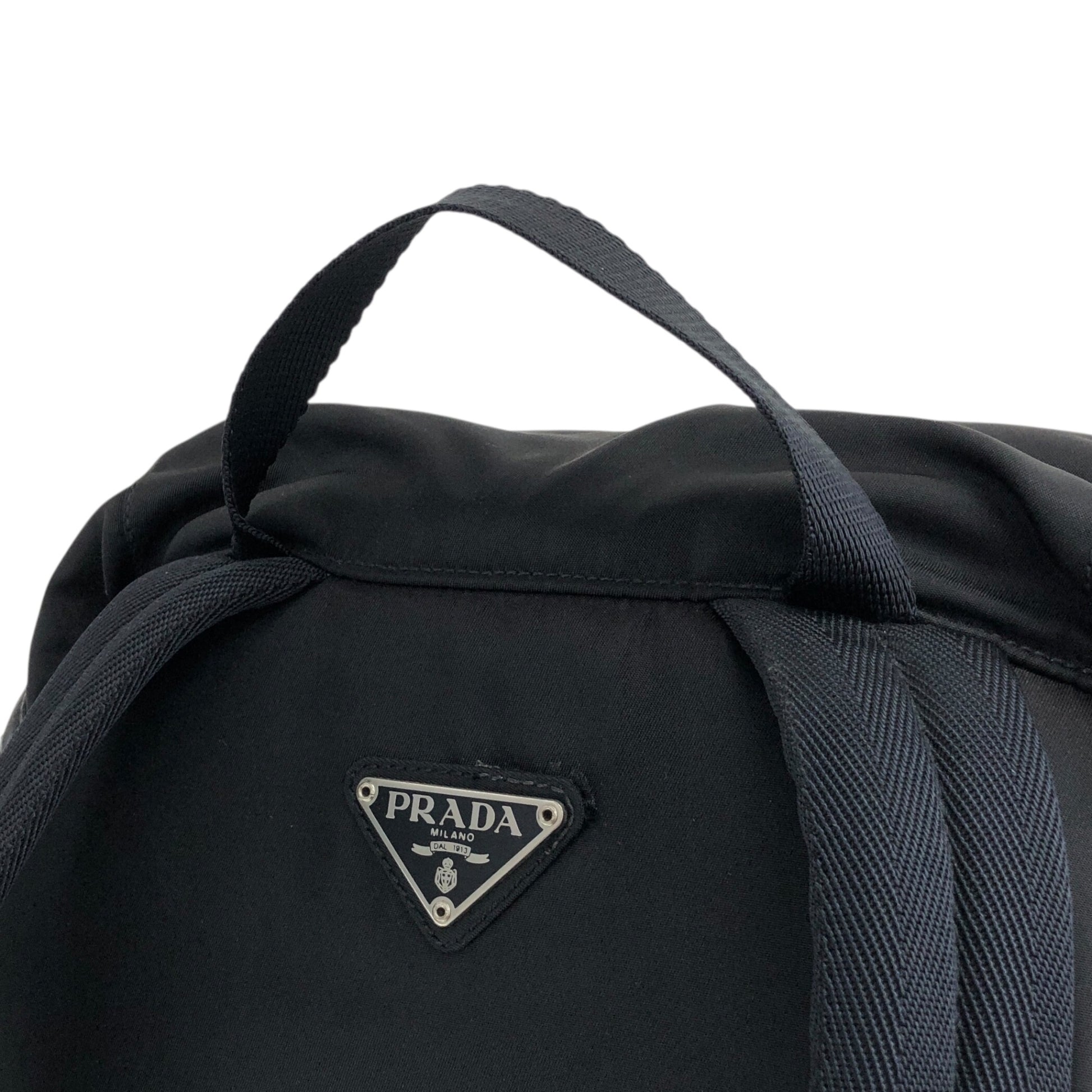 PRADA Tessuto Triangle Logo Front Buckle Backpack Black Vintage pyct8y